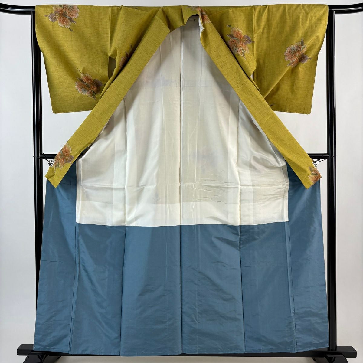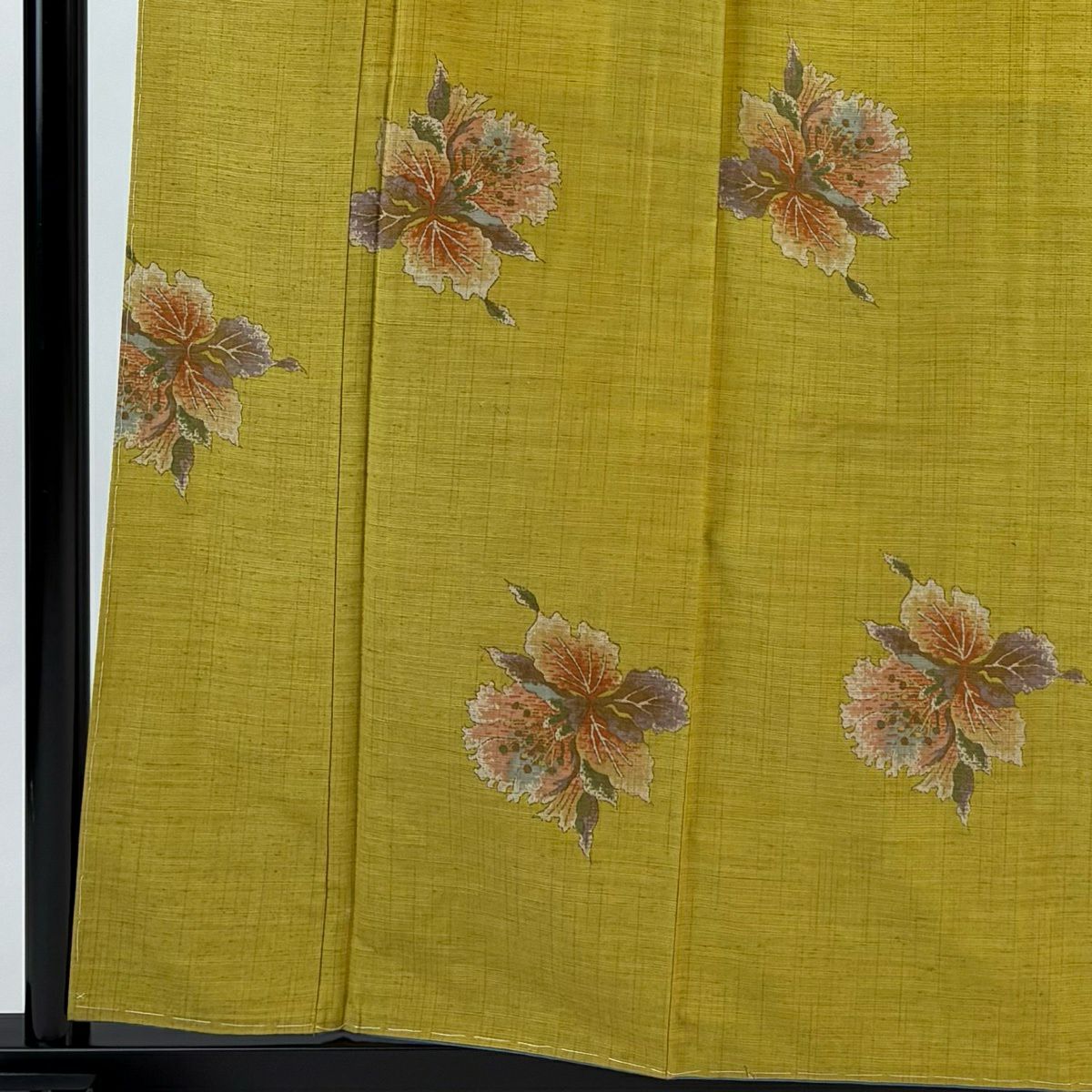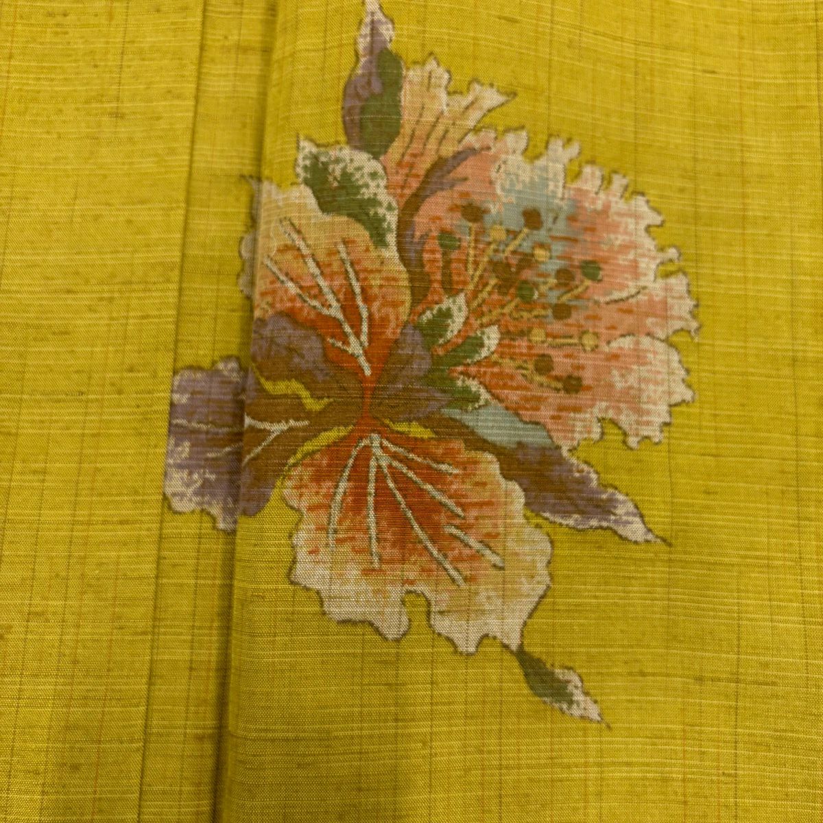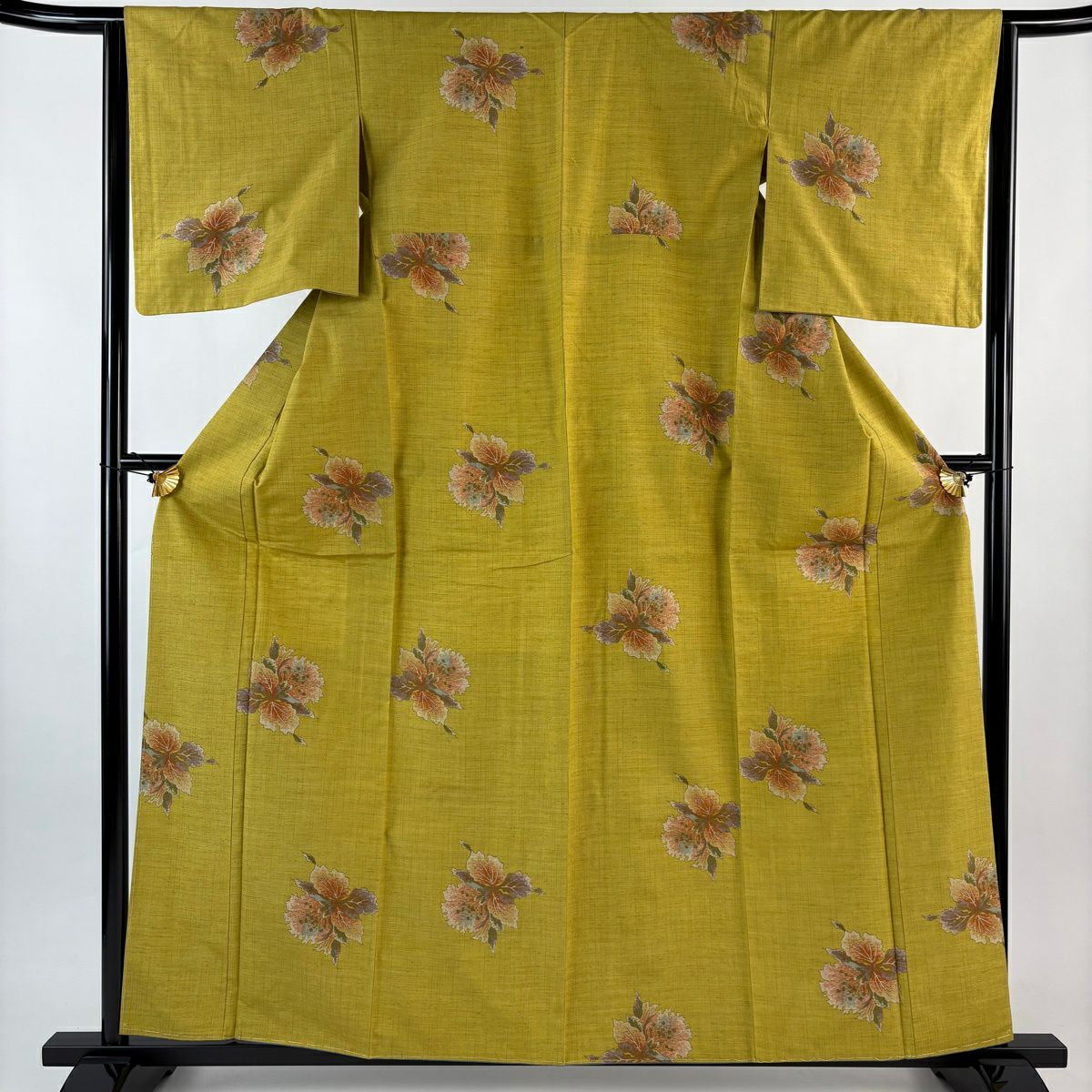 紬 身丈161cm 裄丈63.5cm S 袷 草花 からし色 正絹 秀品