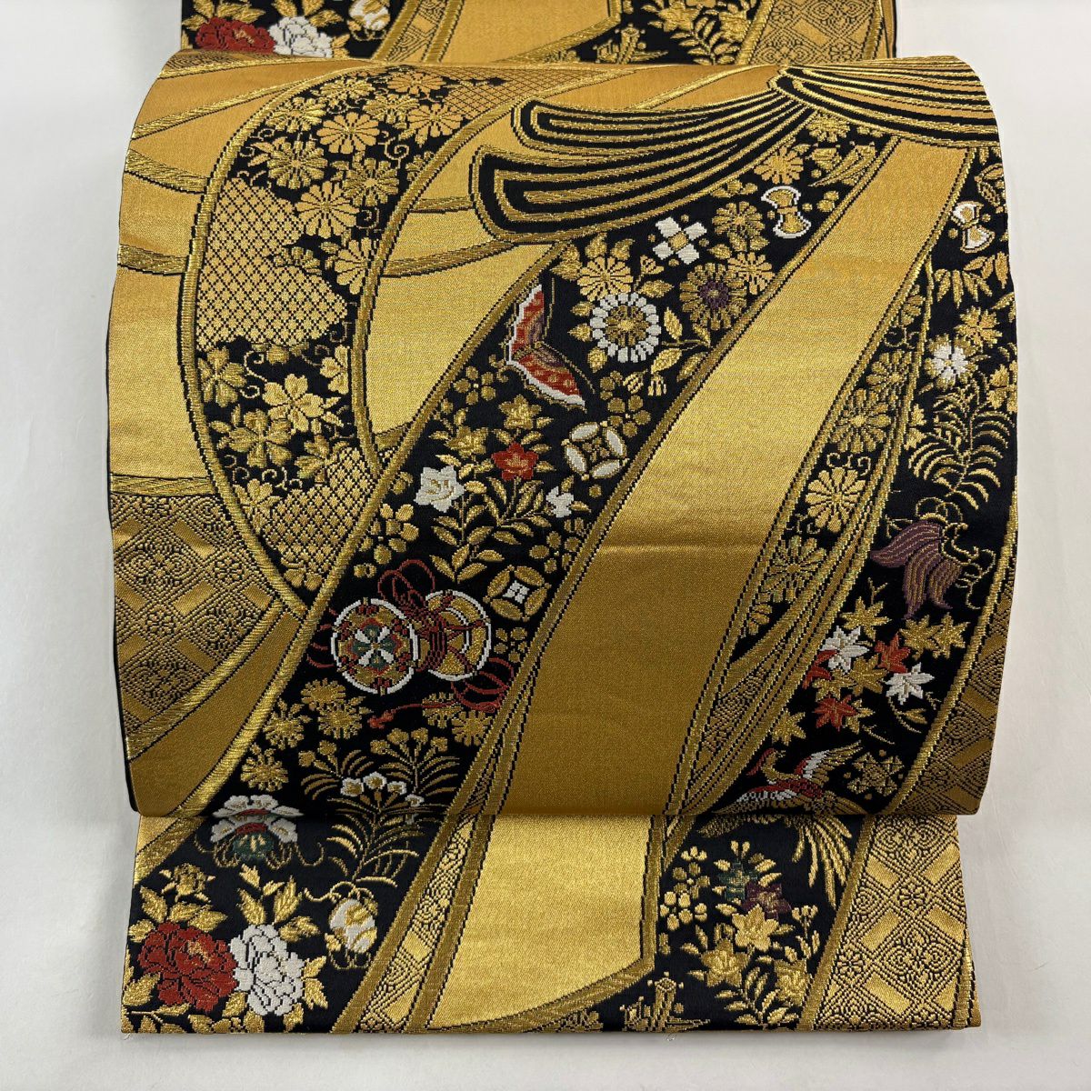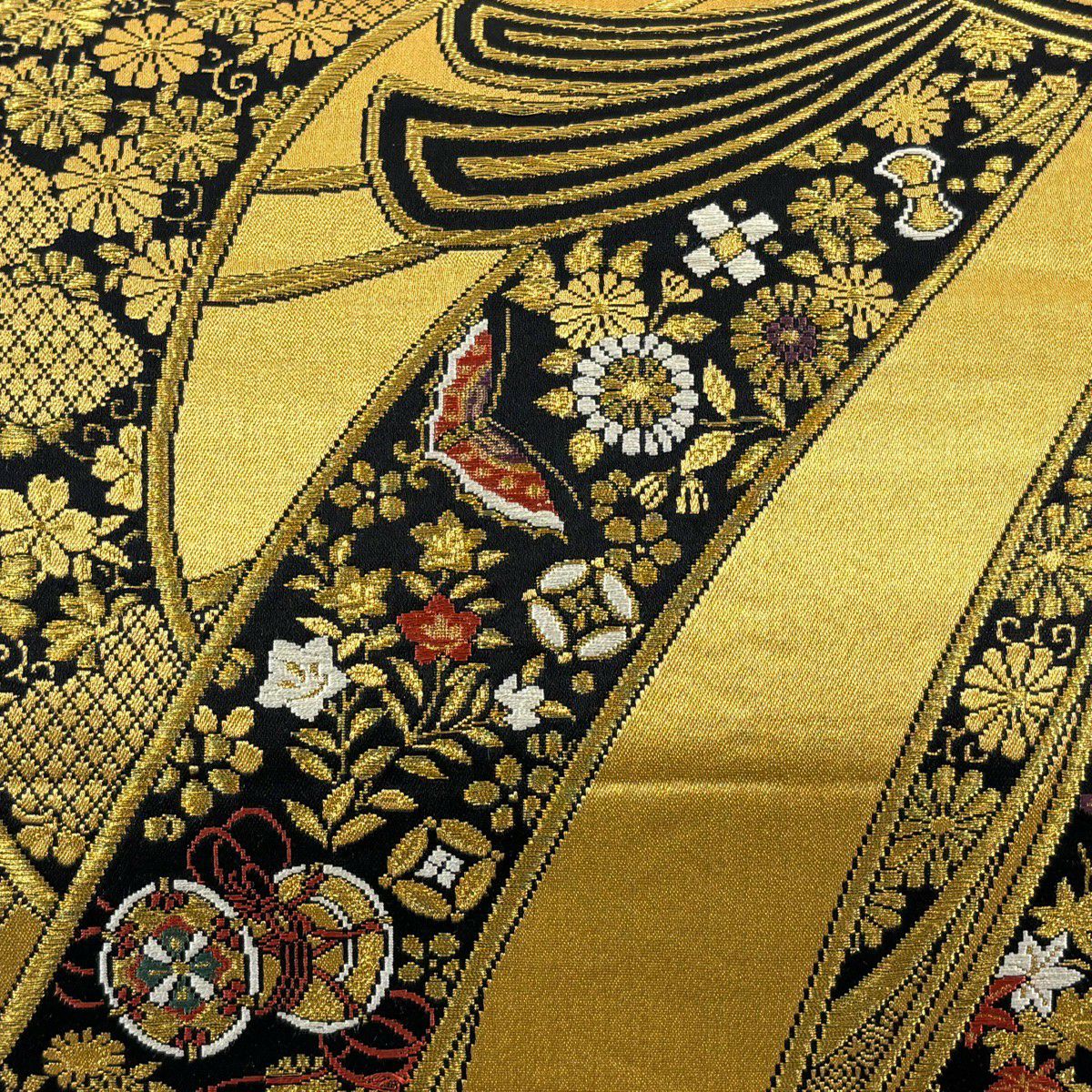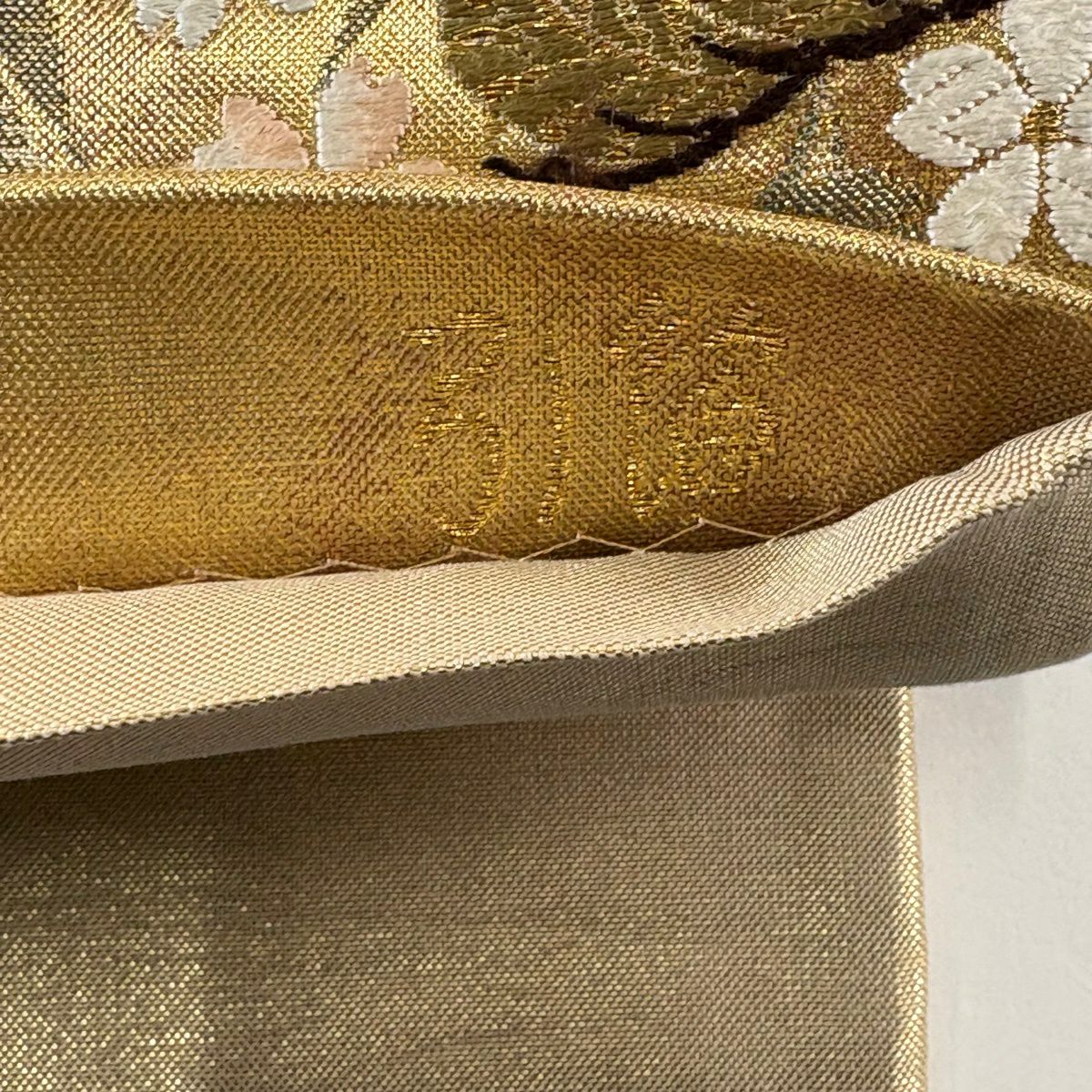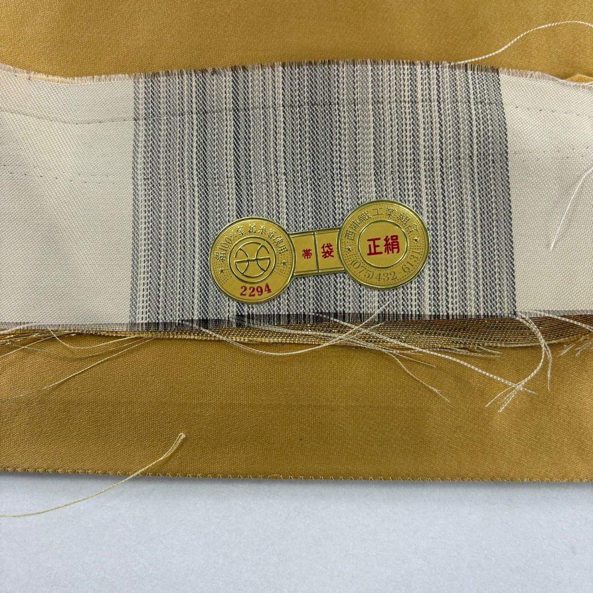 袋帯 秀品 証紙あり 関西仕立て 小槌 組紐 金糸 箔 金色 六通 正絹