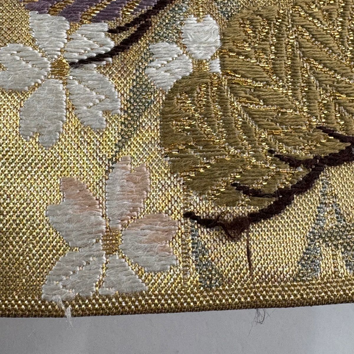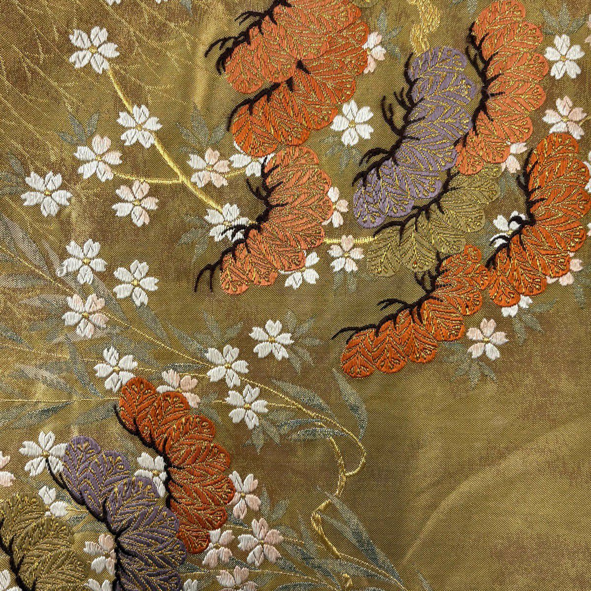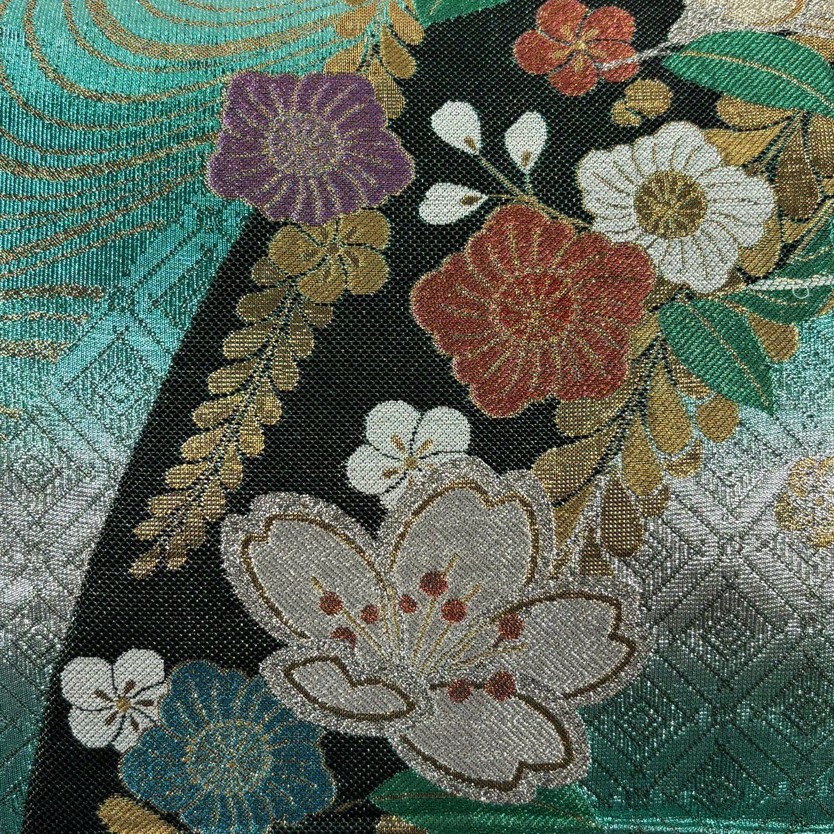 【美品】 袋帯 秀品 やまと 秋草 桜 金糸 箔 灰緑 お太鼓柄 正絹