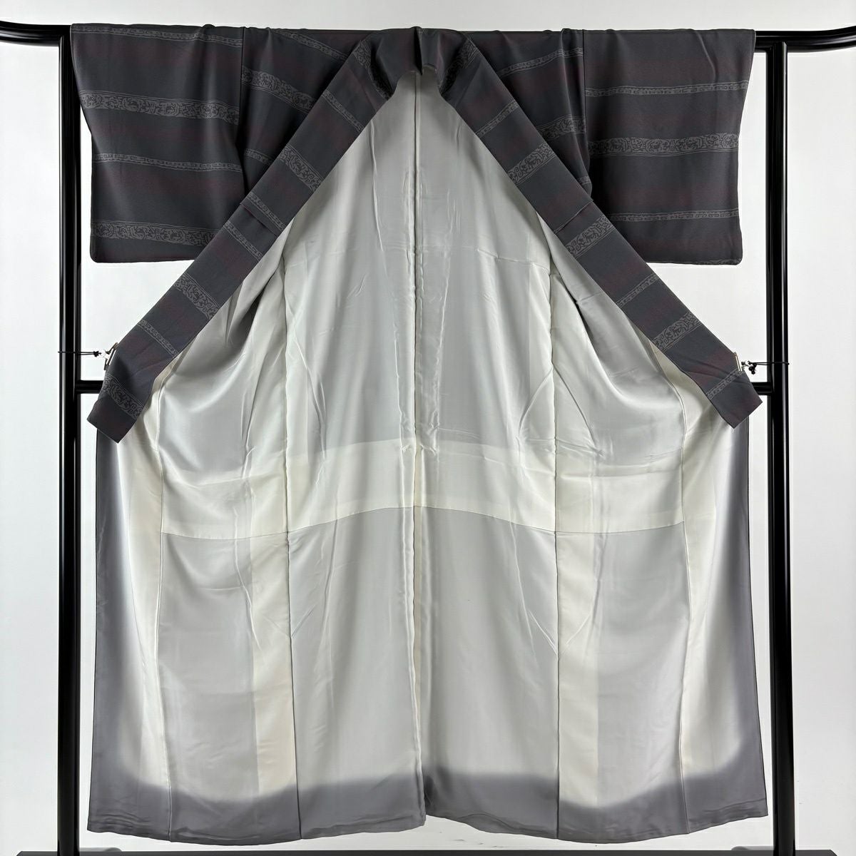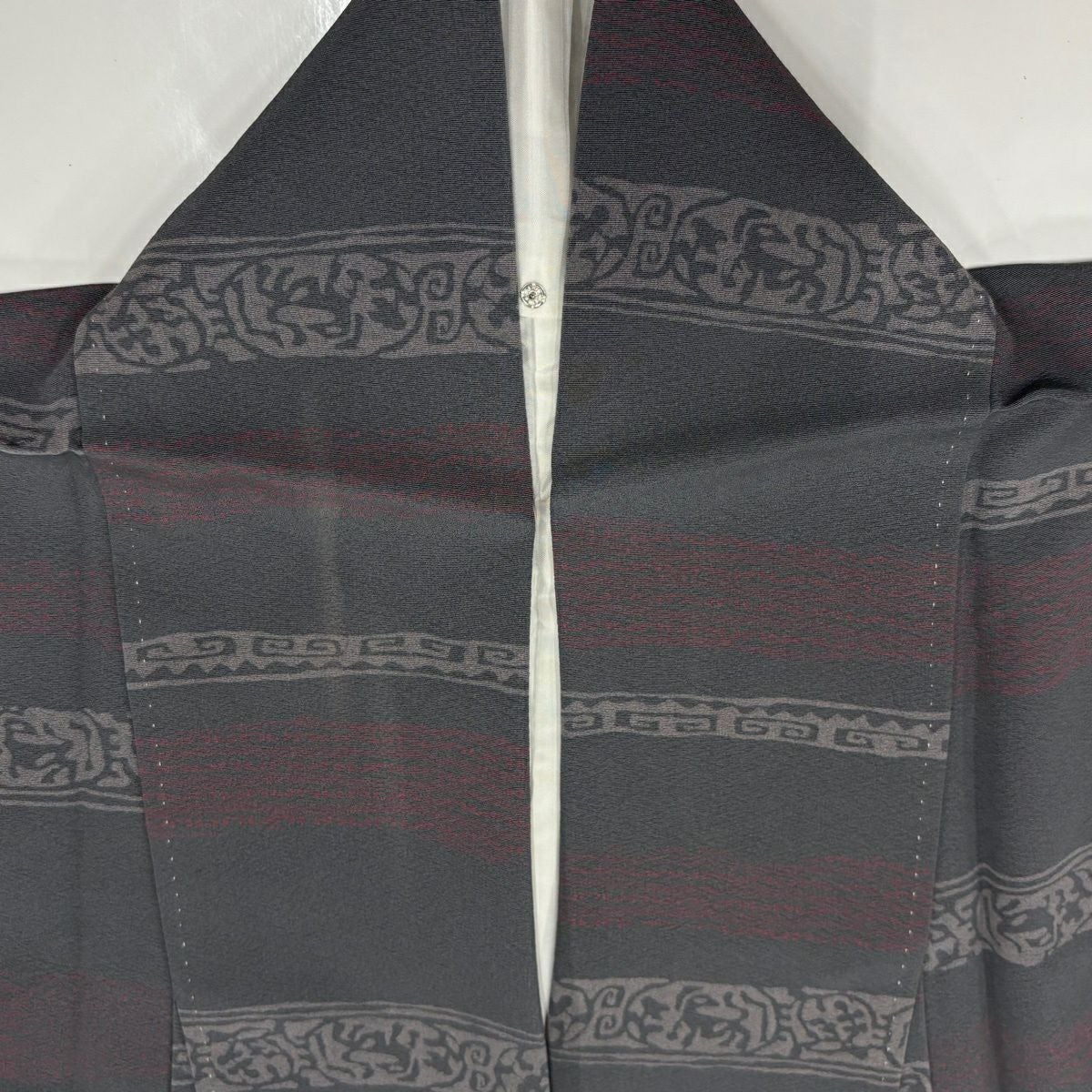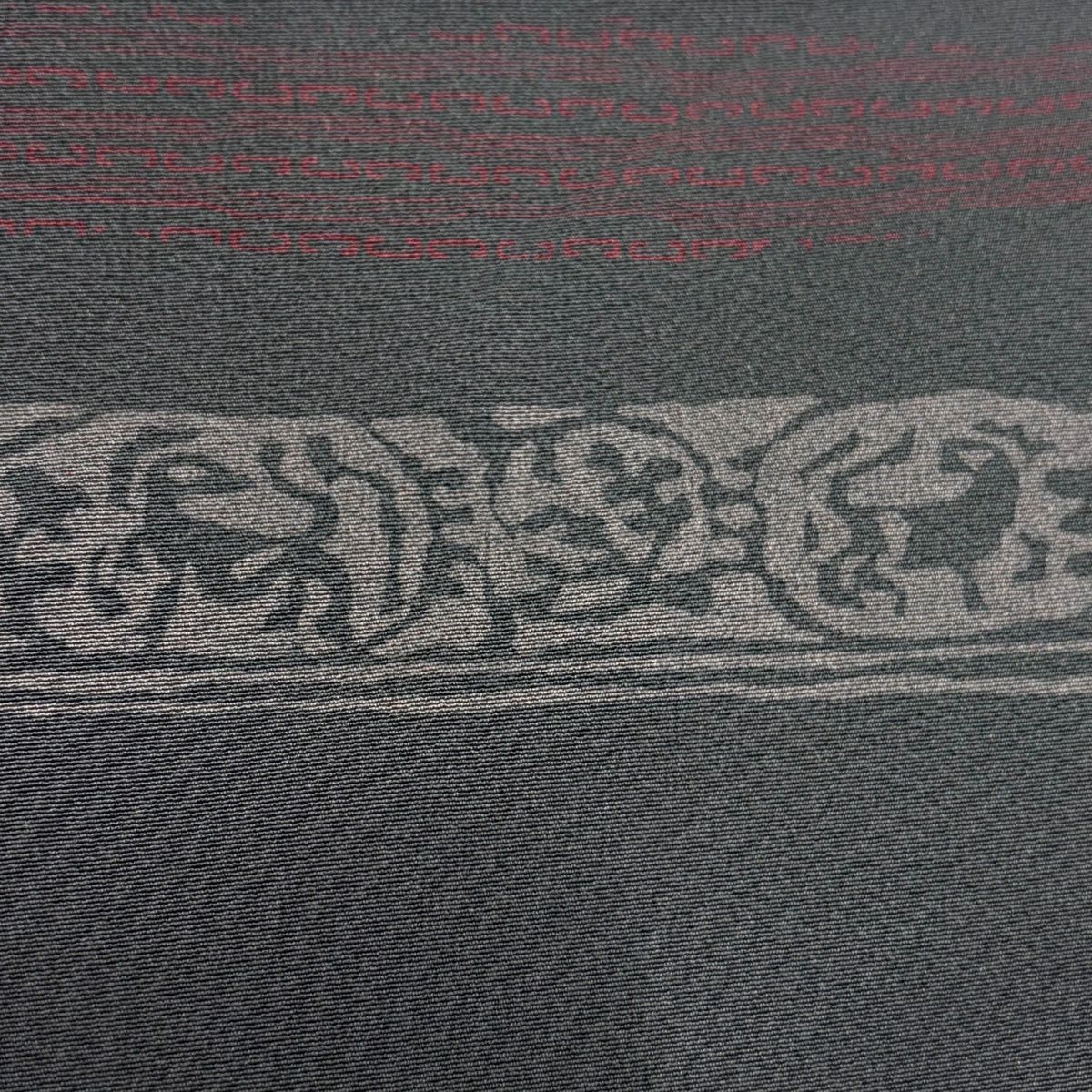 小紋 身丈155cm 裄丈63cm S 袷 動物 段縞 灰色 正絹 秀品