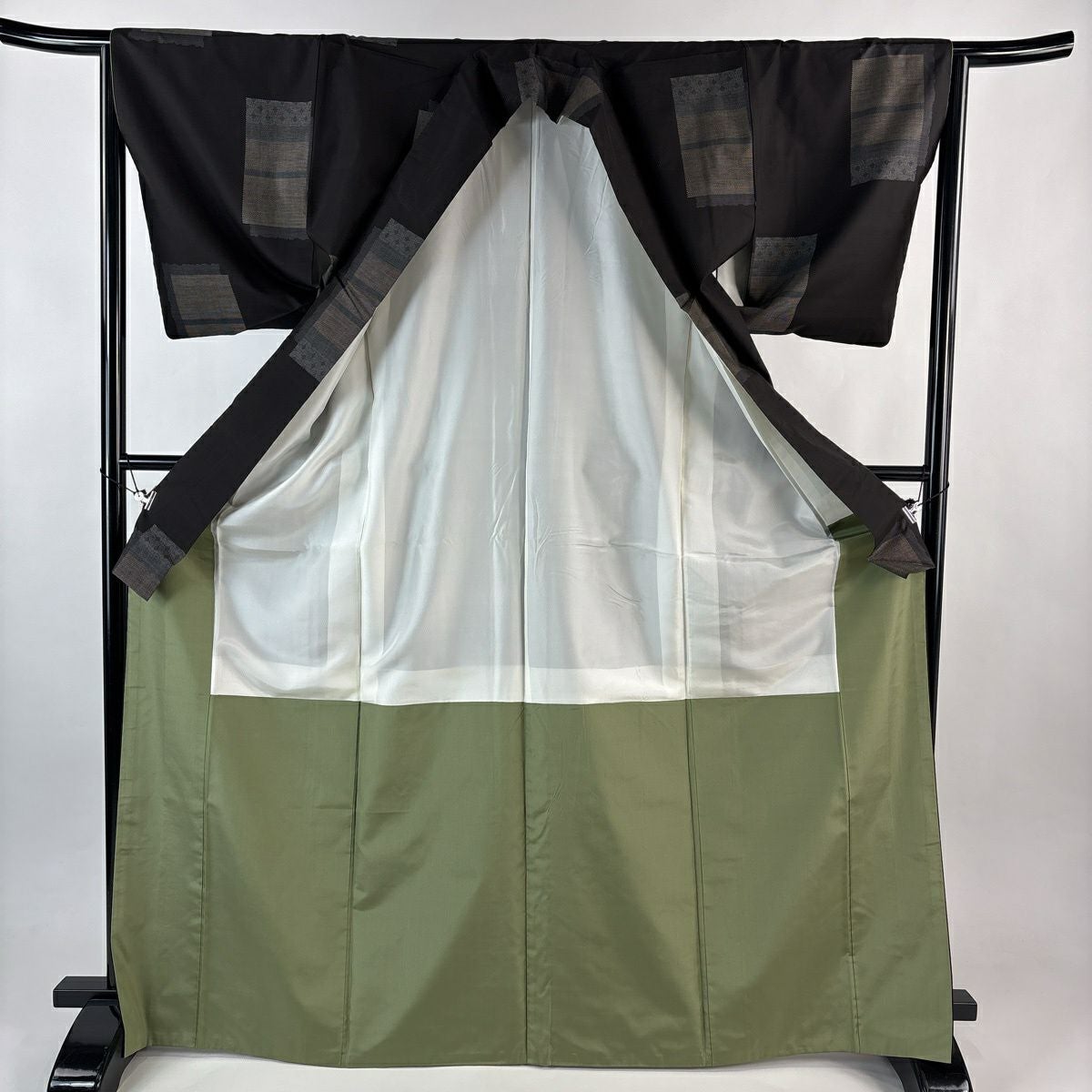紬 身丈161.5cm 裄丈63cm S 袷 源氏車 焦茶色 正絹 秀品