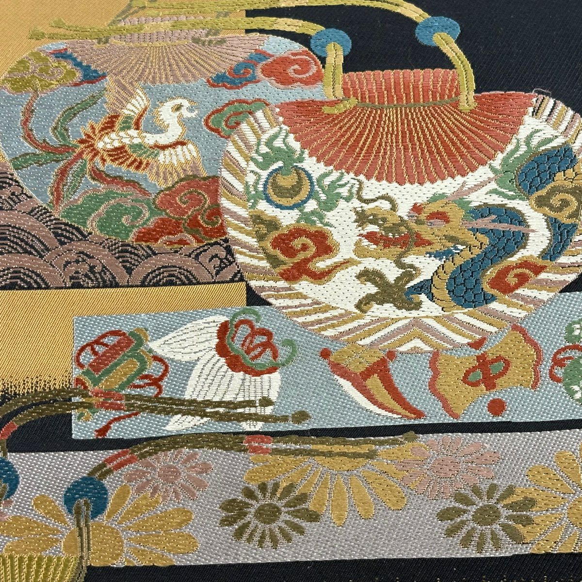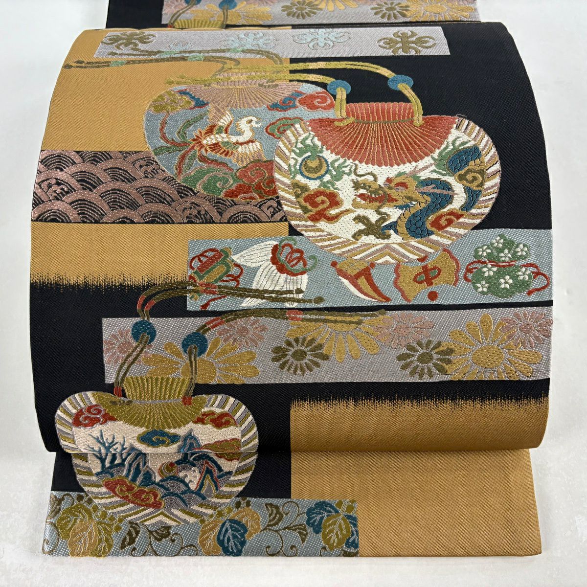 【美品】 袋帯 秀品 龍 鳳凰 黒 六通 正絹