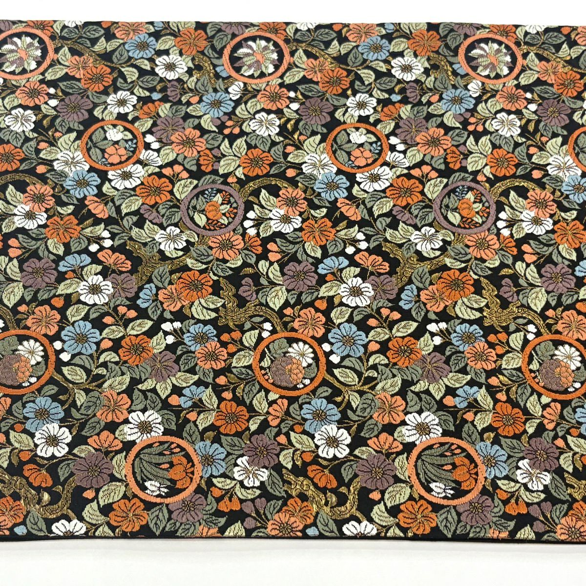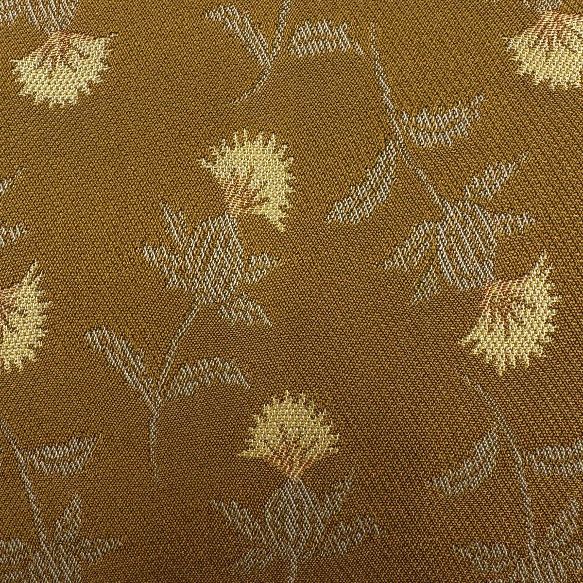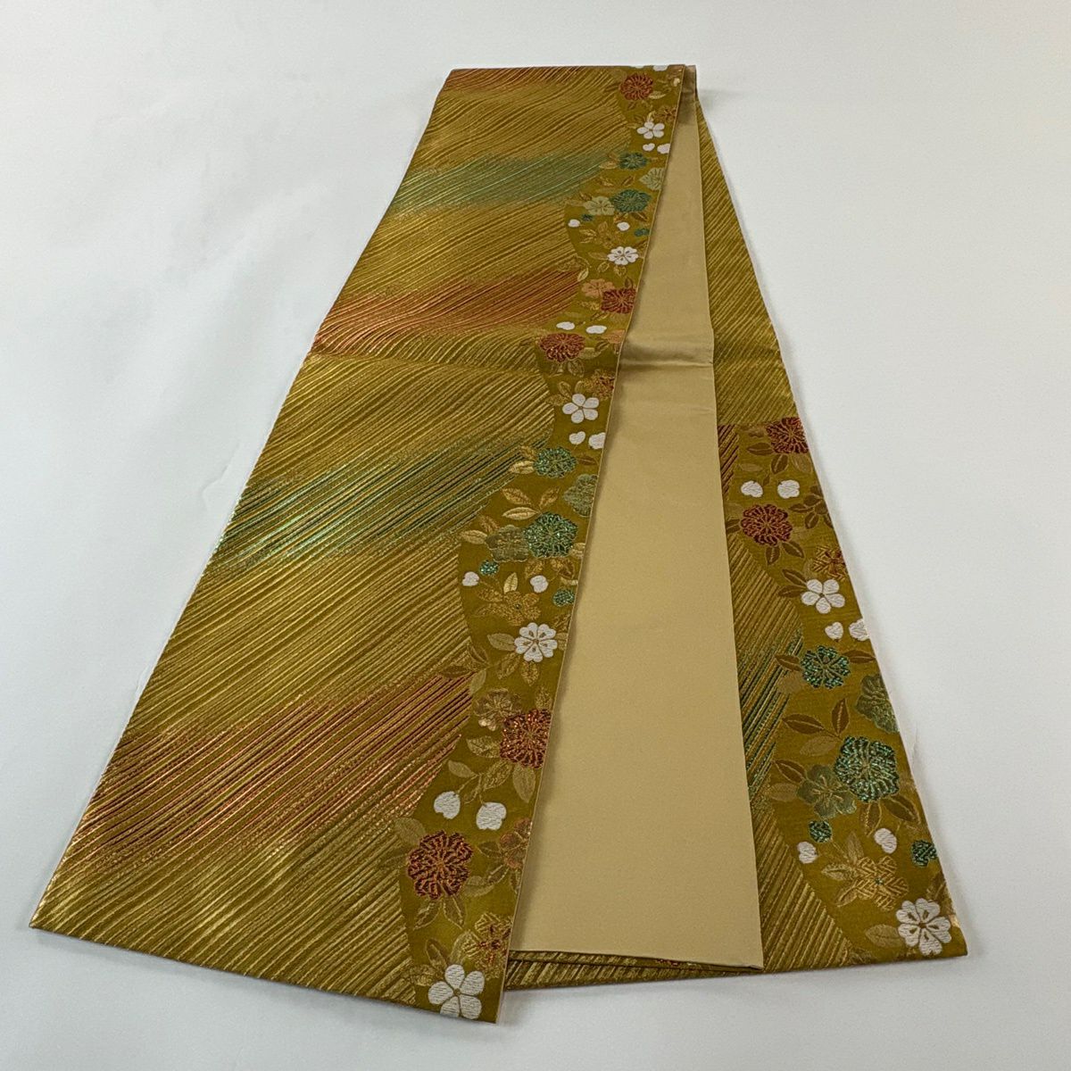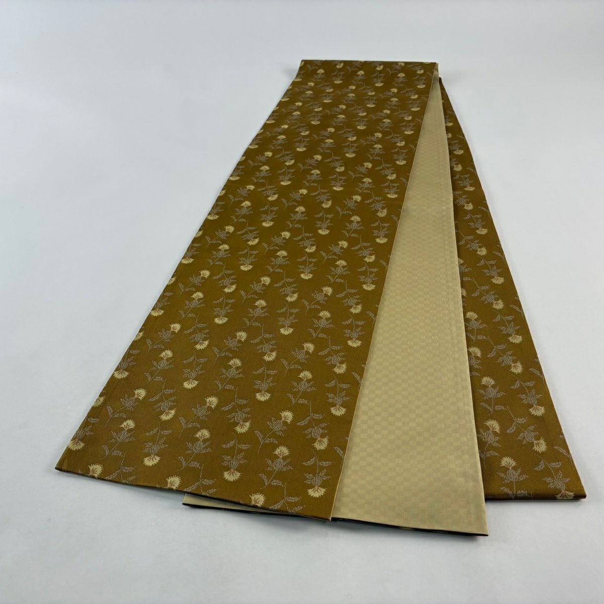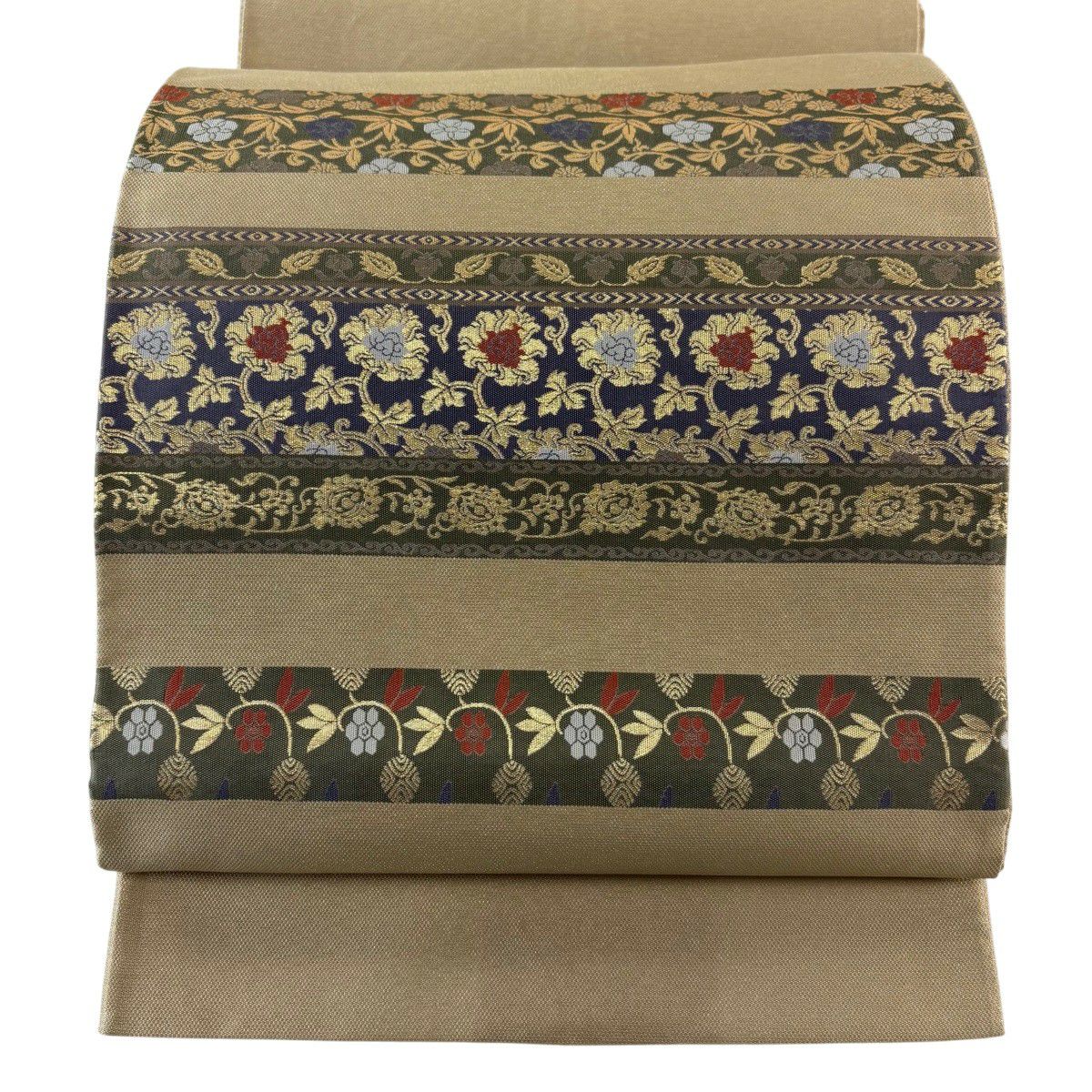 【美品】 袋帯 秀品 草花 黄土色 全通 正絹