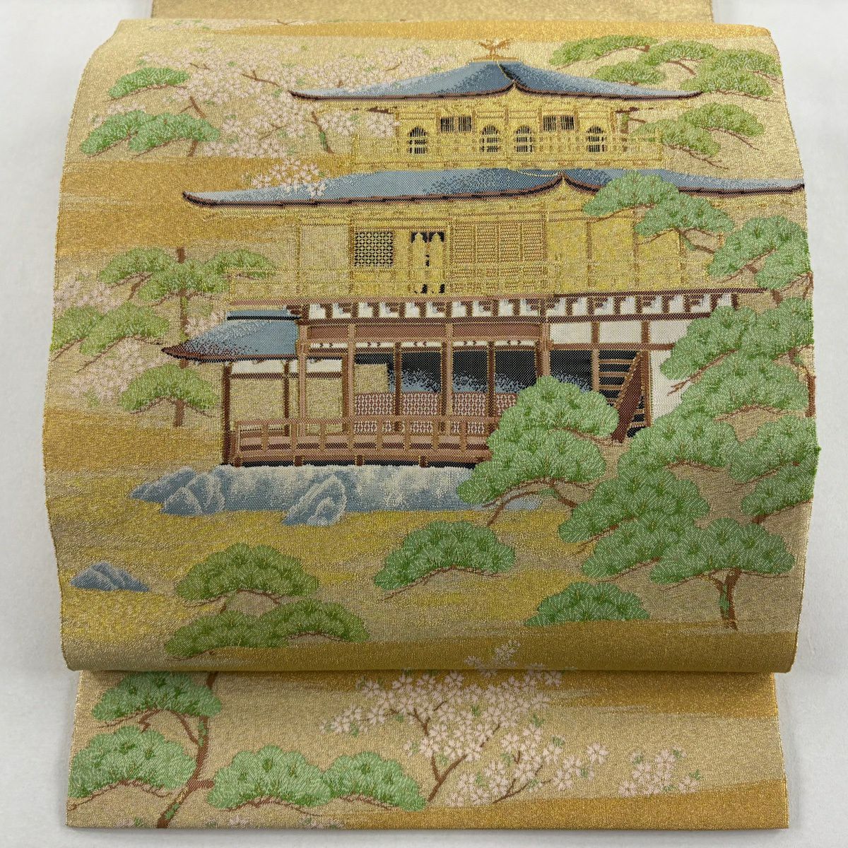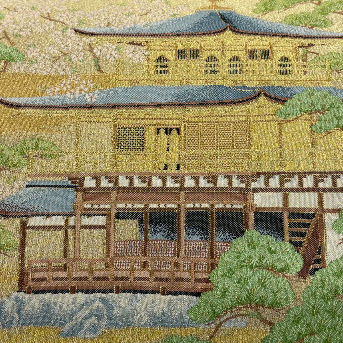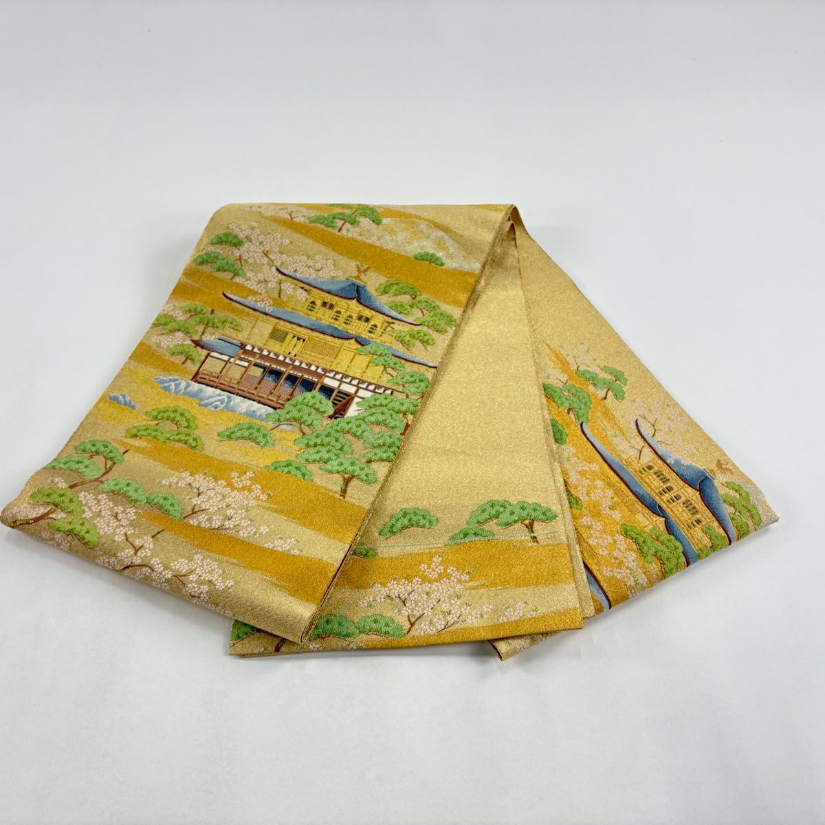 袋帯 秀品 金閣寺 松 金糸 金色 お太鼓柄 正絹