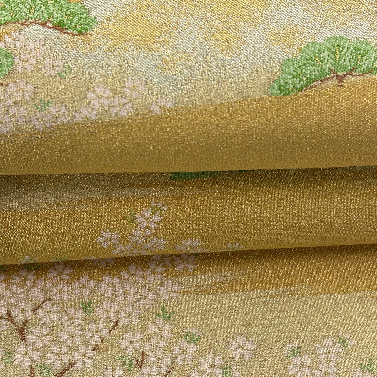 袋帯 秀品 桜 梅 金銀糸 箔 金色 六通 正絹