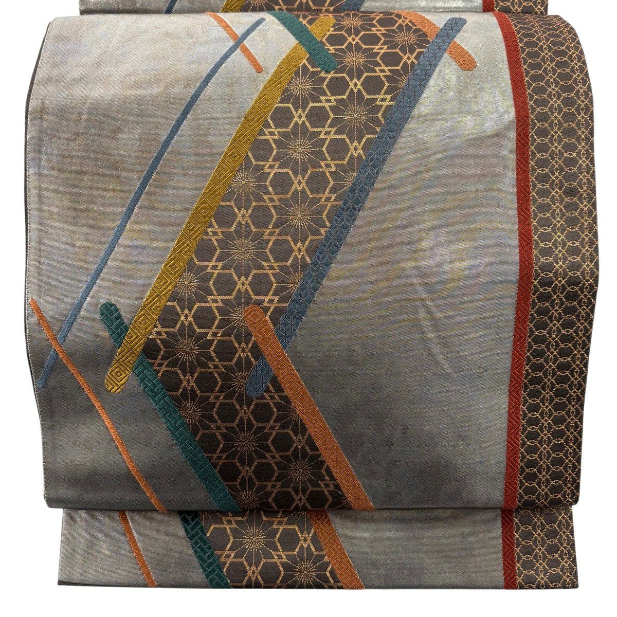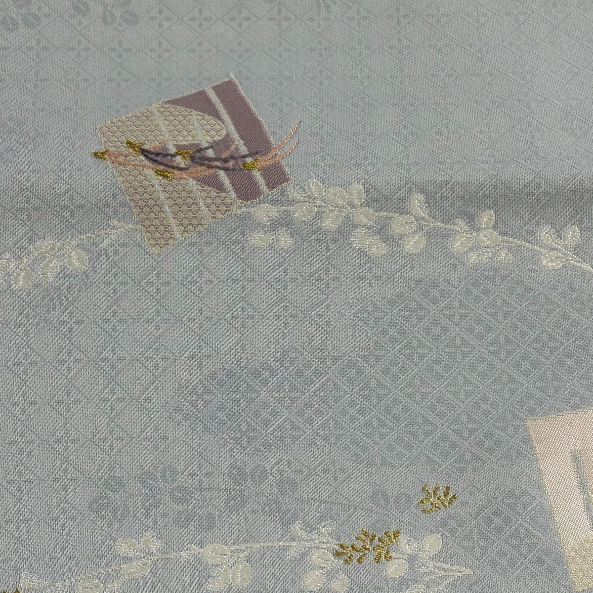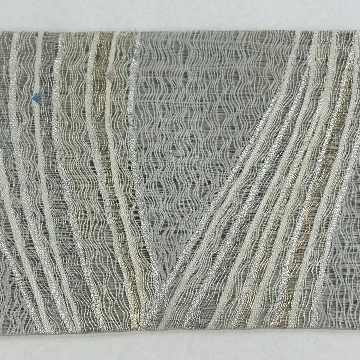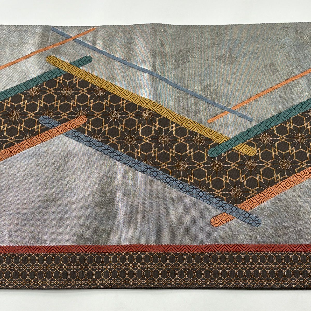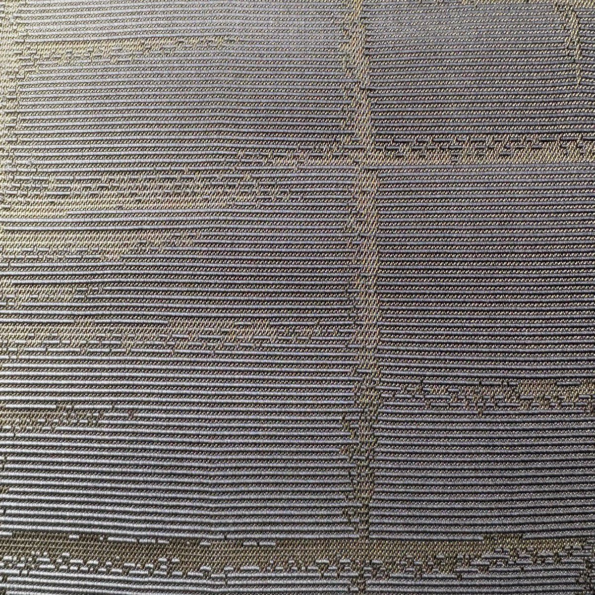 名古屋帯 秀品 幾何学模様 金銀糸 灰色 正絹