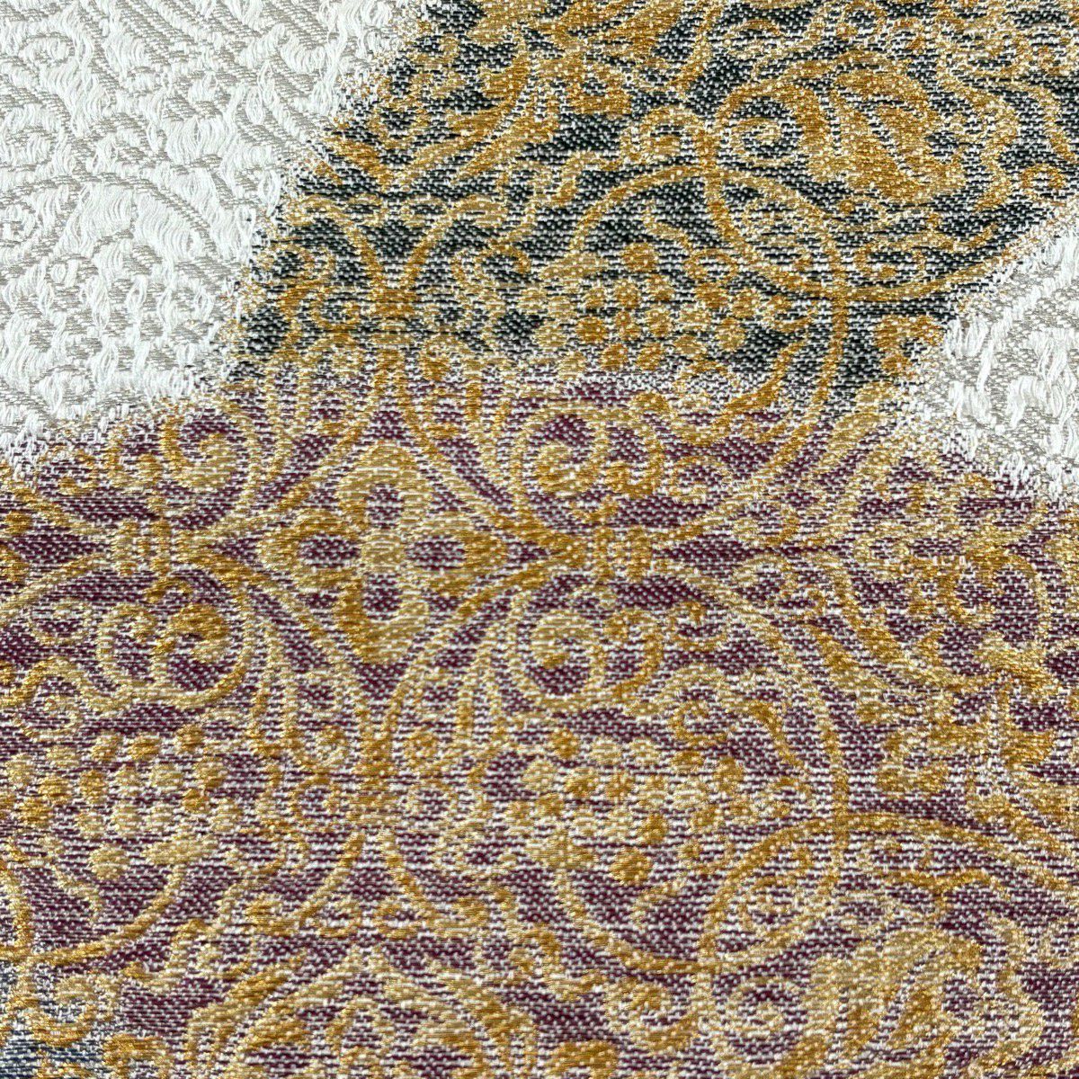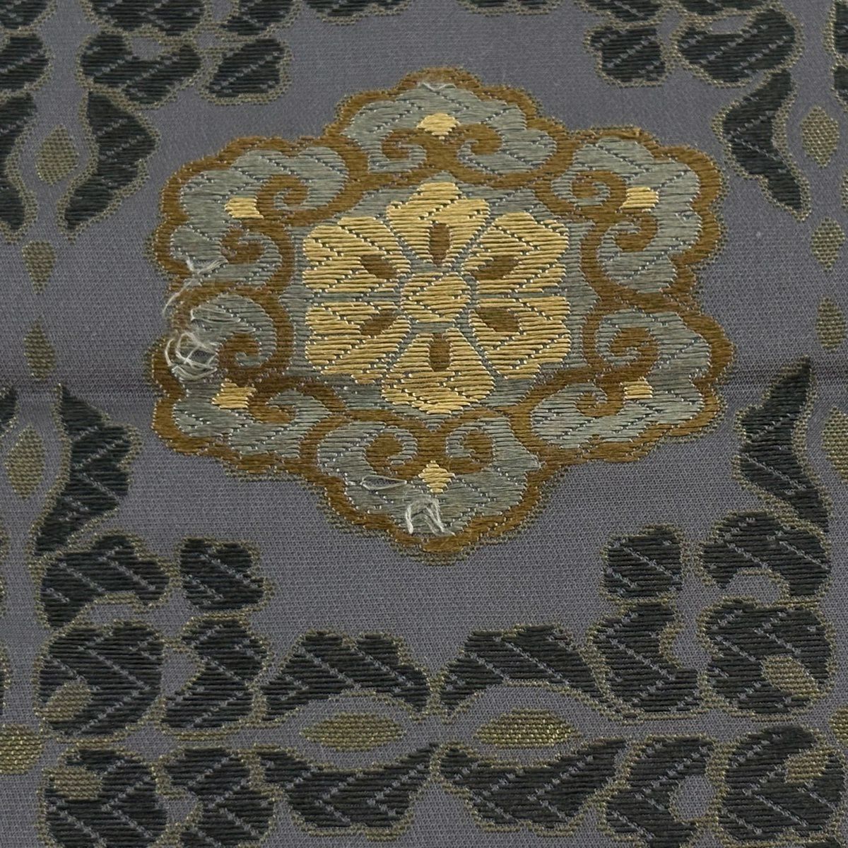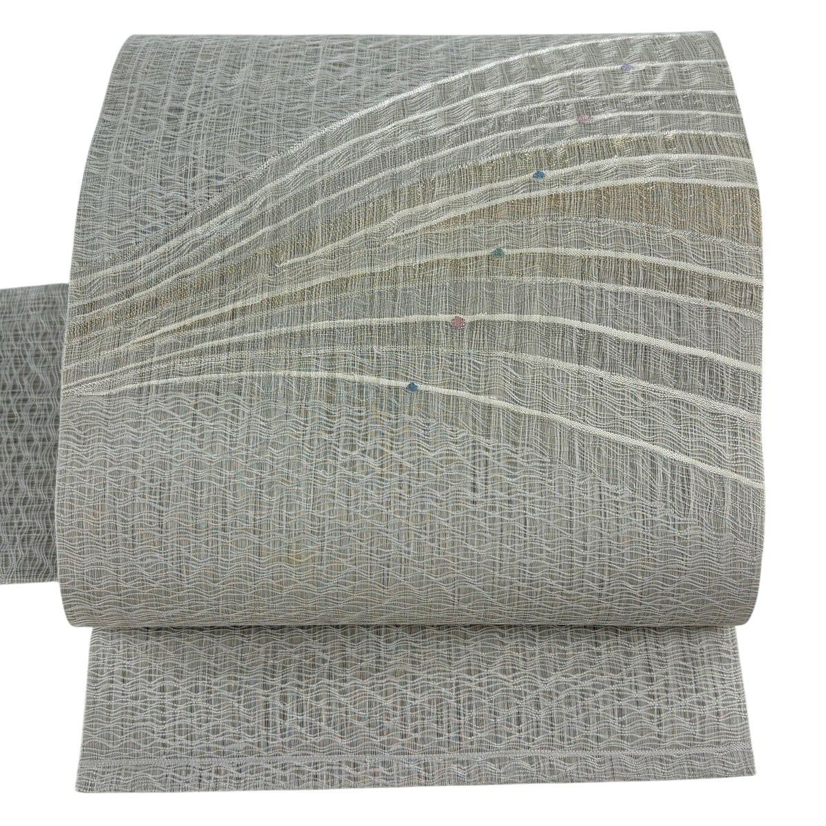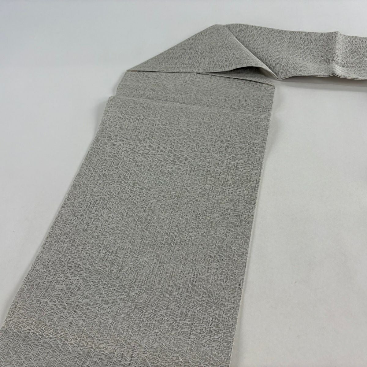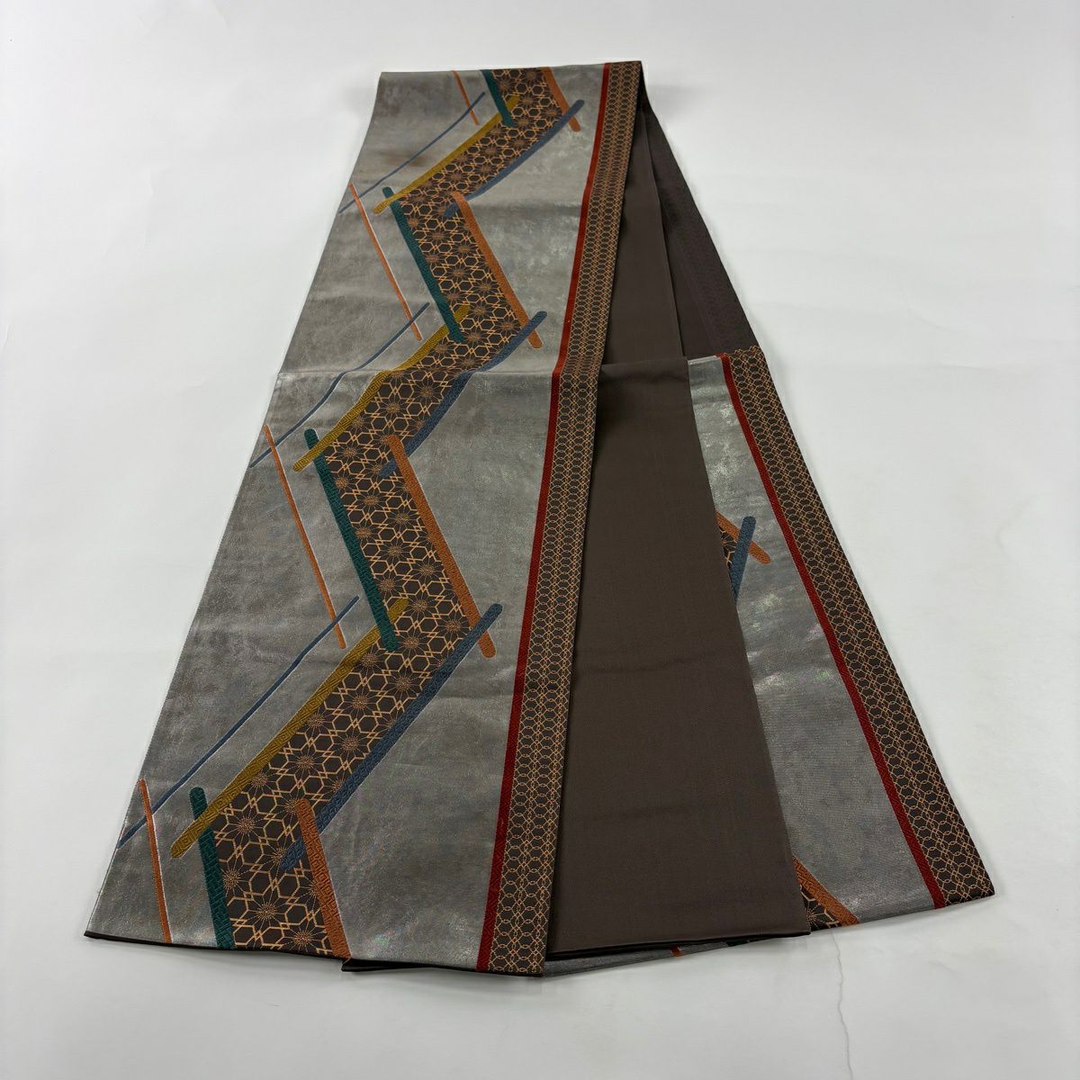名古屋帯 秀品 幾何学模様 金銀糸 灰色 正絹