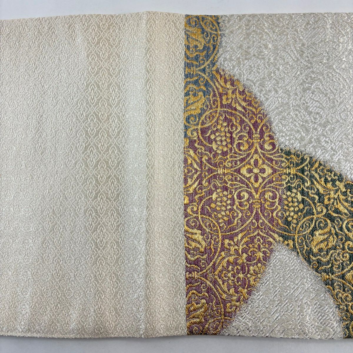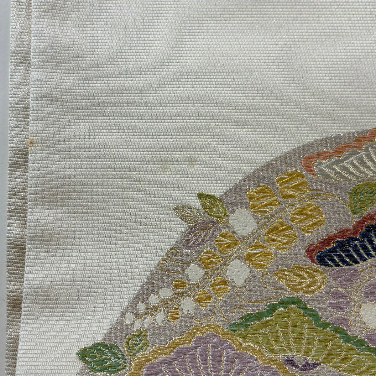 袋帯 秀品 葡萄唐草 金銀糸 灰白 六通 正絹