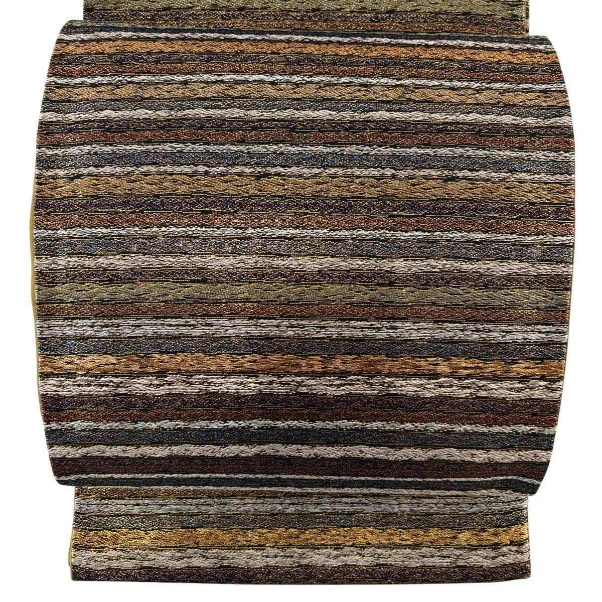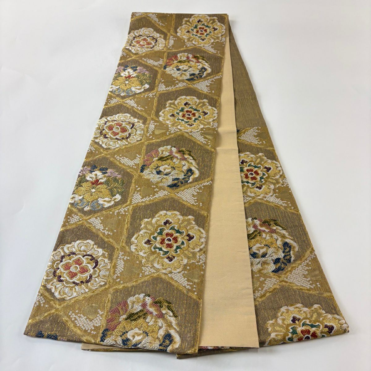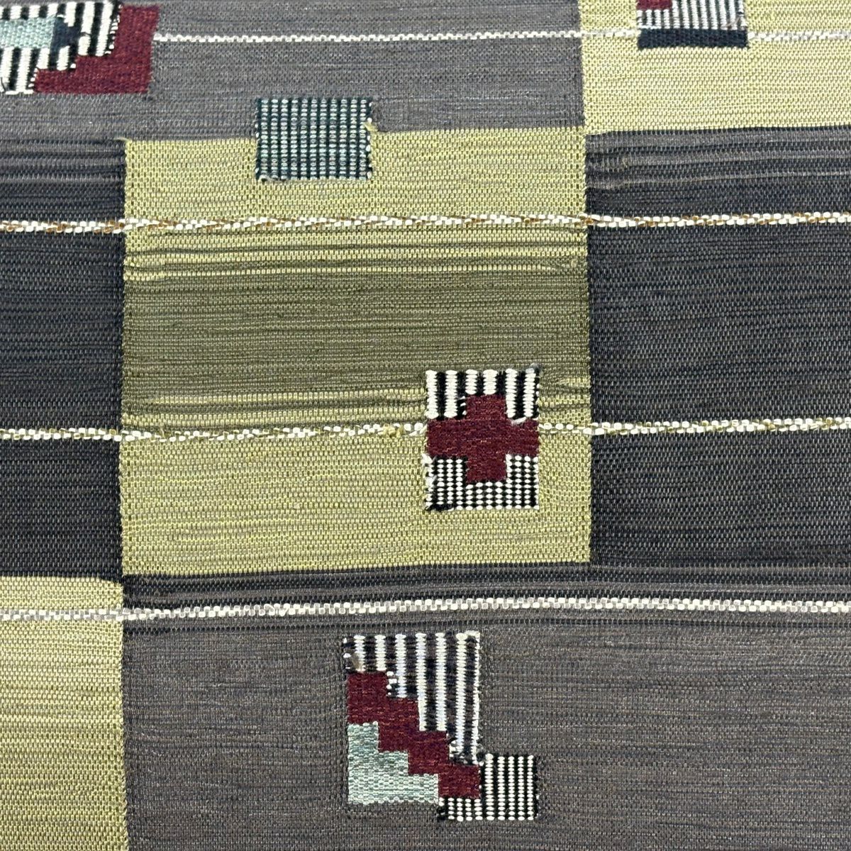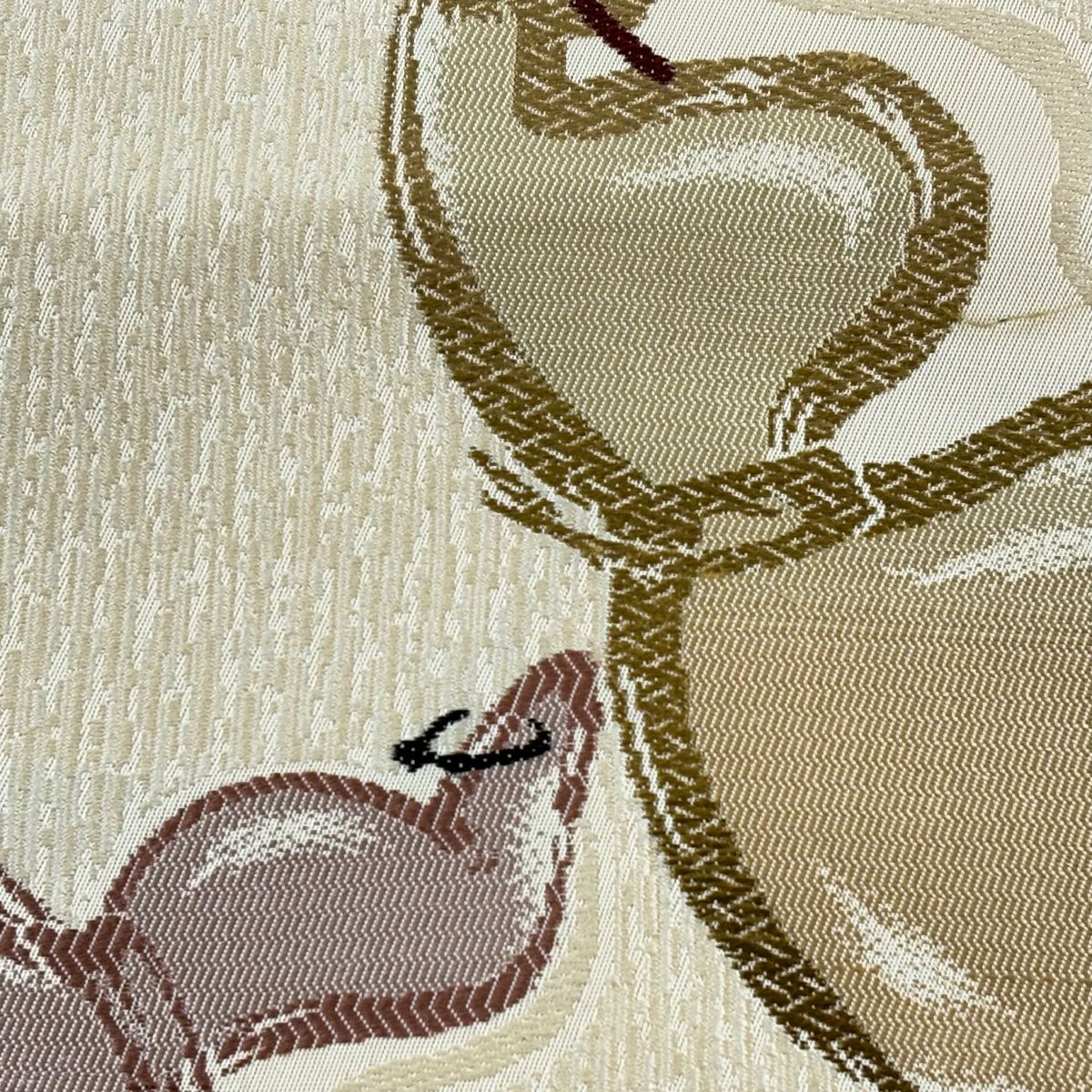 袋帯 秀品 幾何学模様 箔 薄茶色 六通 正絹