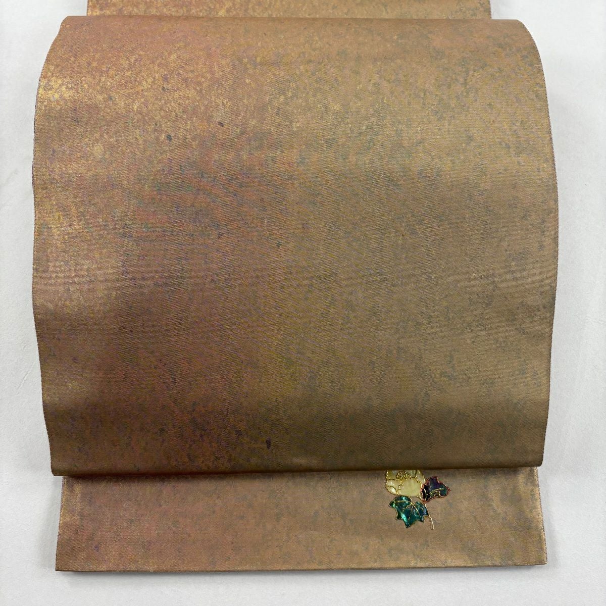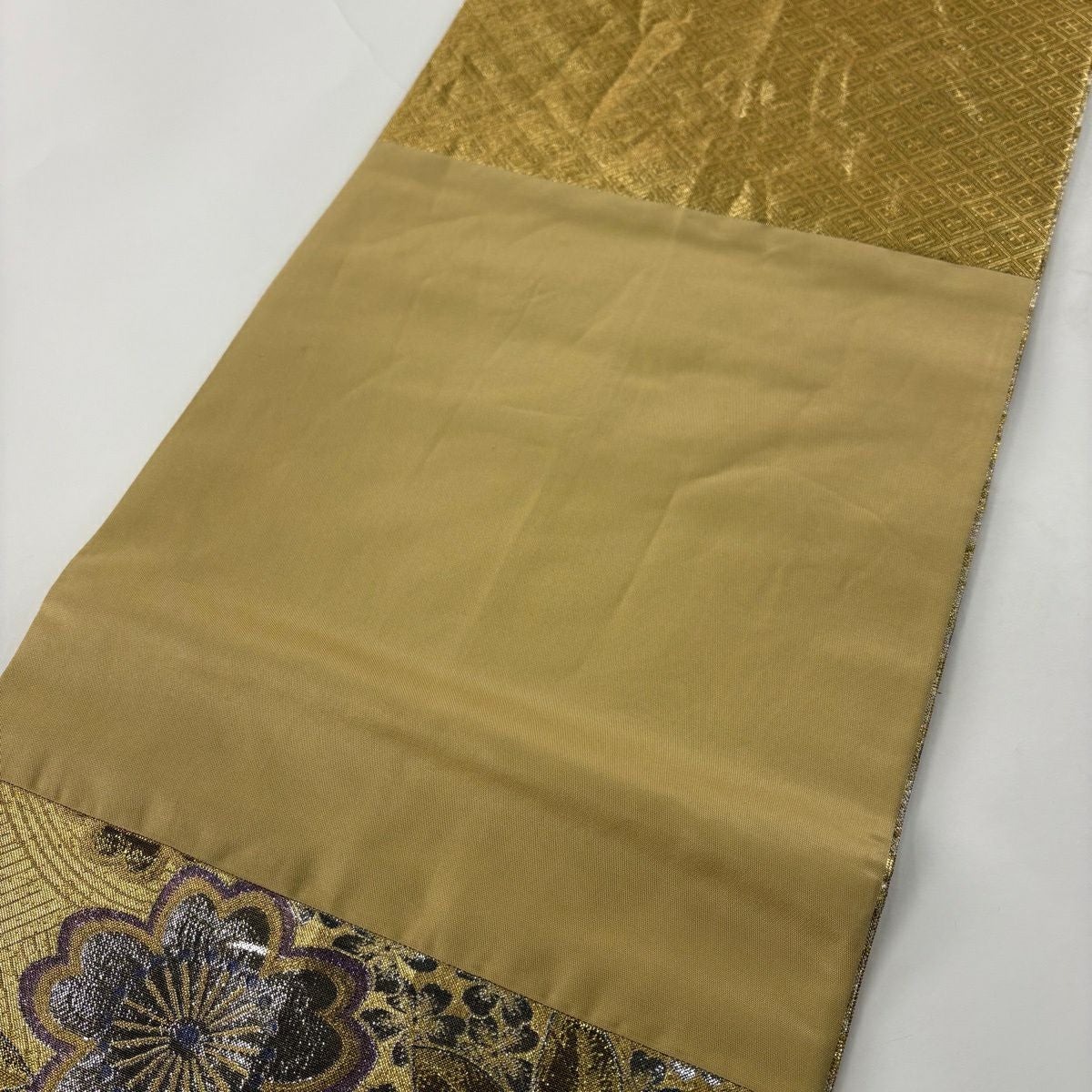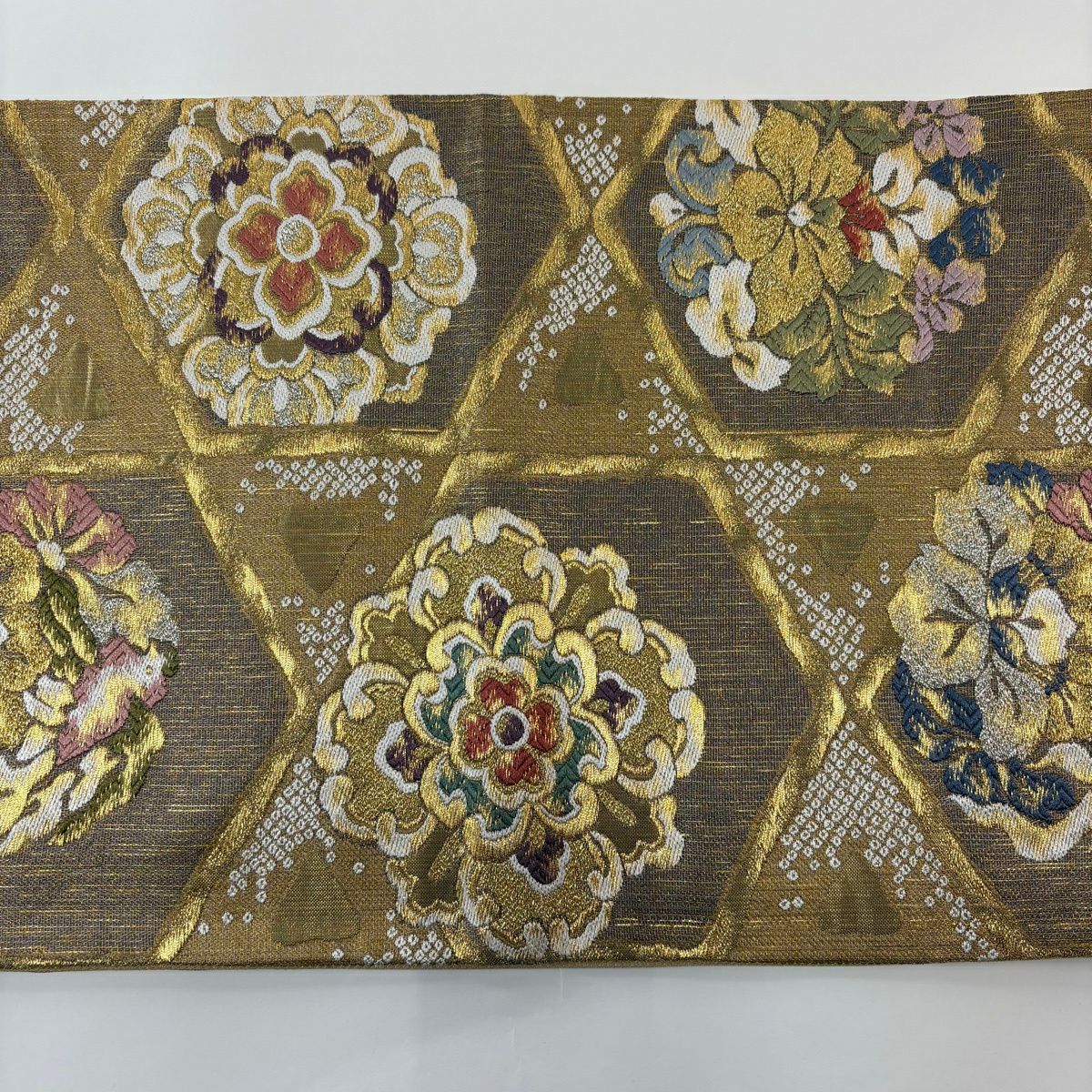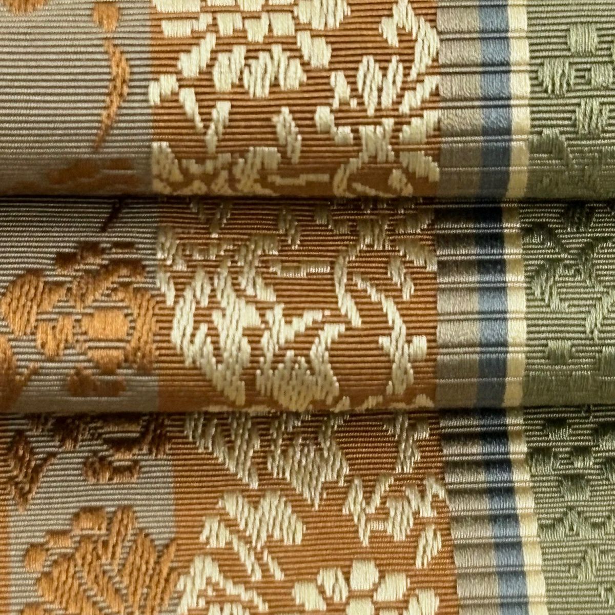 袋帯 秀品 幾何学模様 箔 薄茶色 六通 正絹