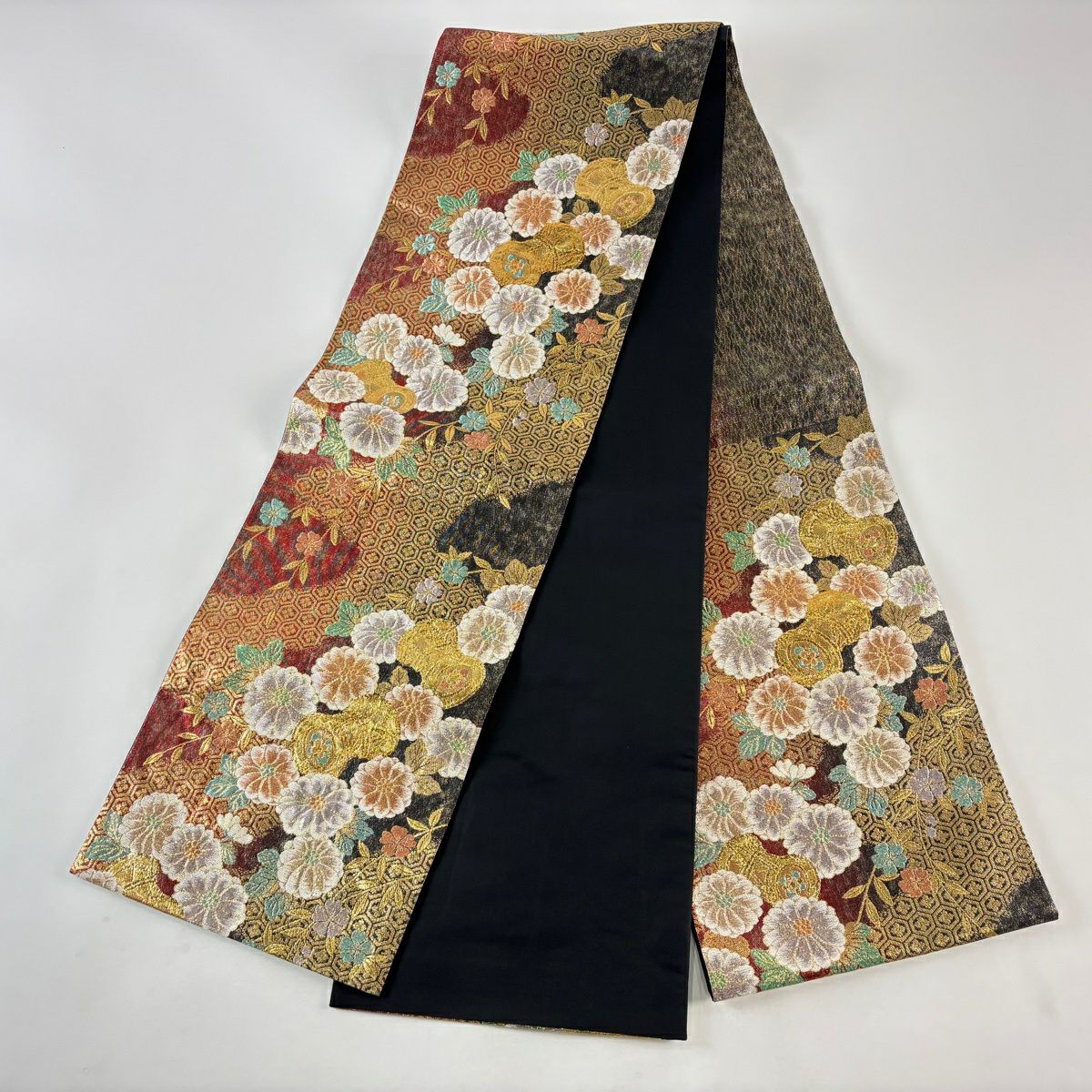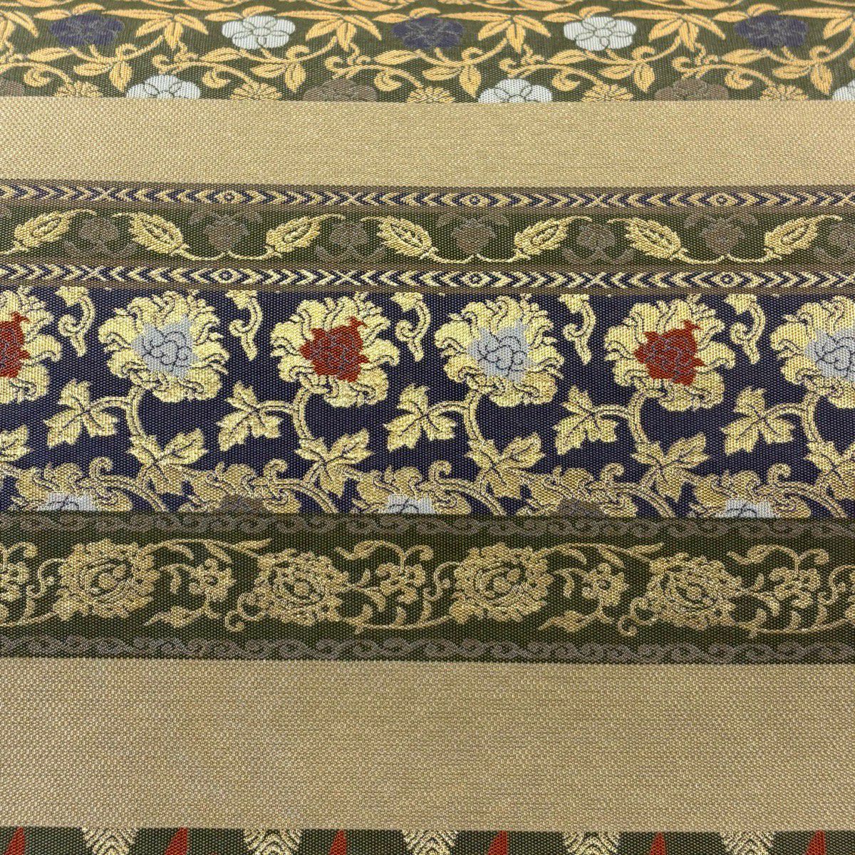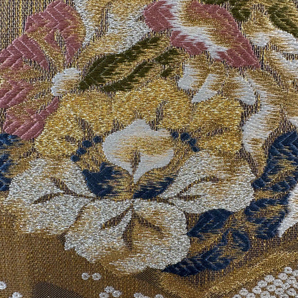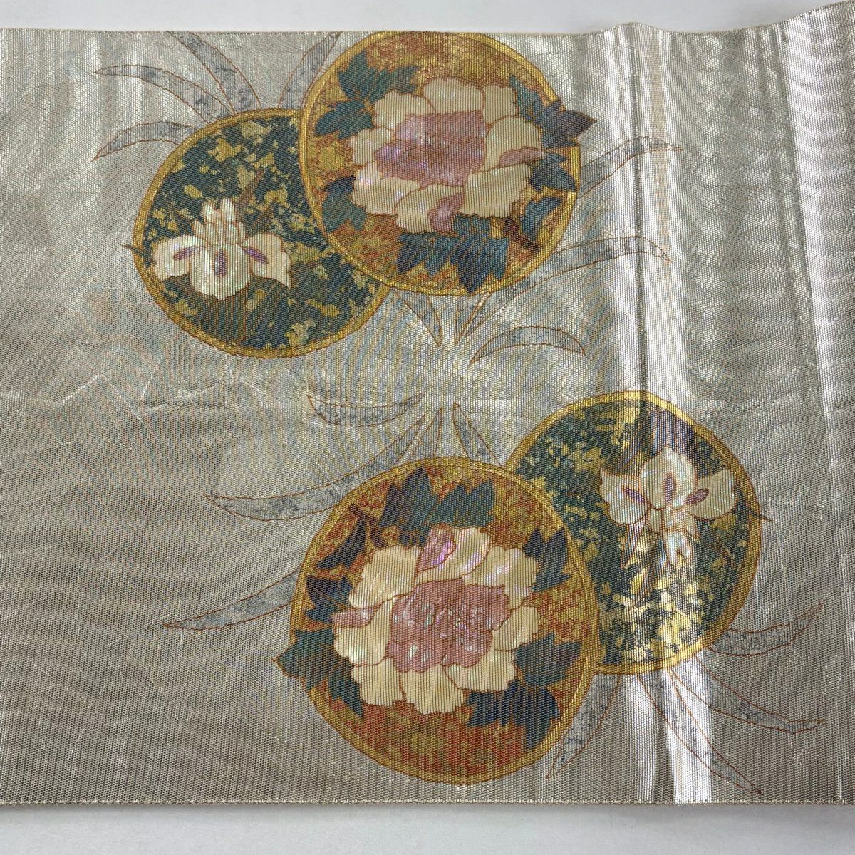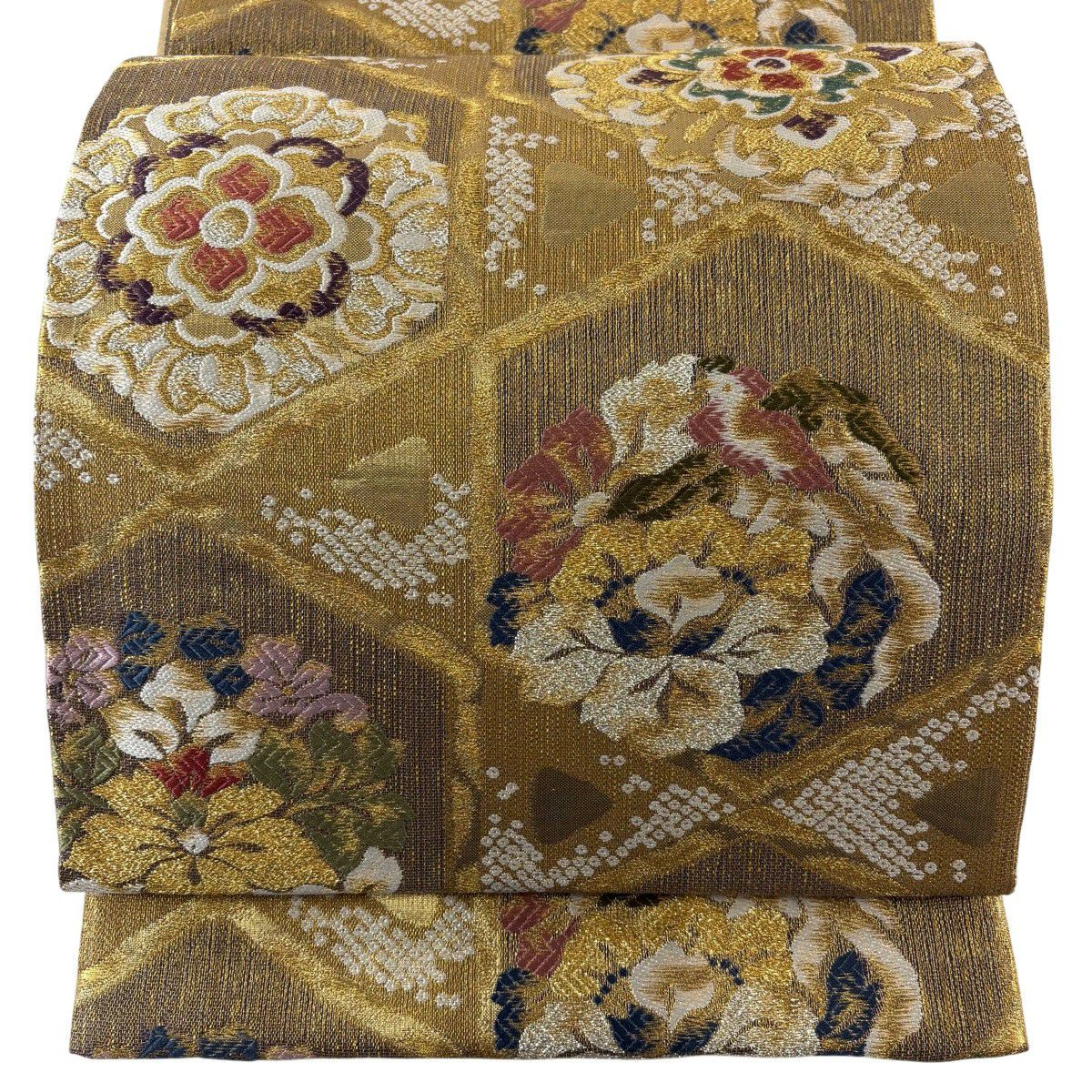 袋帯 秀品 菊 牡丹 箔 金色 お太鼓柄 正絹