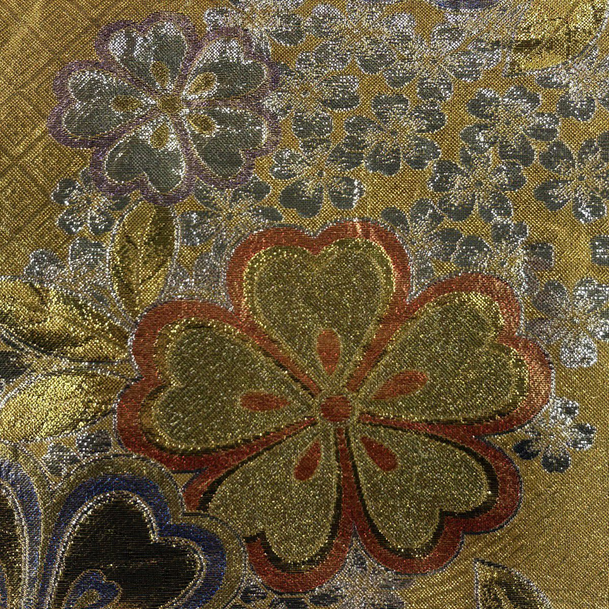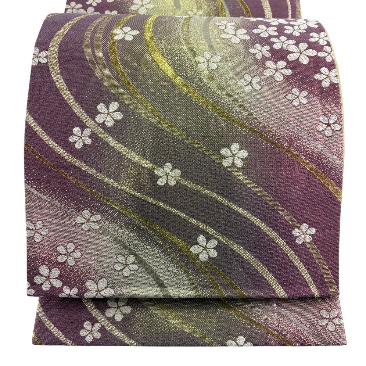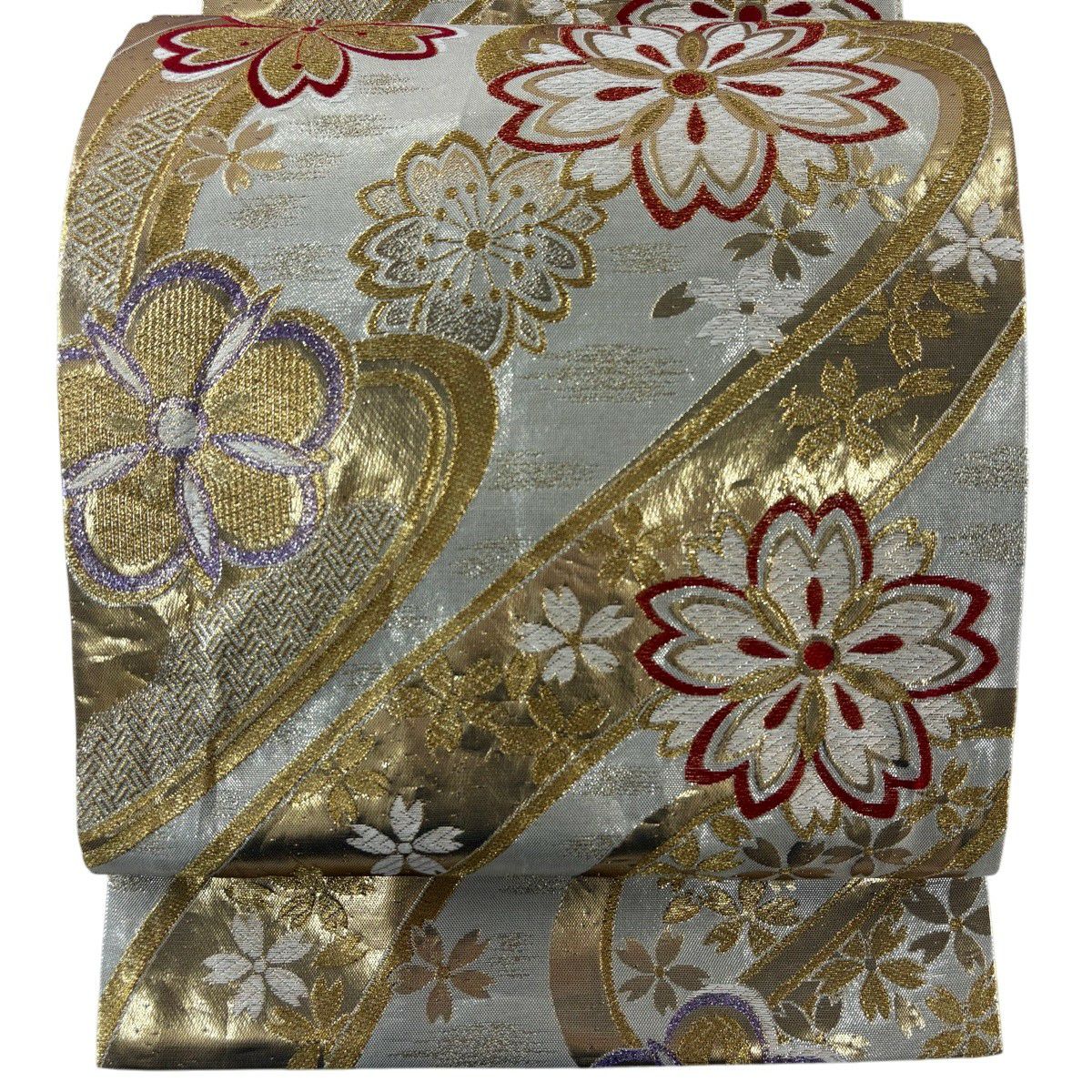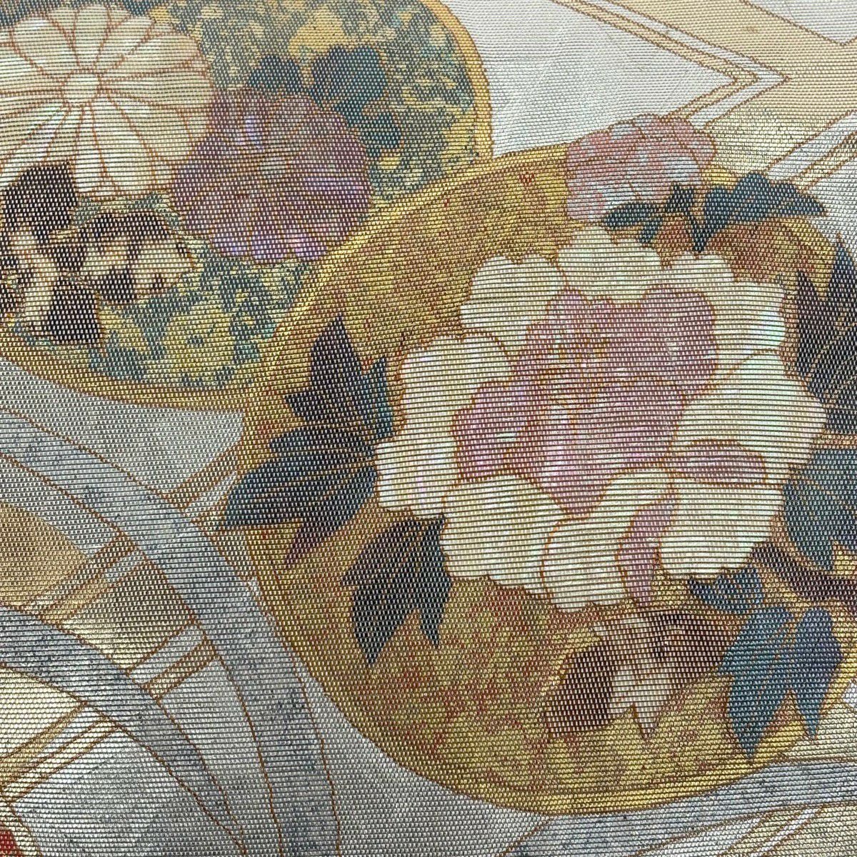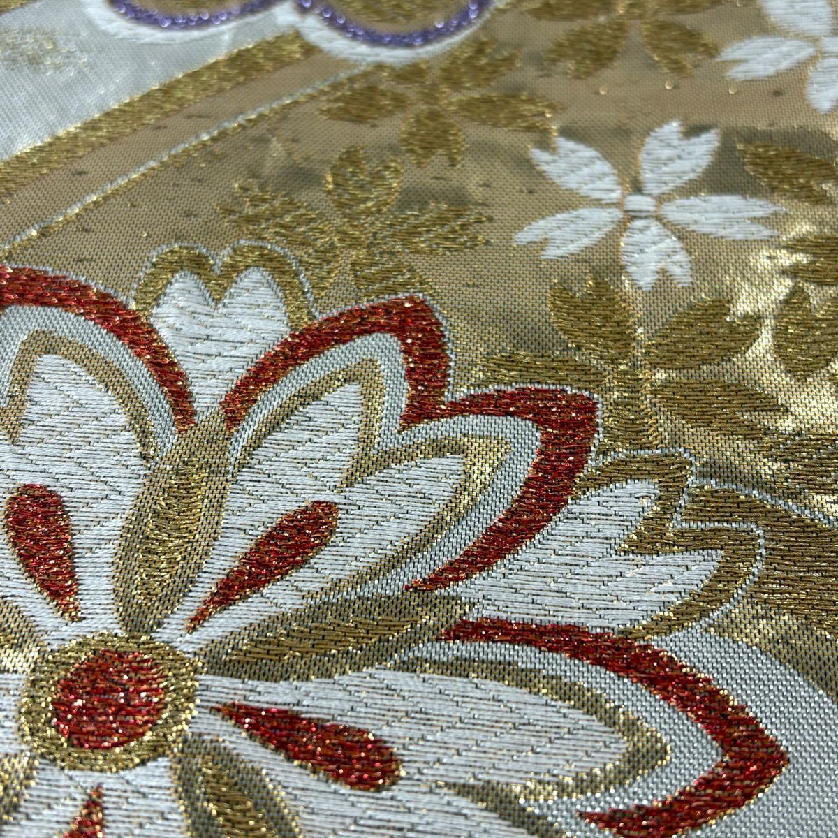 袋帯 秀品 桜 梅 金糸 箔 銀色 六通 正絹