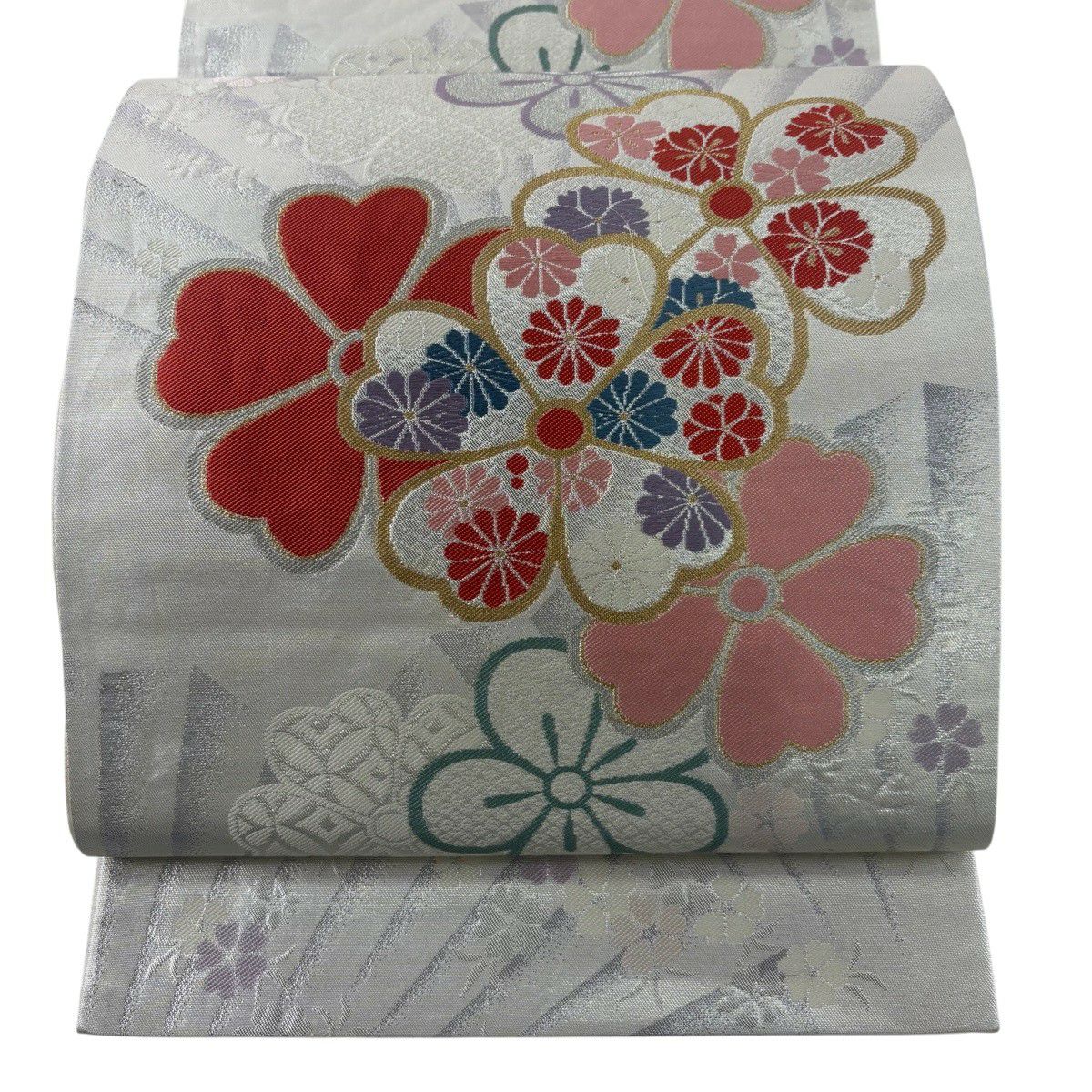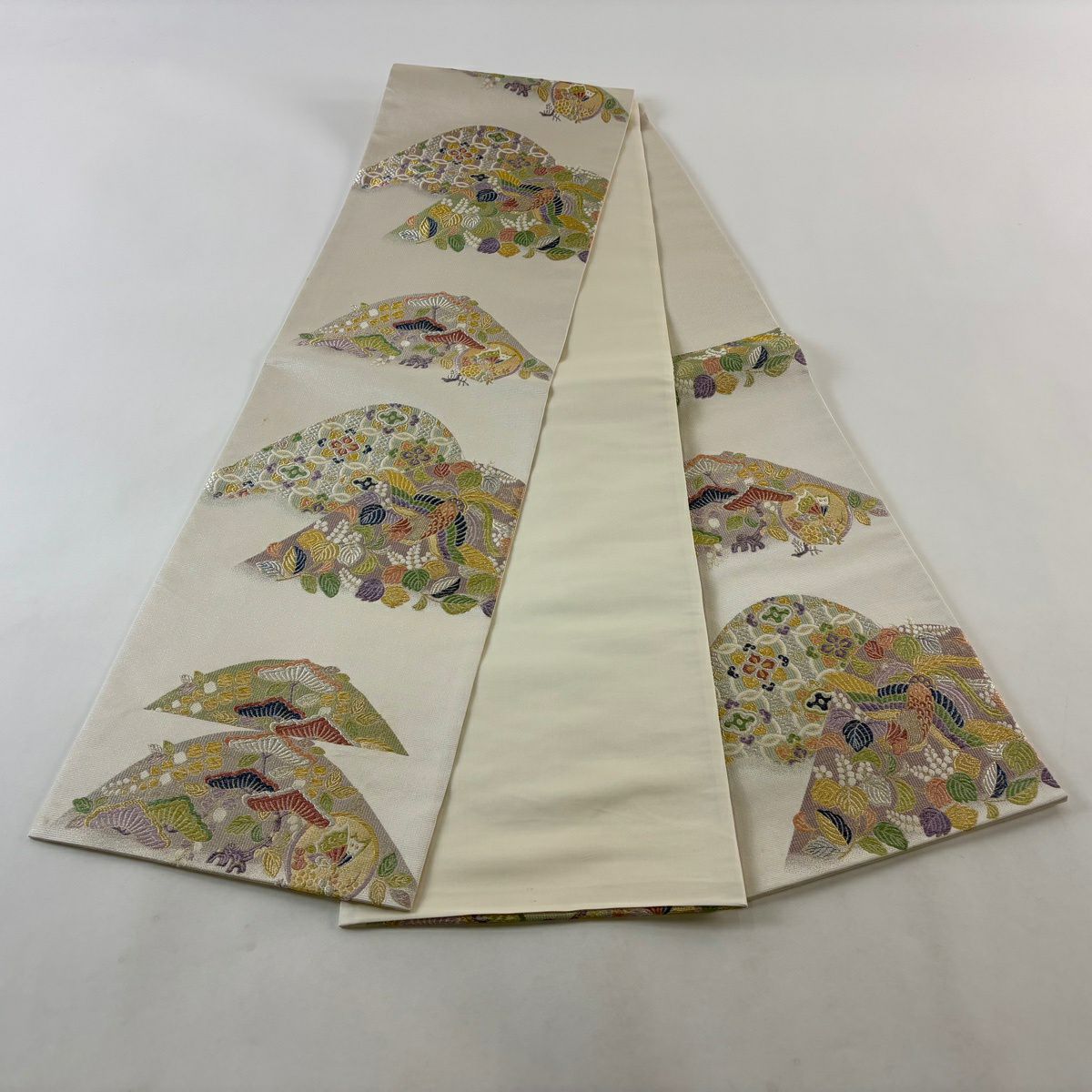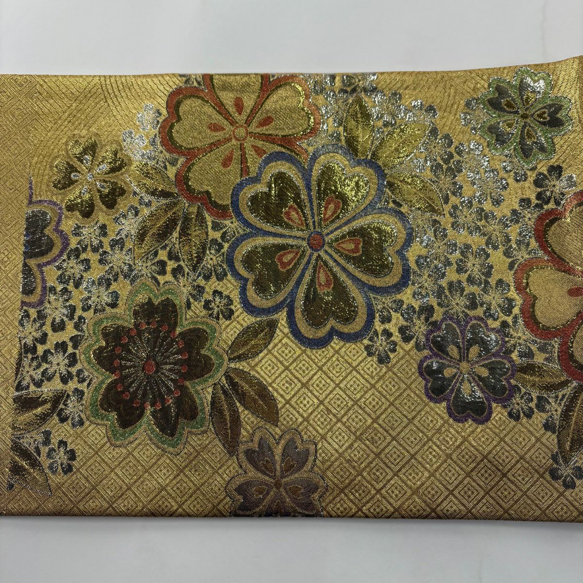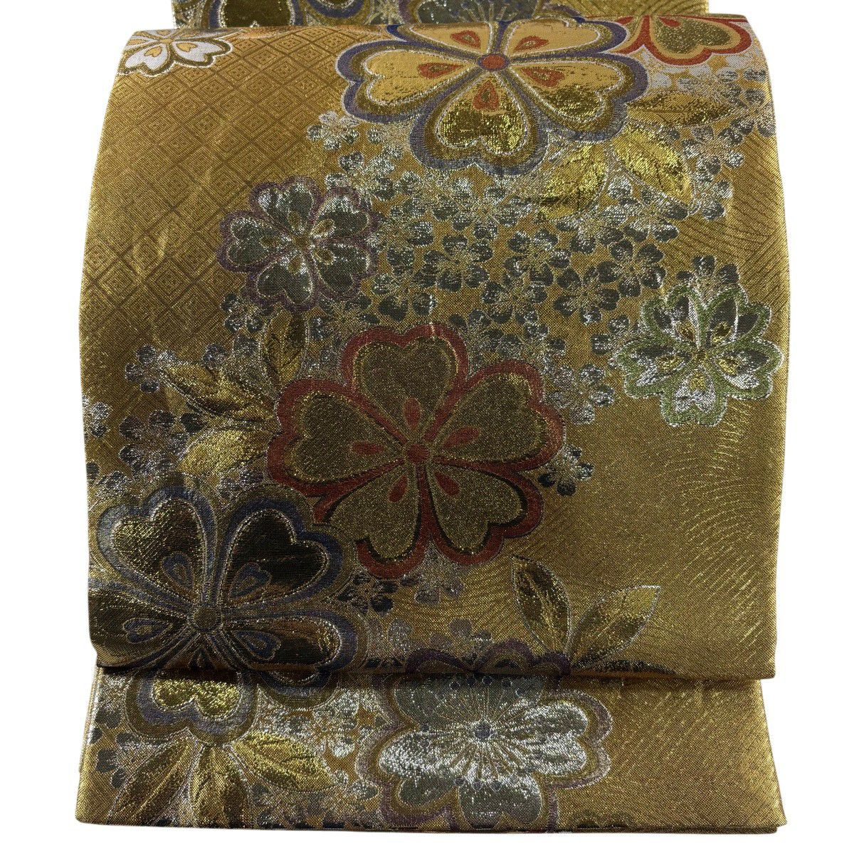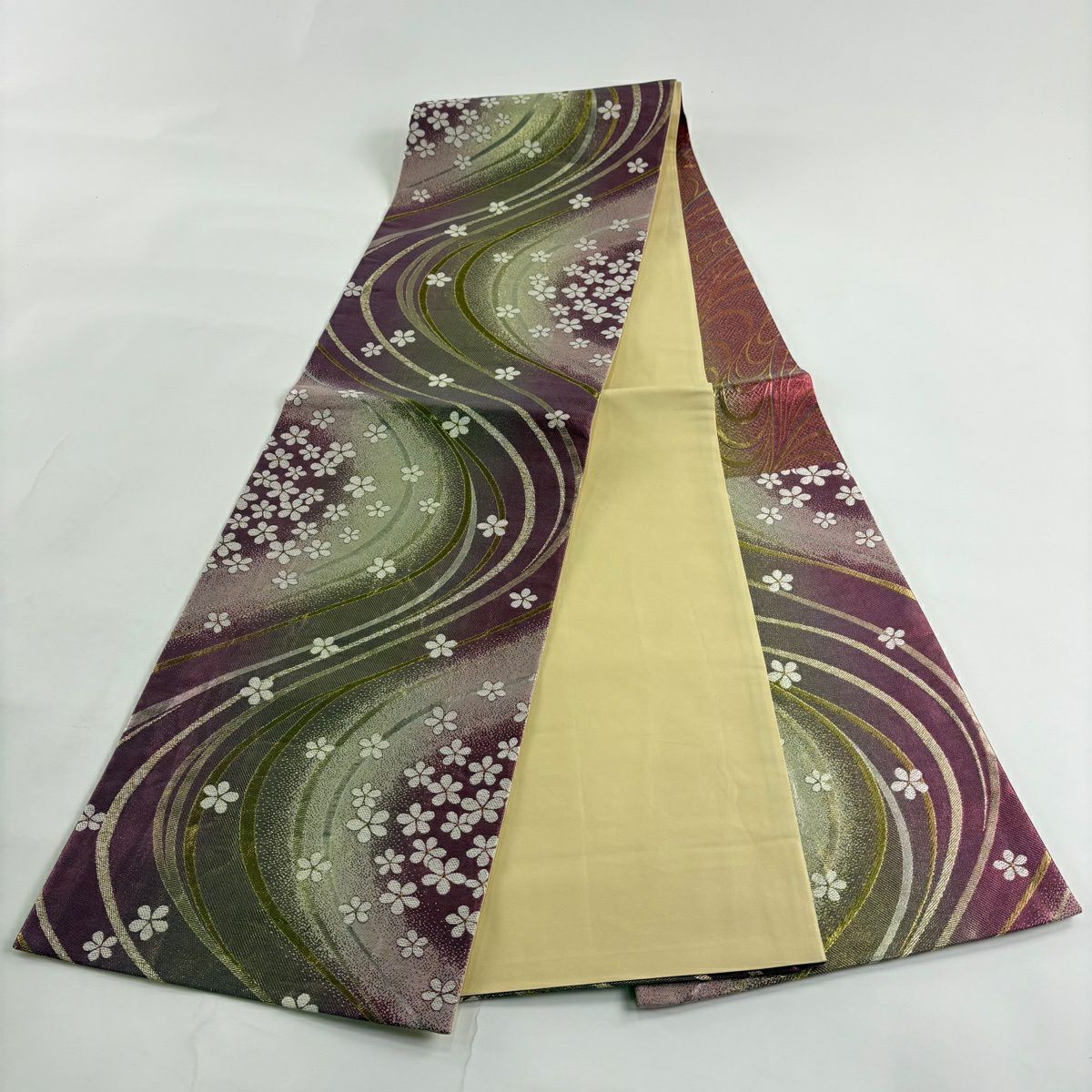 袋帯 秀品 桜 梅 金糸 箔 銀色 六通 正絹
