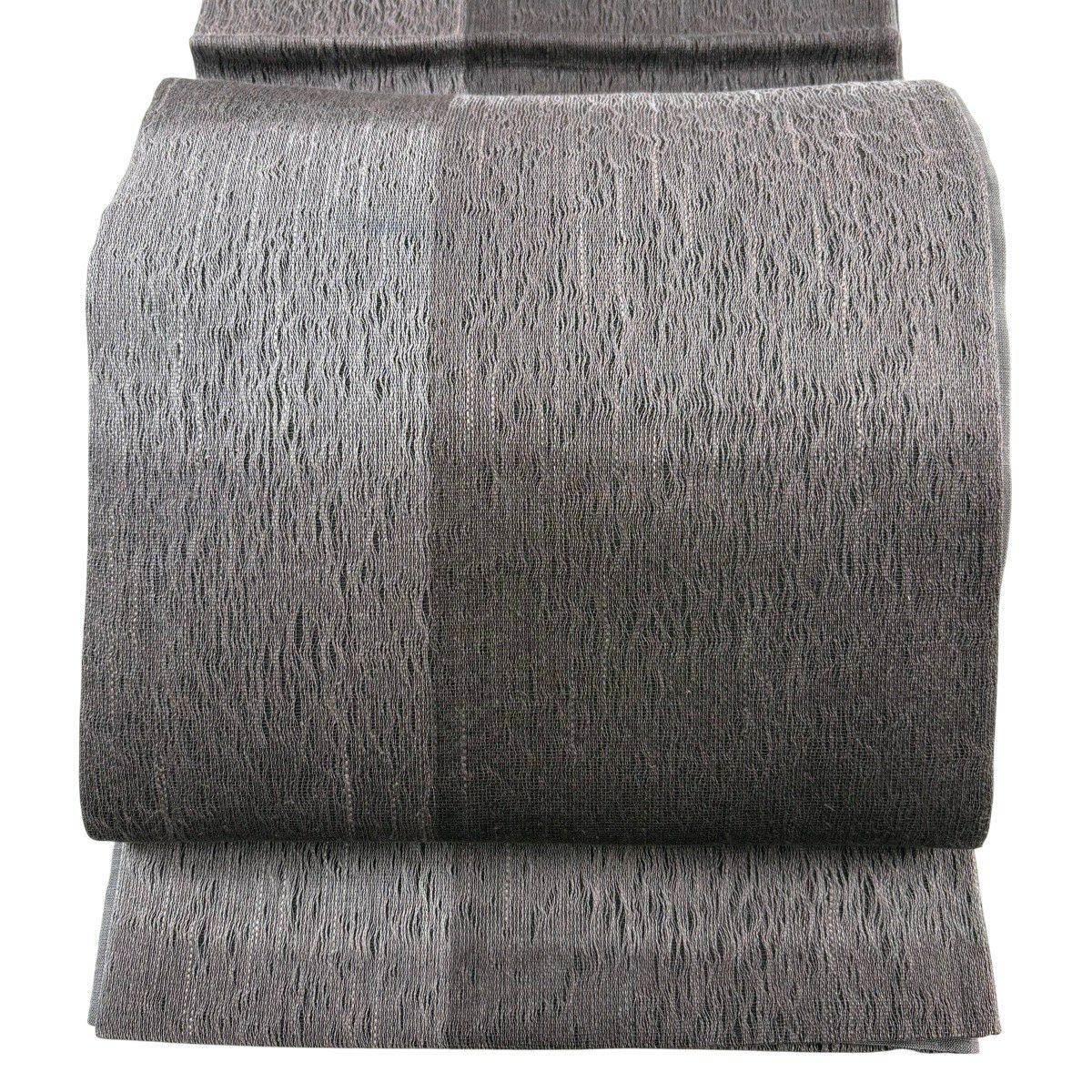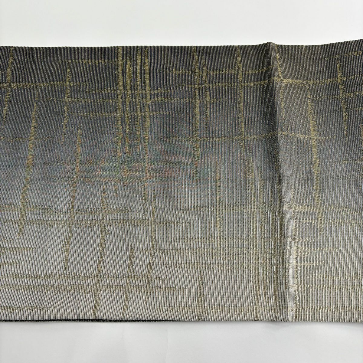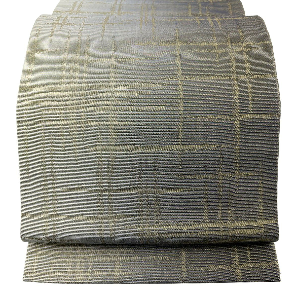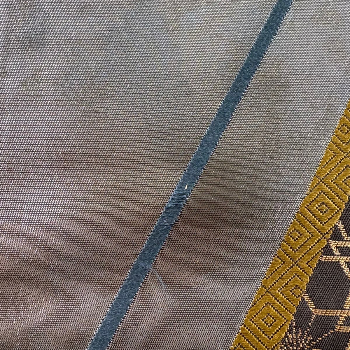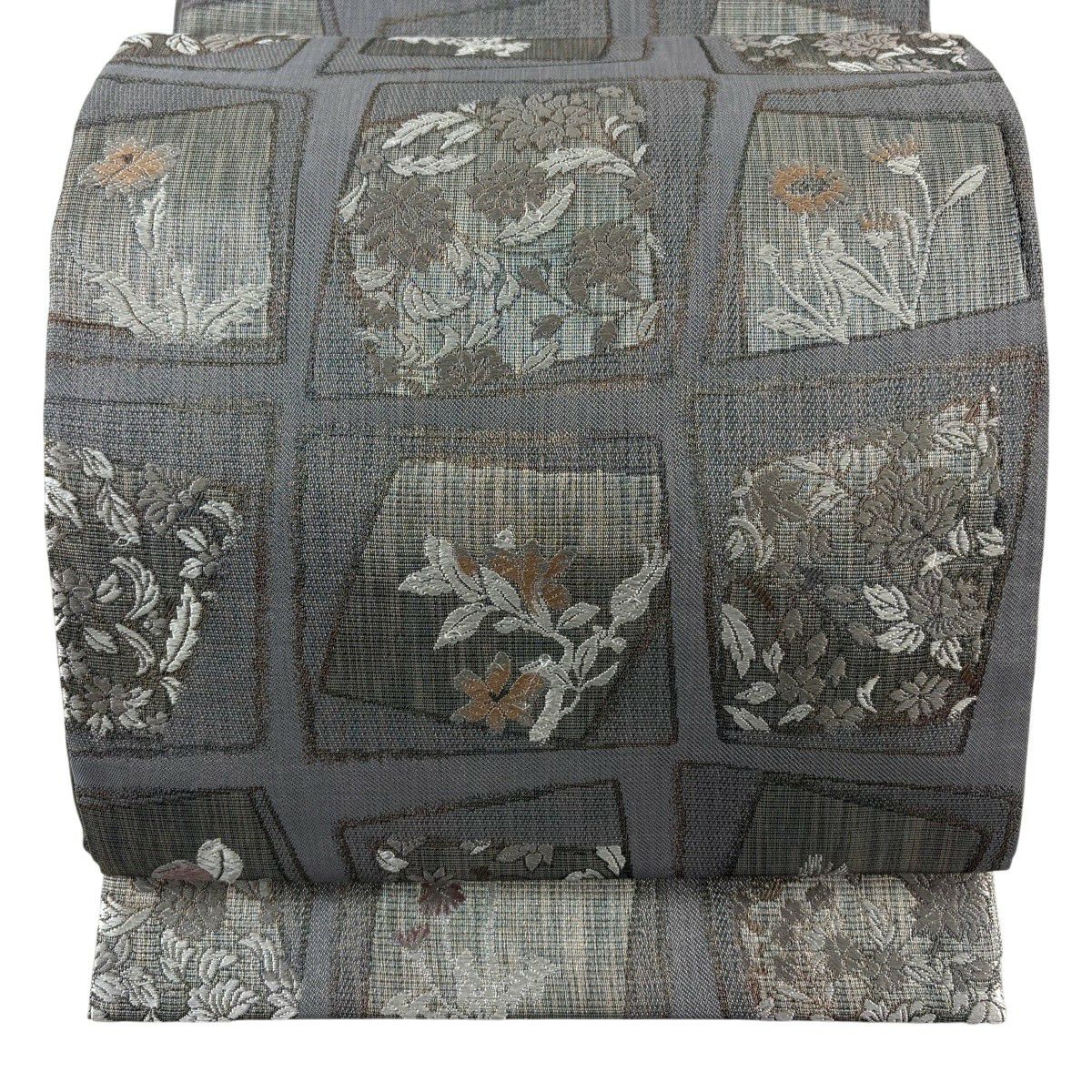 袋帯 秀品 変わり格子 金糸 灰色 六通 正絹