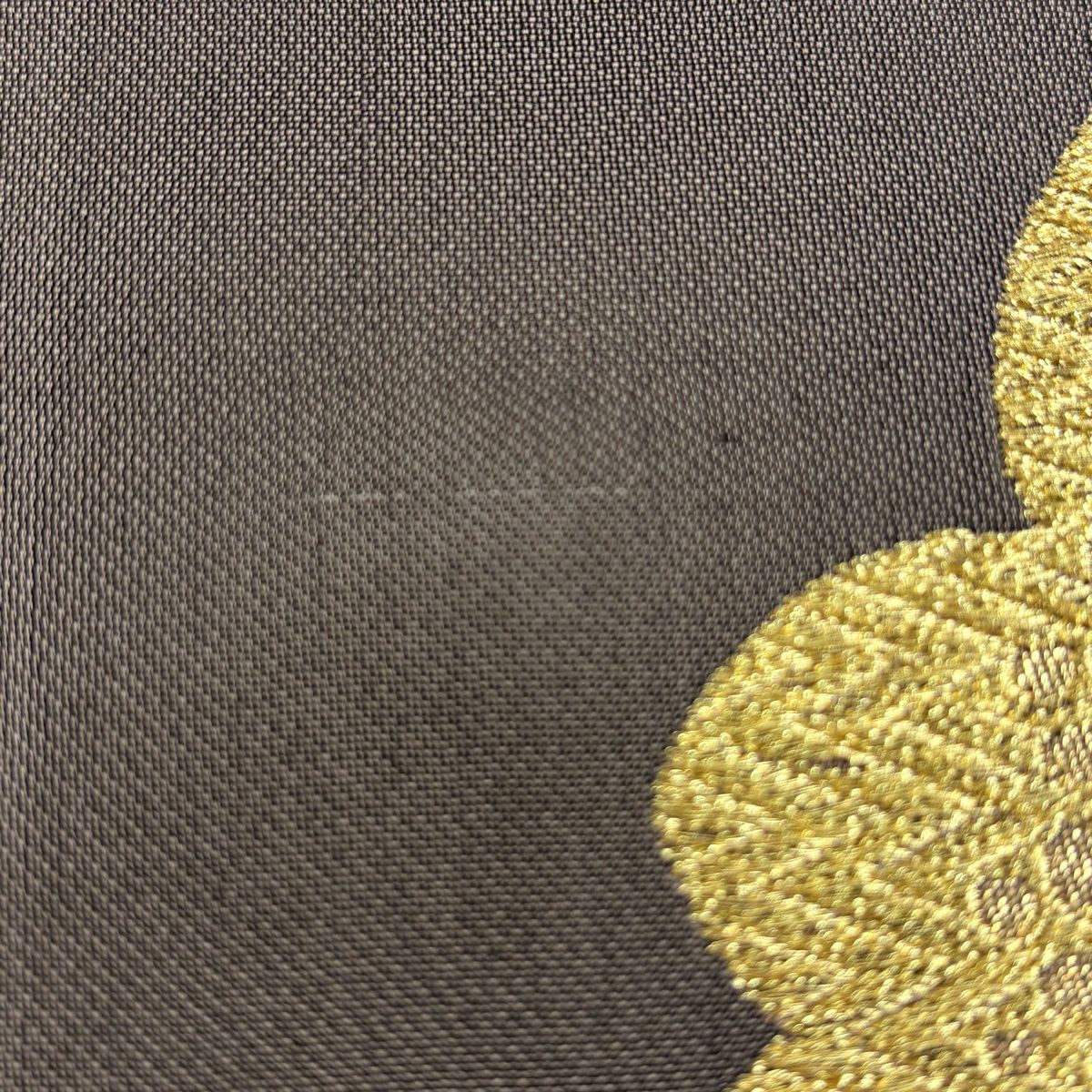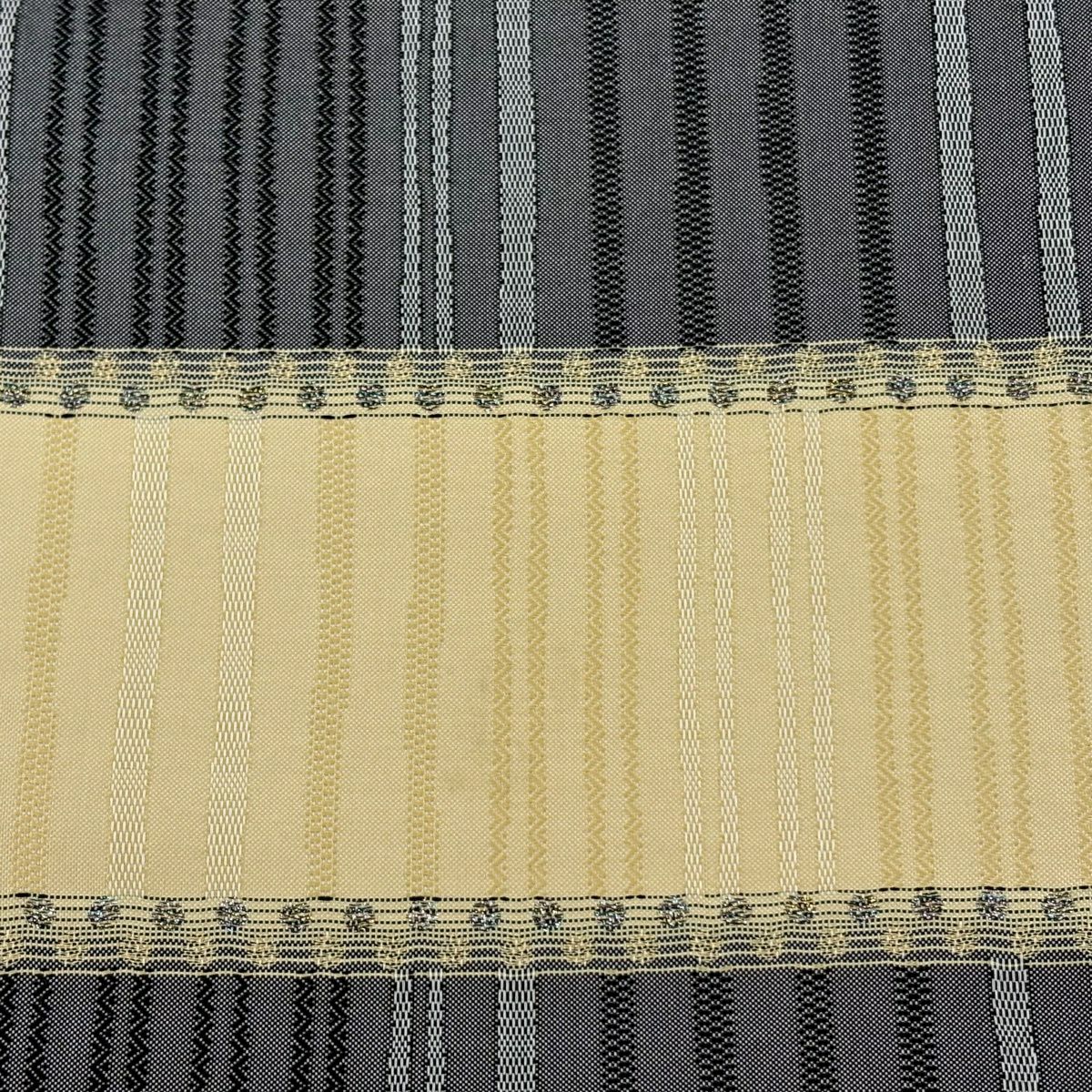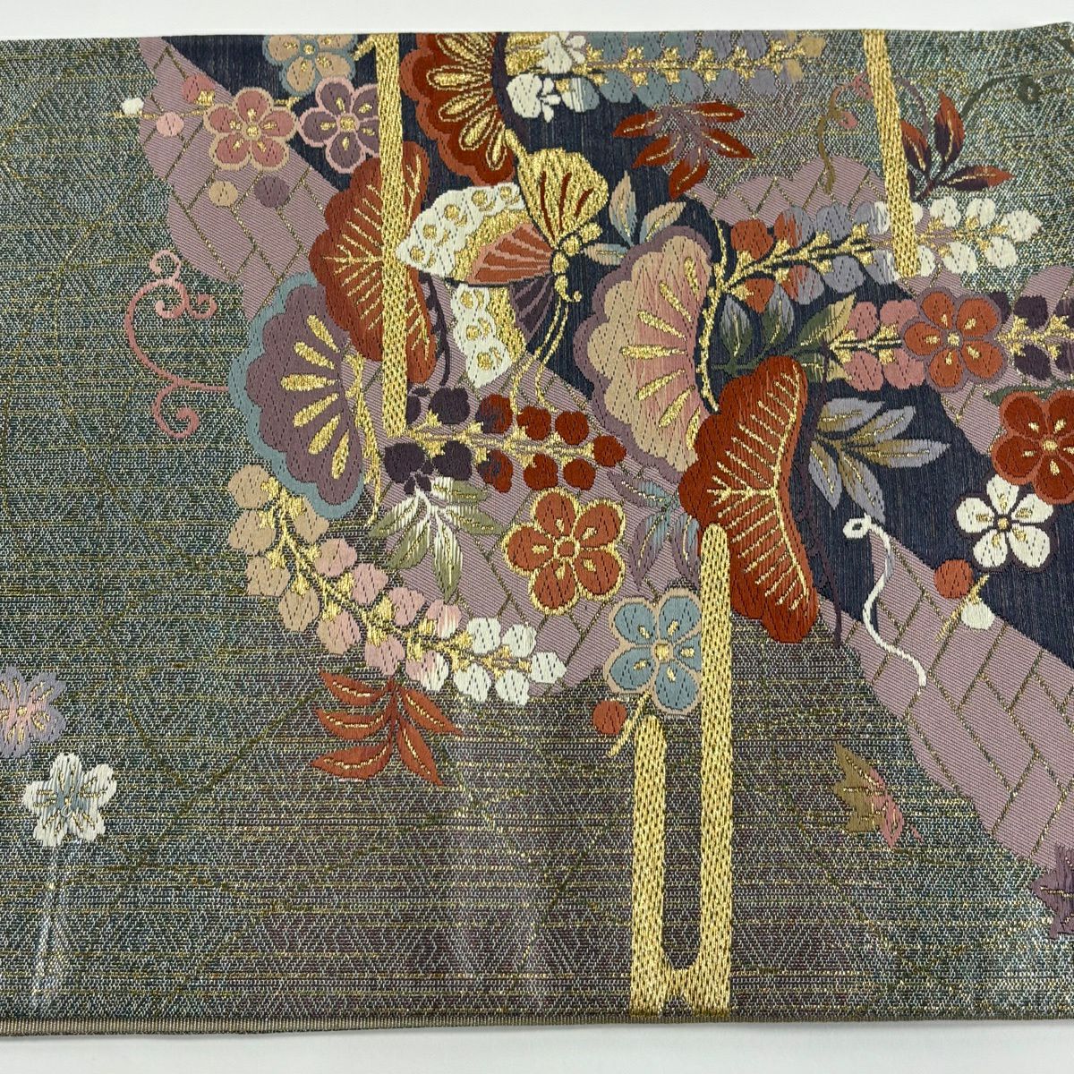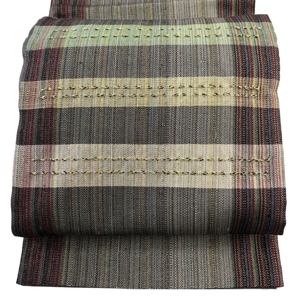 袋帯 秀品 変わり格子 金糸 灰色 六通 正絹