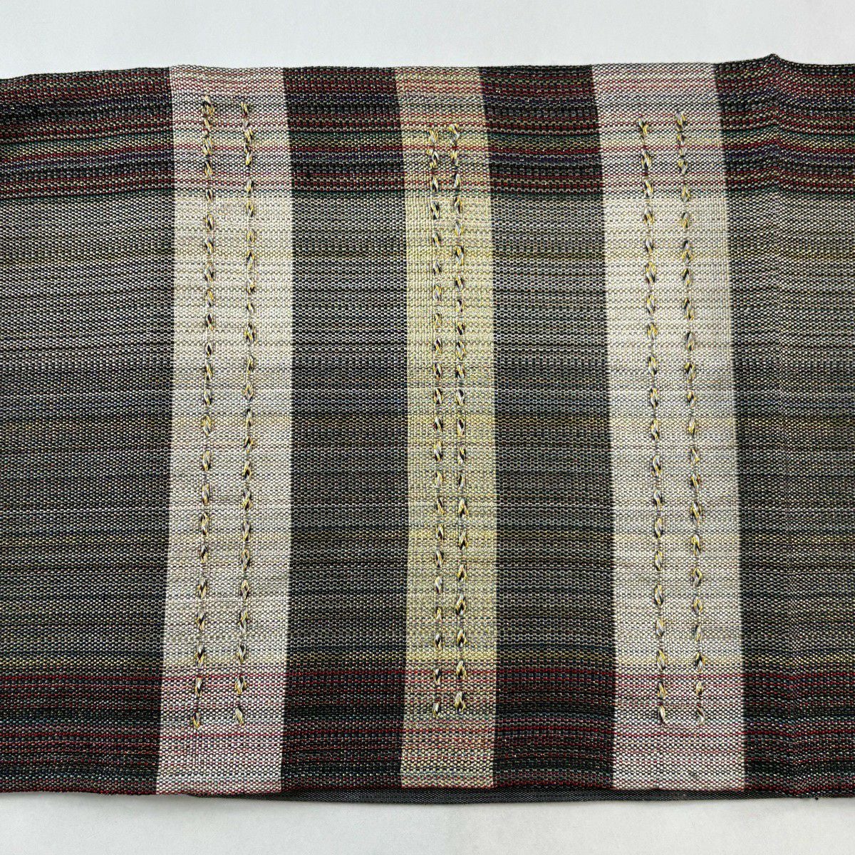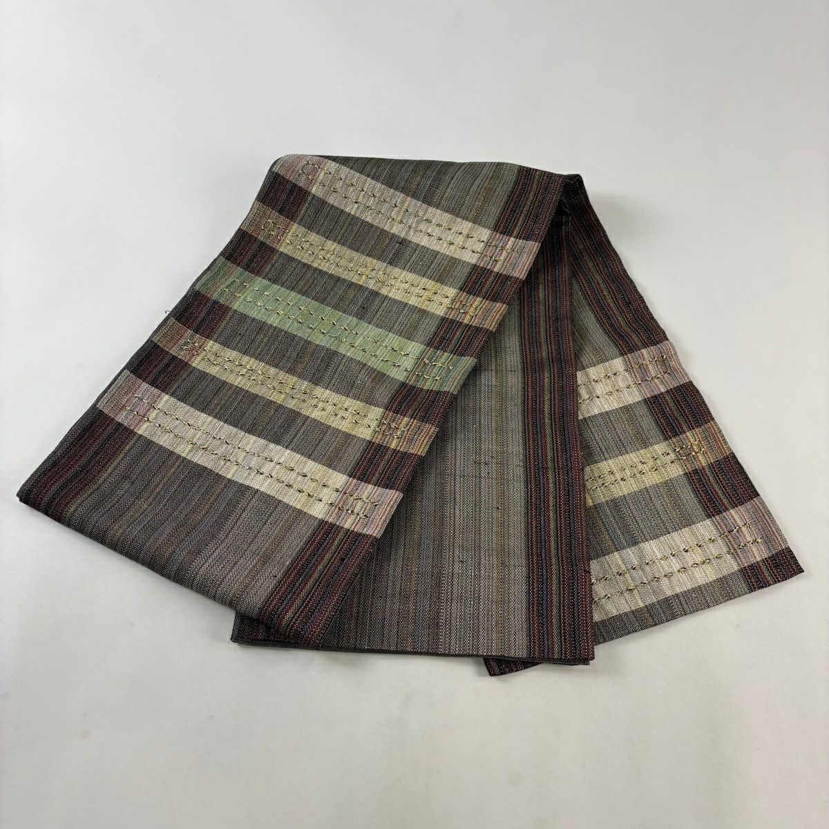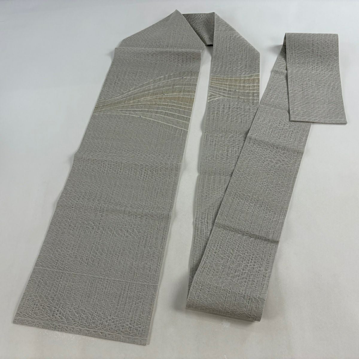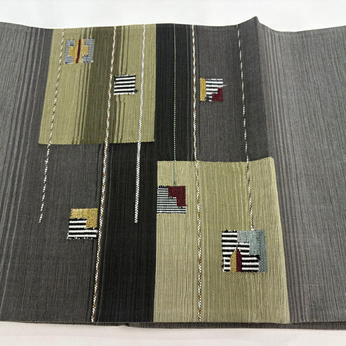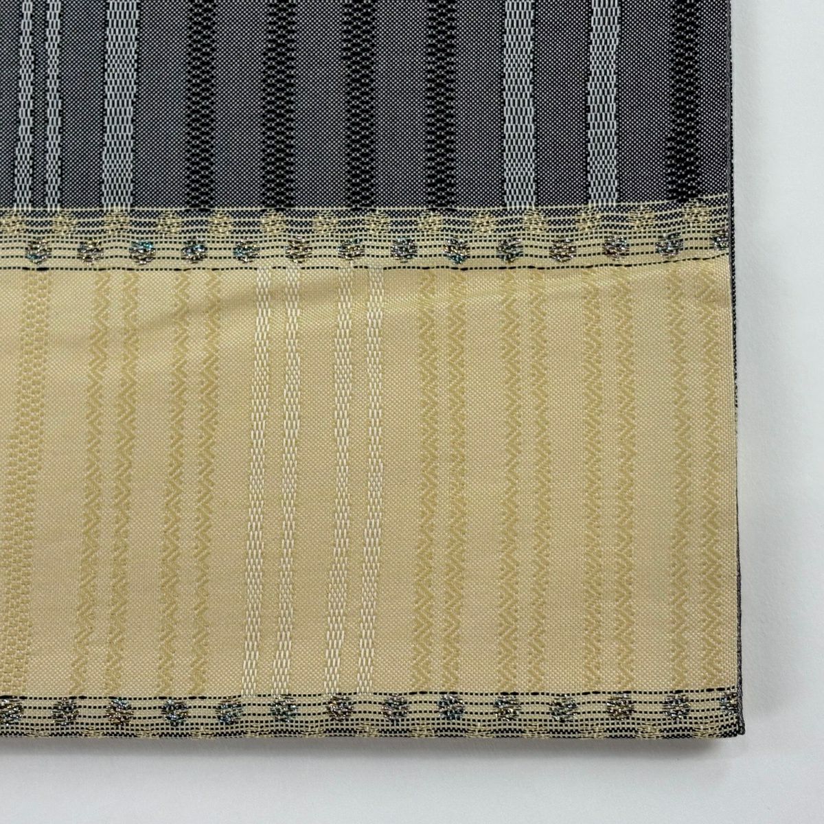 袋帯 秀品 変わり格子 金糸 灰色 六通 正絹