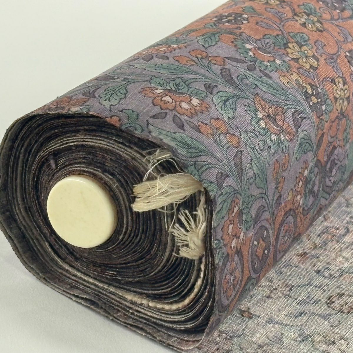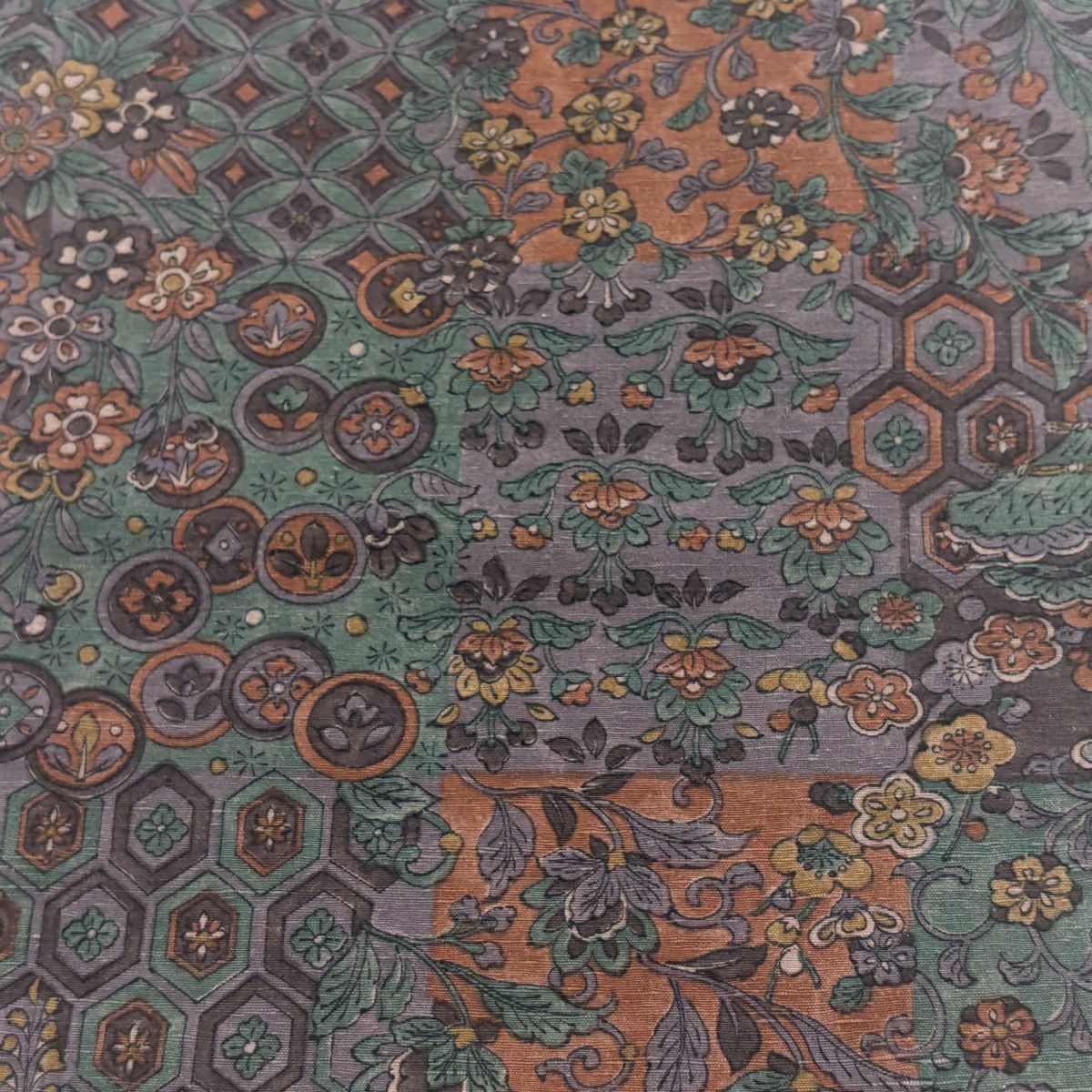 反物 秀品 小紋 紬地 草花 亀甲 茶紫 正絹