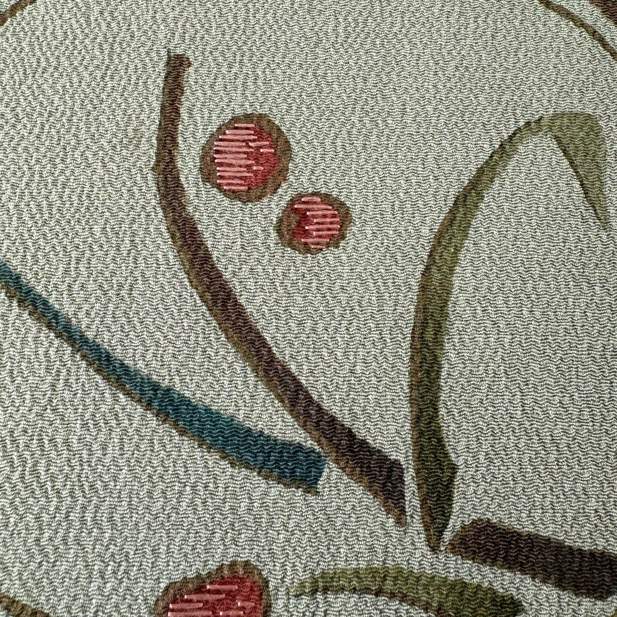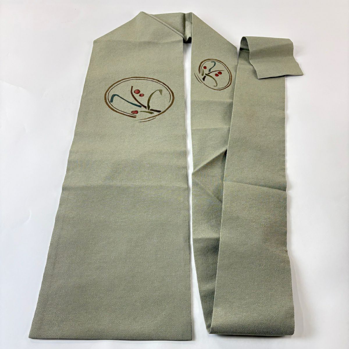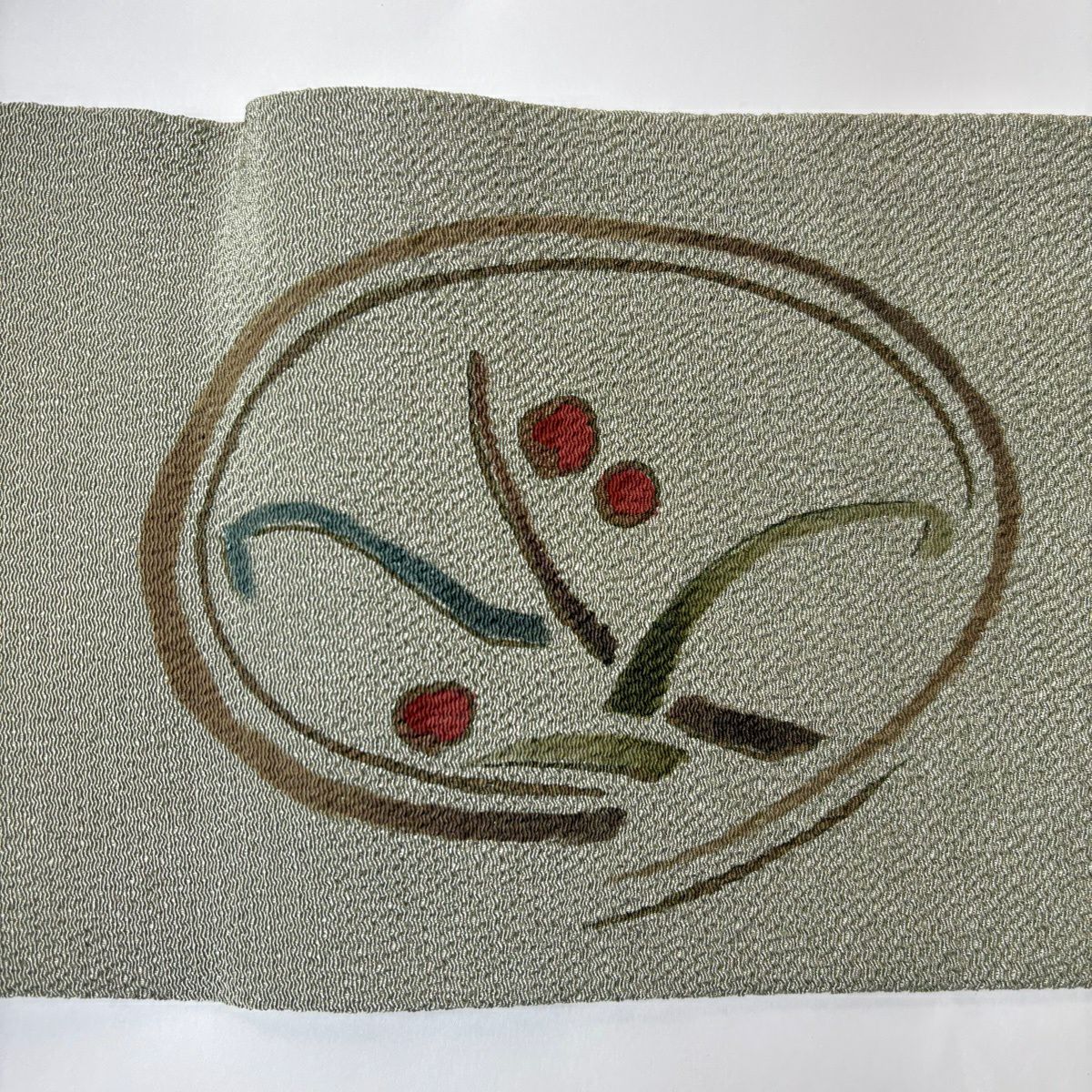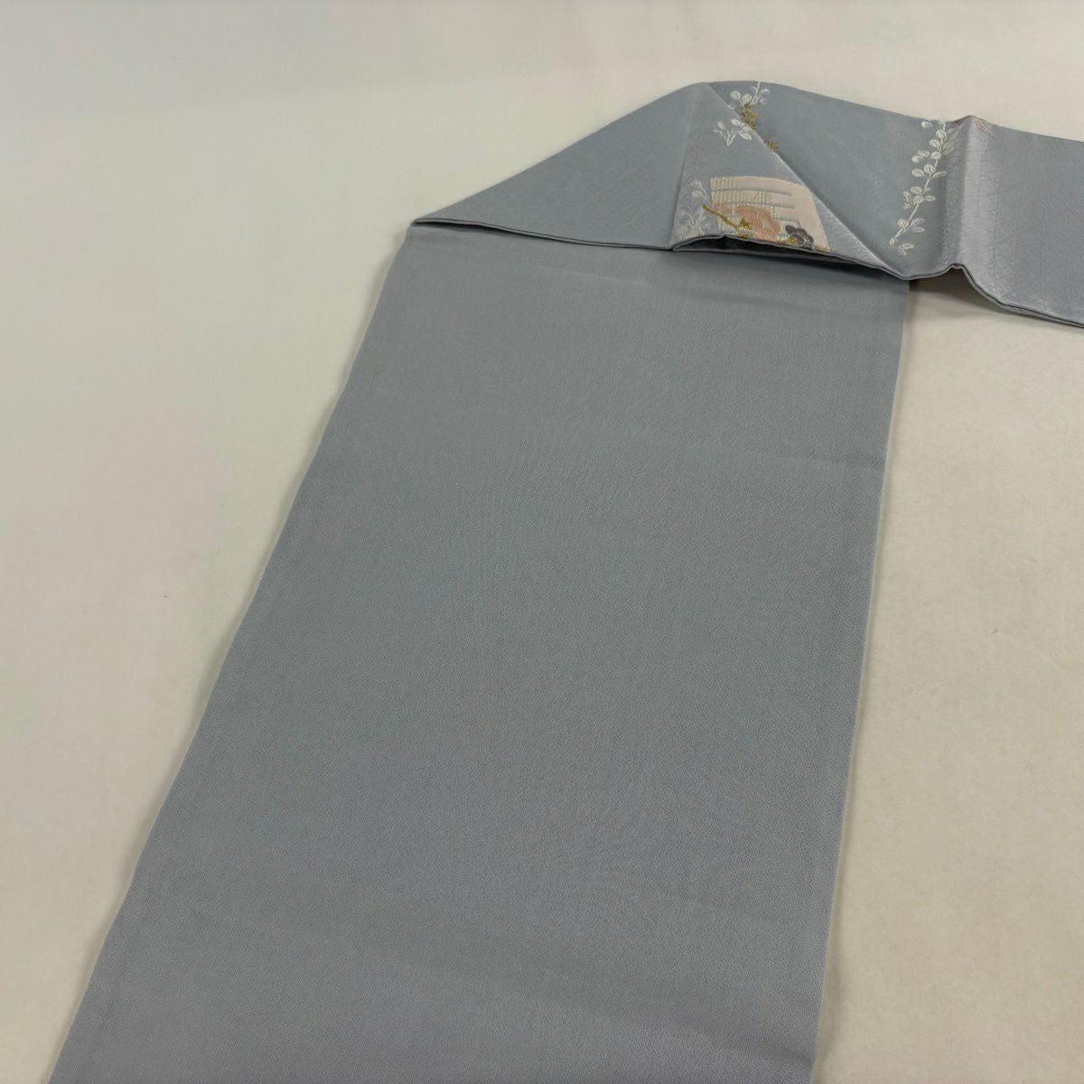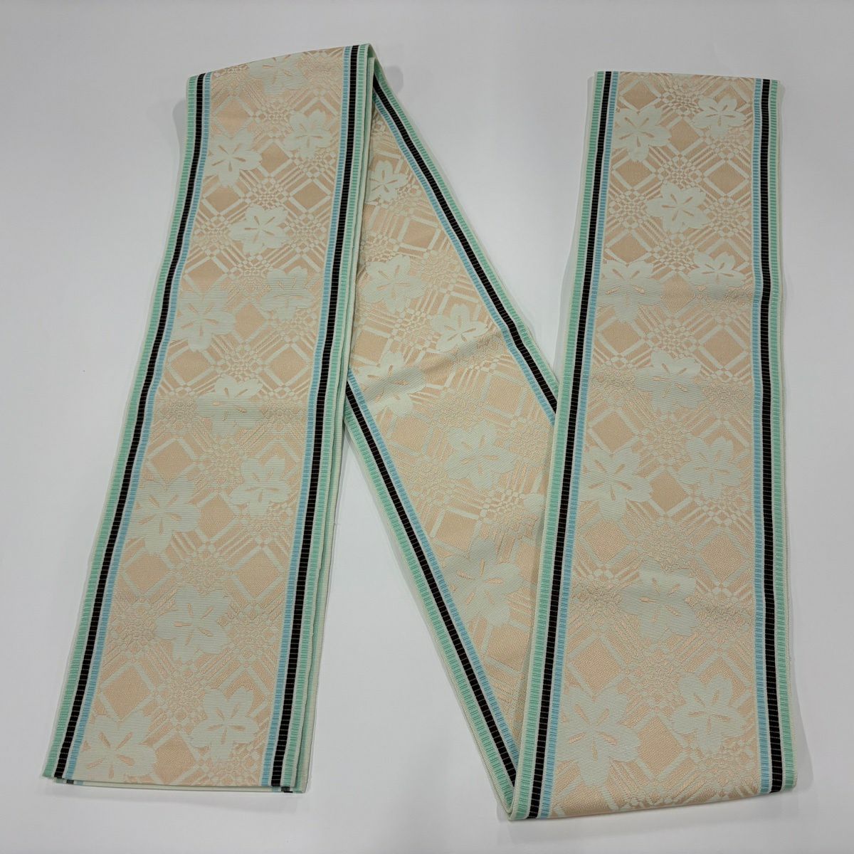 【美品】半幅帯 秀品 桜 斜め格子 灰緑 正絹