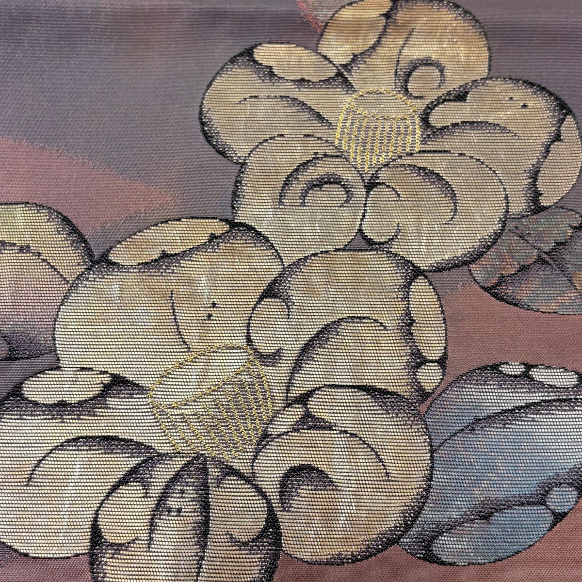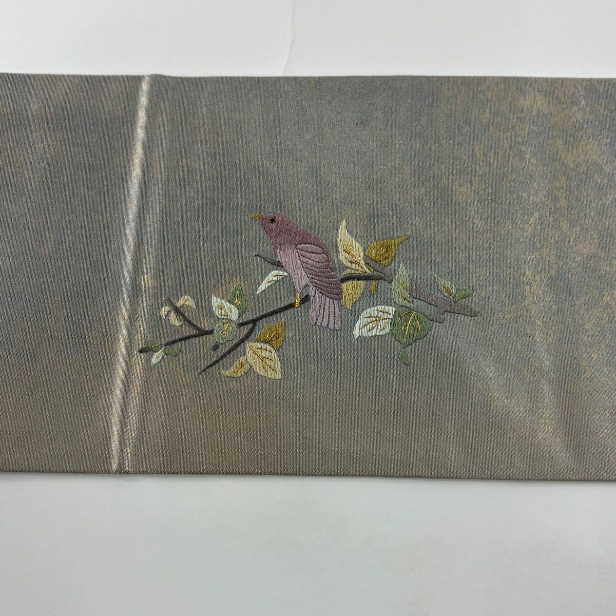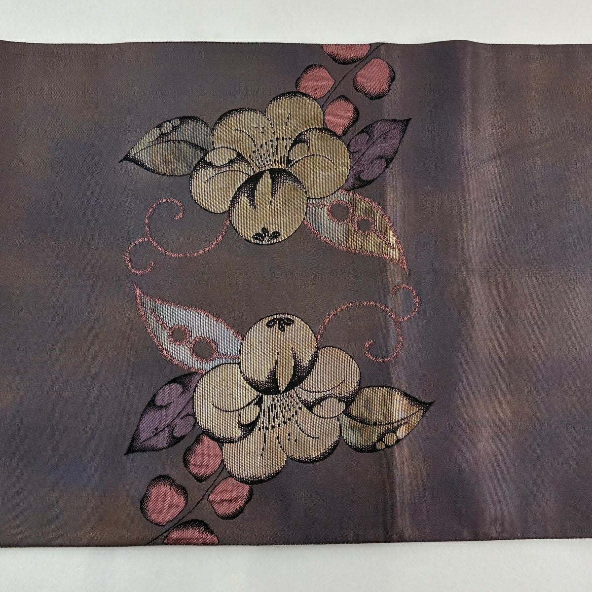 袋帯 秀品 椿 金糸 箔 灰紫 お太鼓柄 正絹