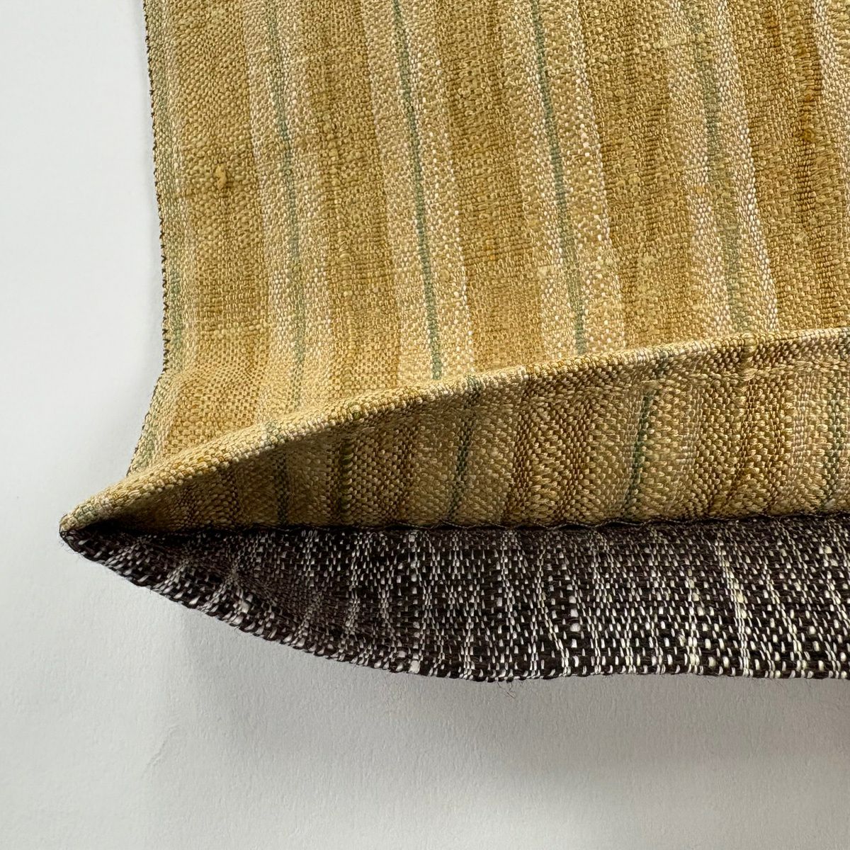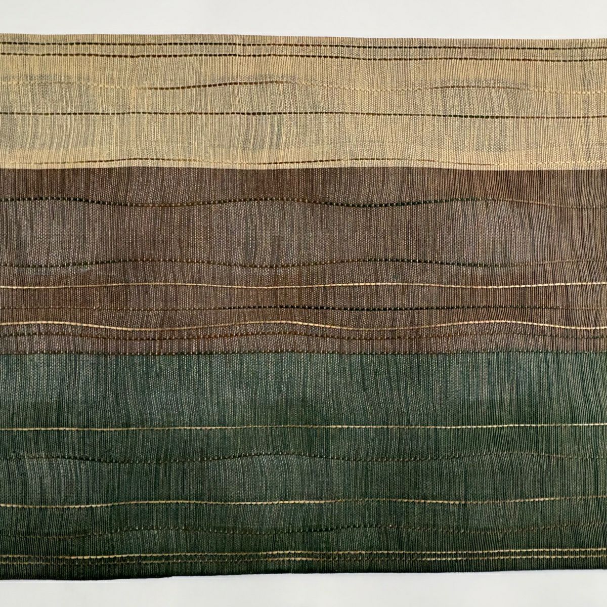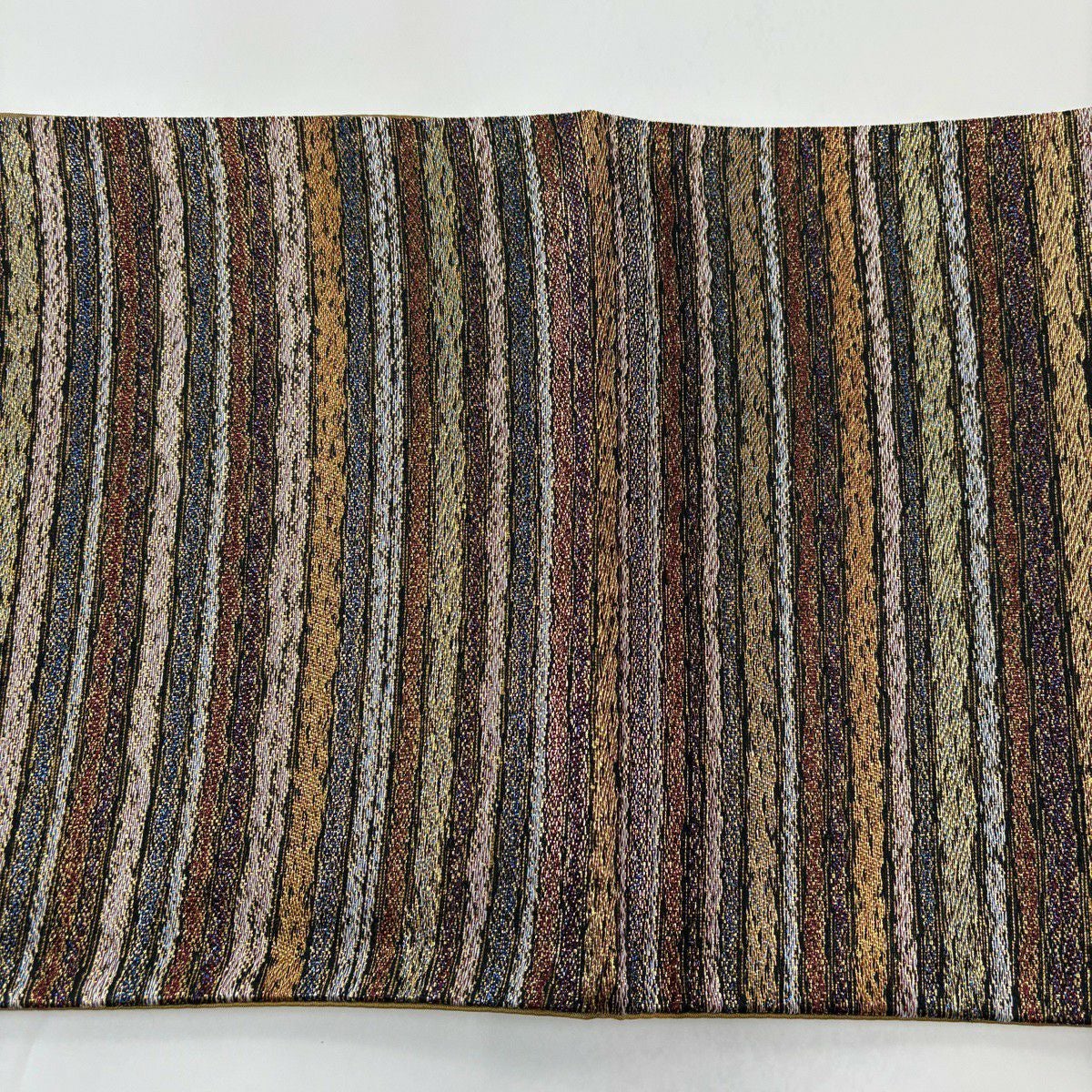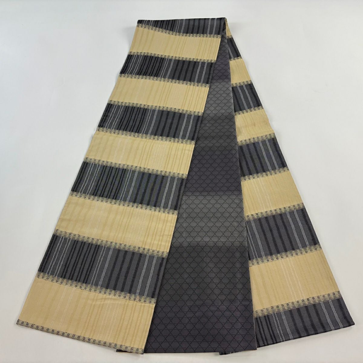 【美品】 袋帯 秀品 縞 薄黄土色 全通 正絹