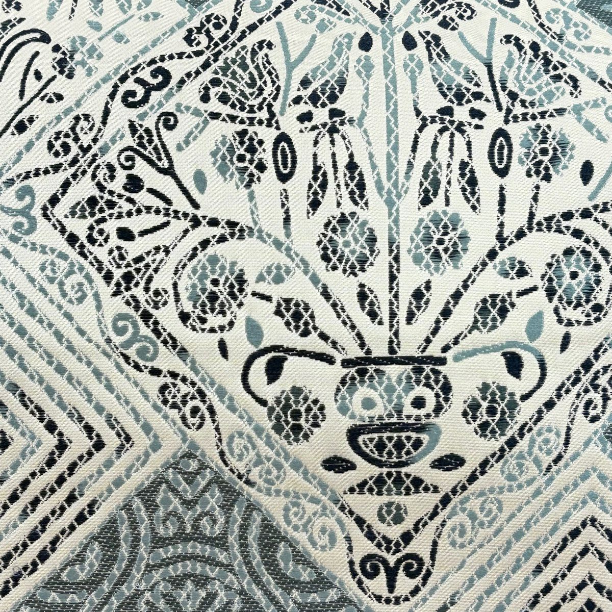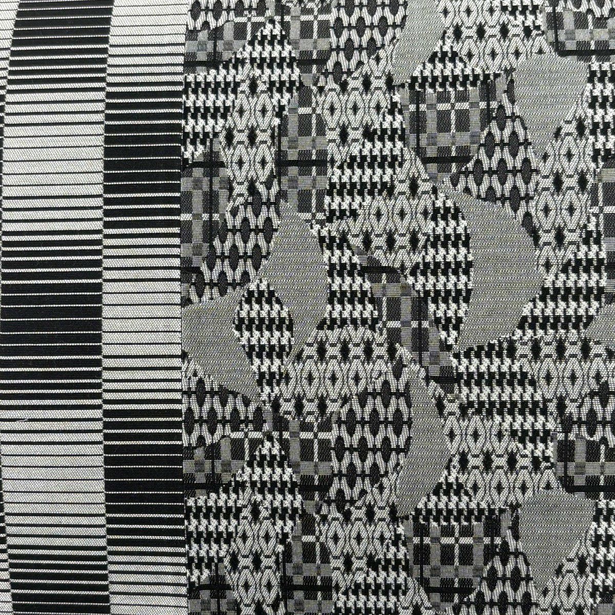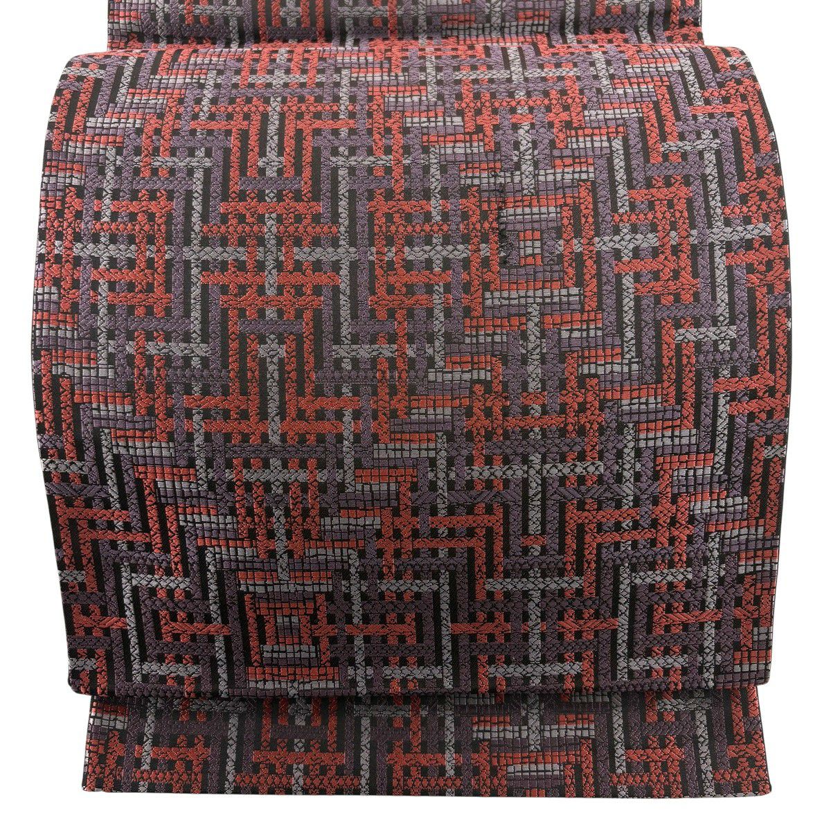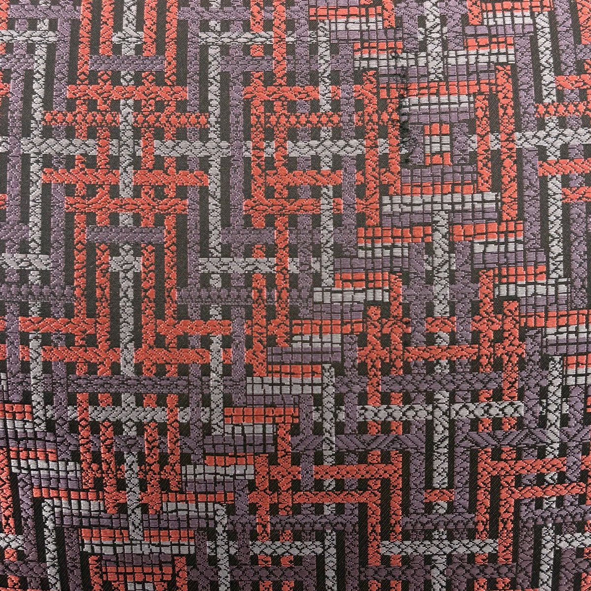 袋帯 秀品 華文 格子 唐織 黒灰 六通 正絹