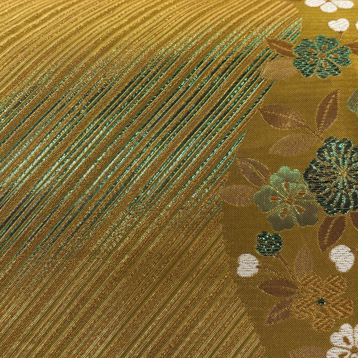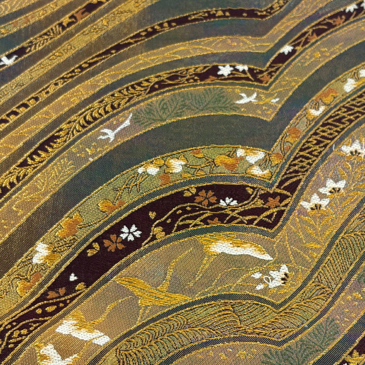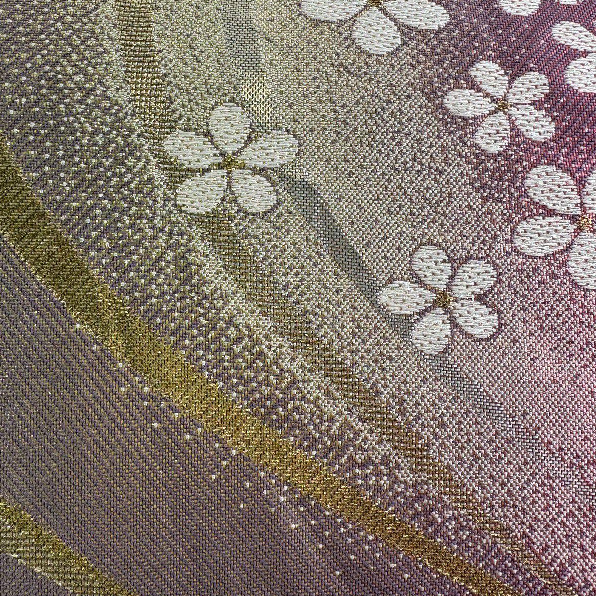 袋帯 秀品 桜 斜縞 金糸 箔 金色 六通 正絹