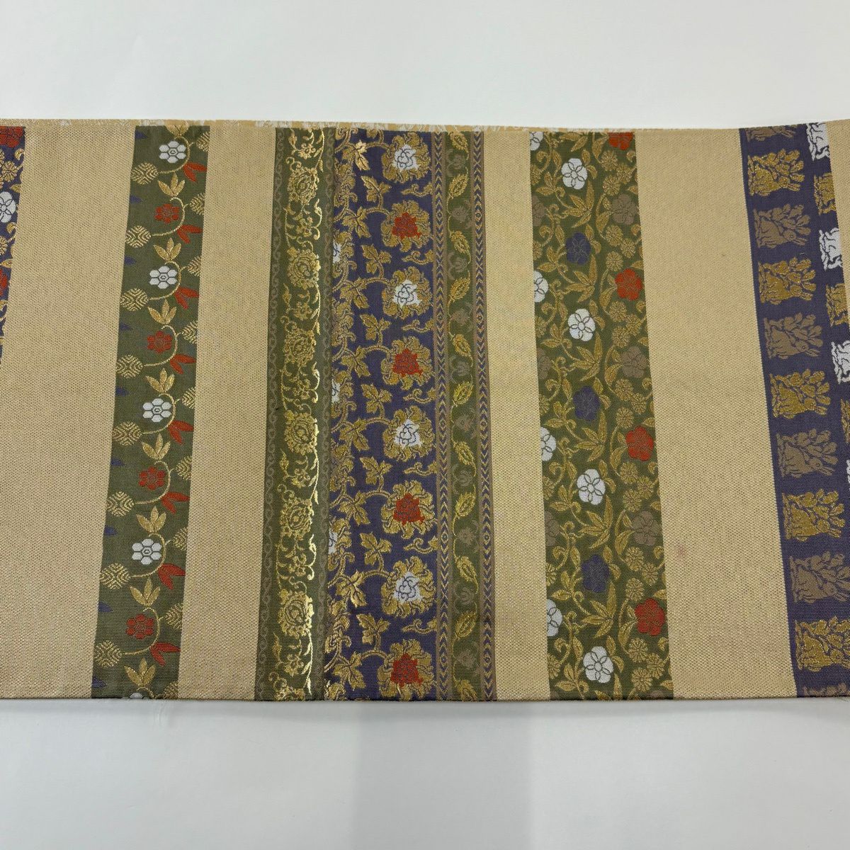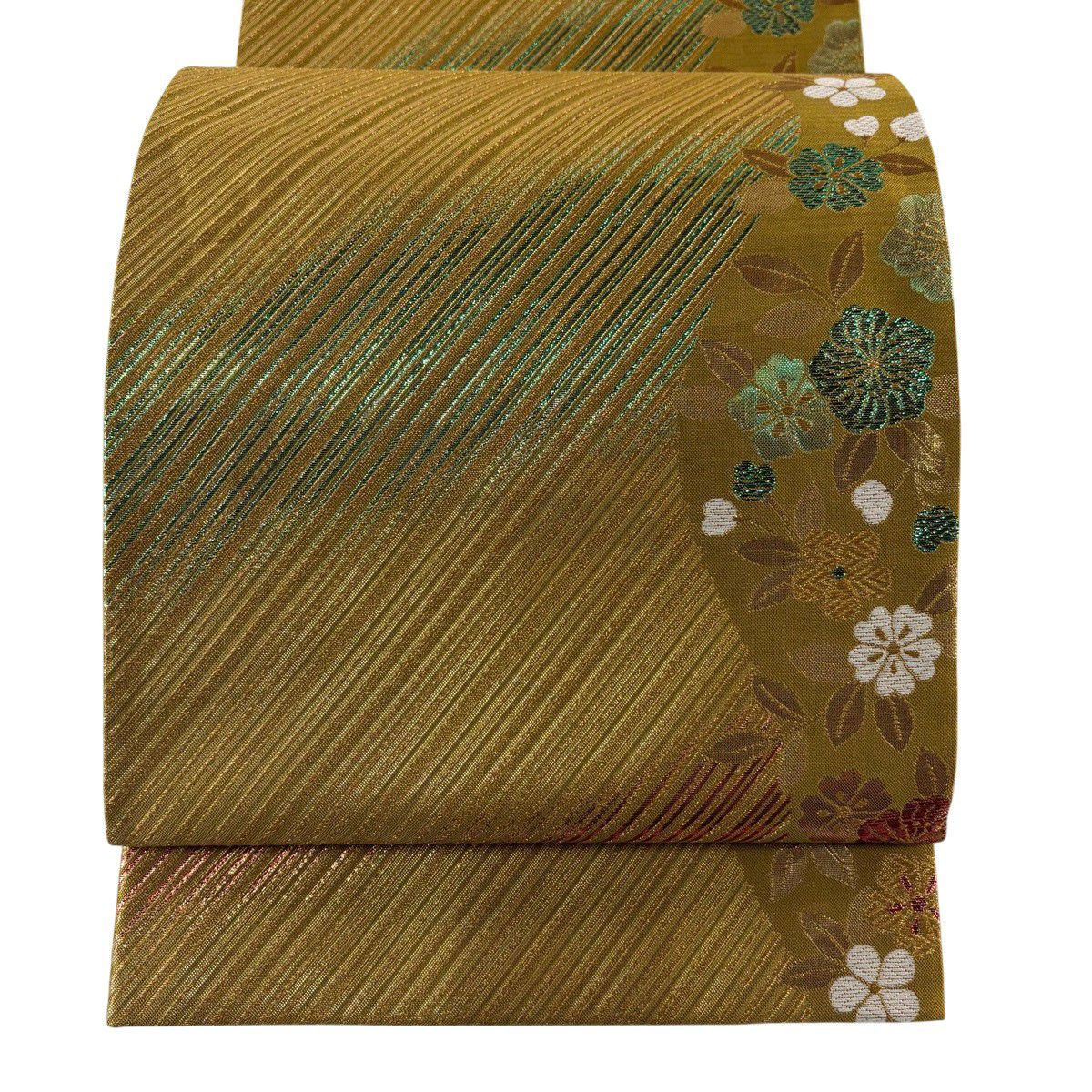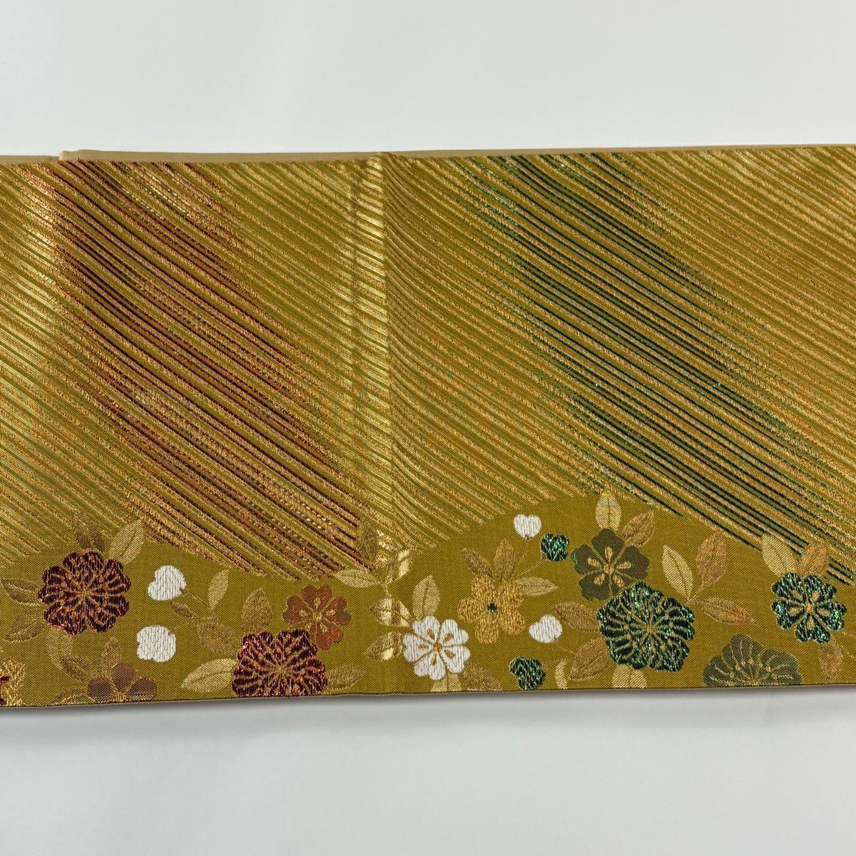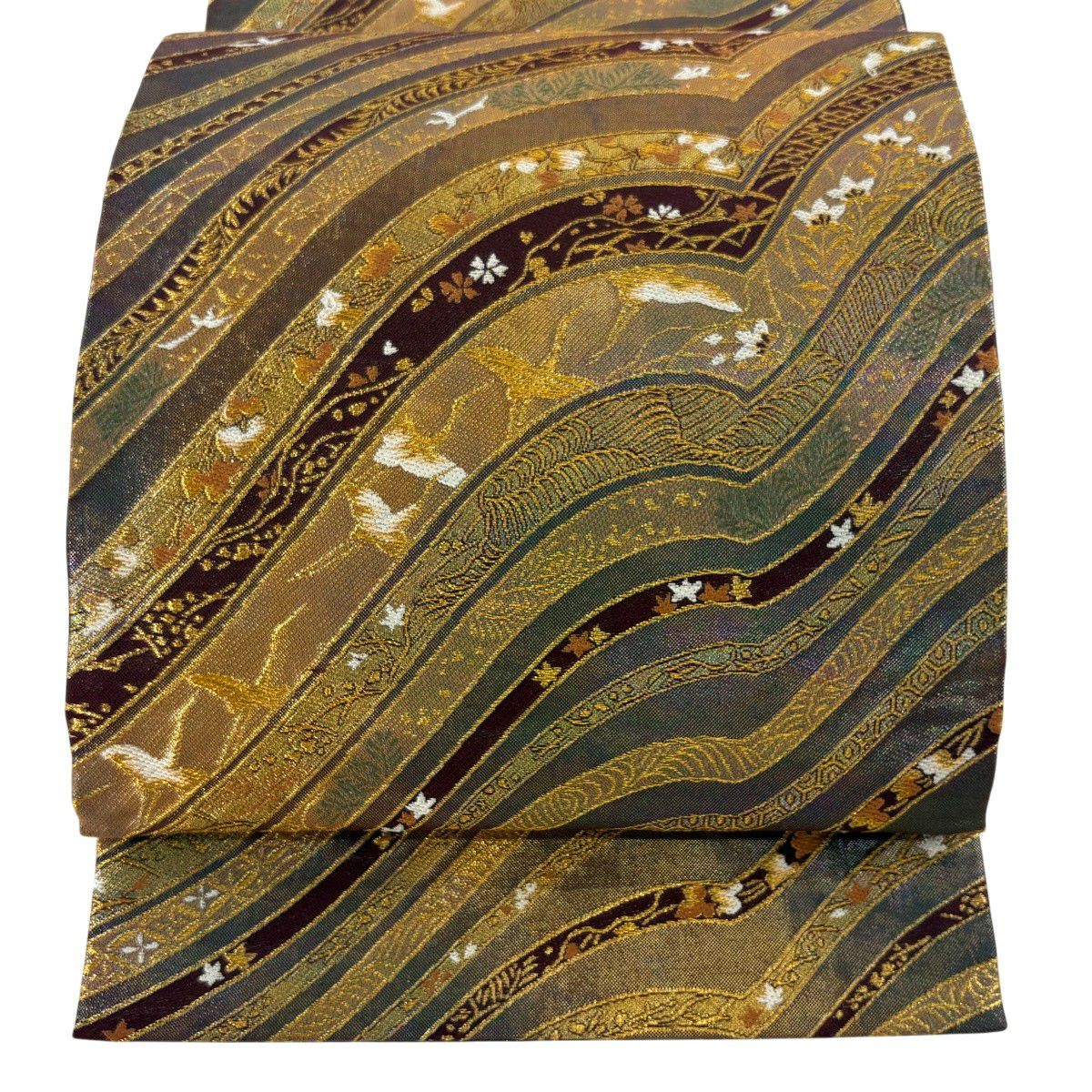 袋帯 秀品 桜 斜縞 金糸 箔 金色 六通 正絹