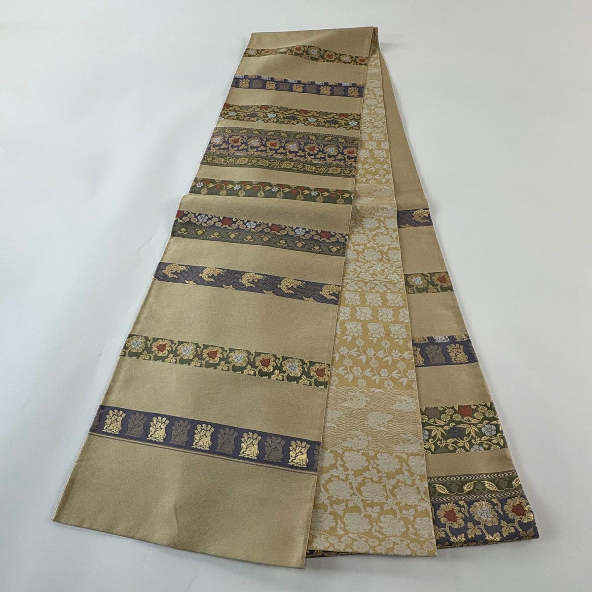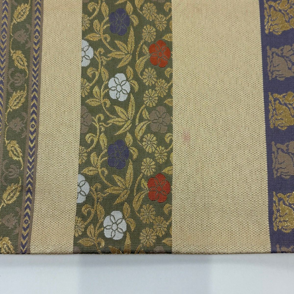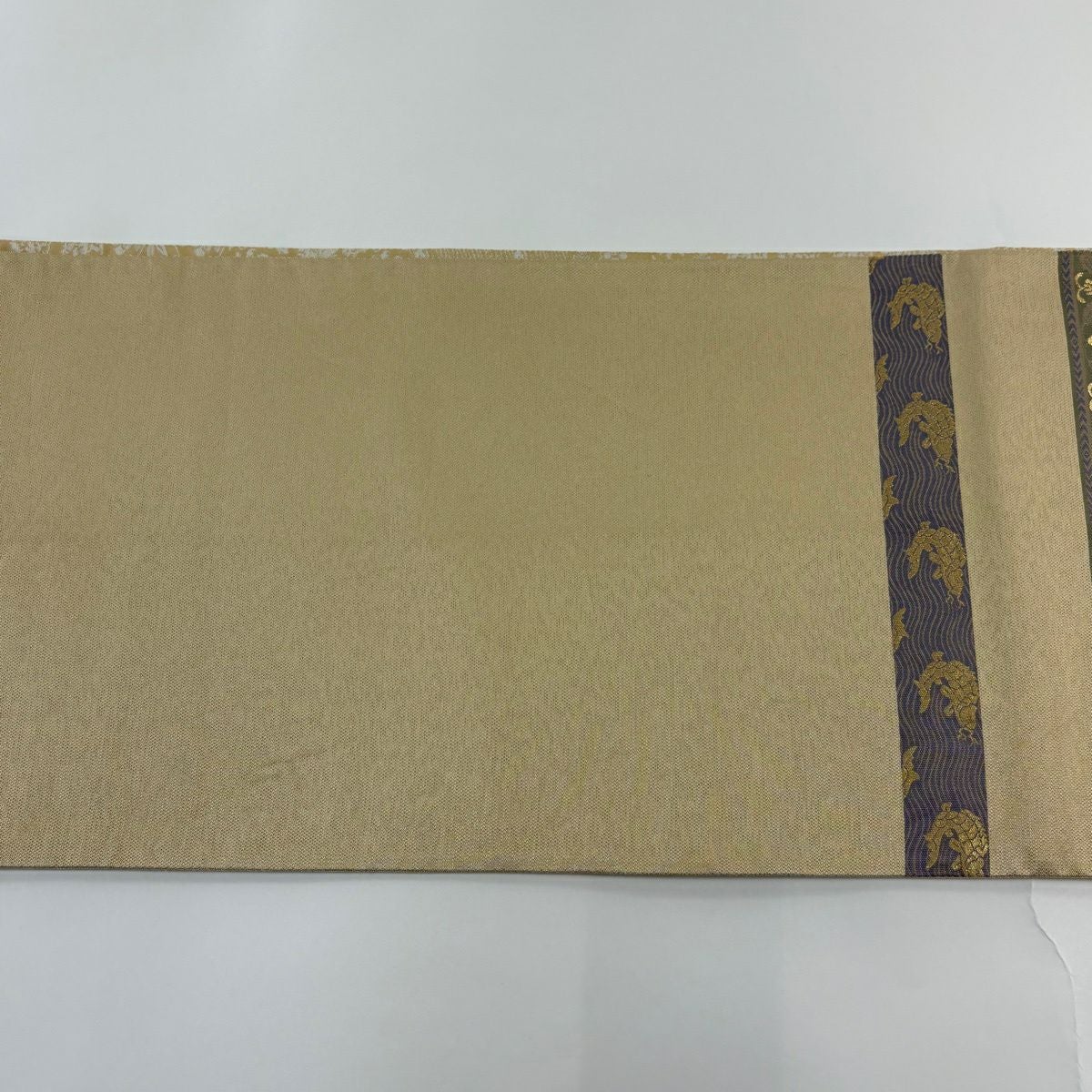 袋帯 秀品 草花 波 箔 金糸 金色 六通 正絹