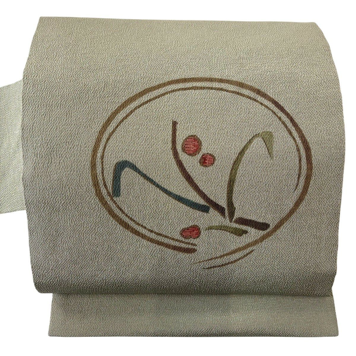 名古屋帯 秀品 瓢箪 刺繍 ベージュ 正絹