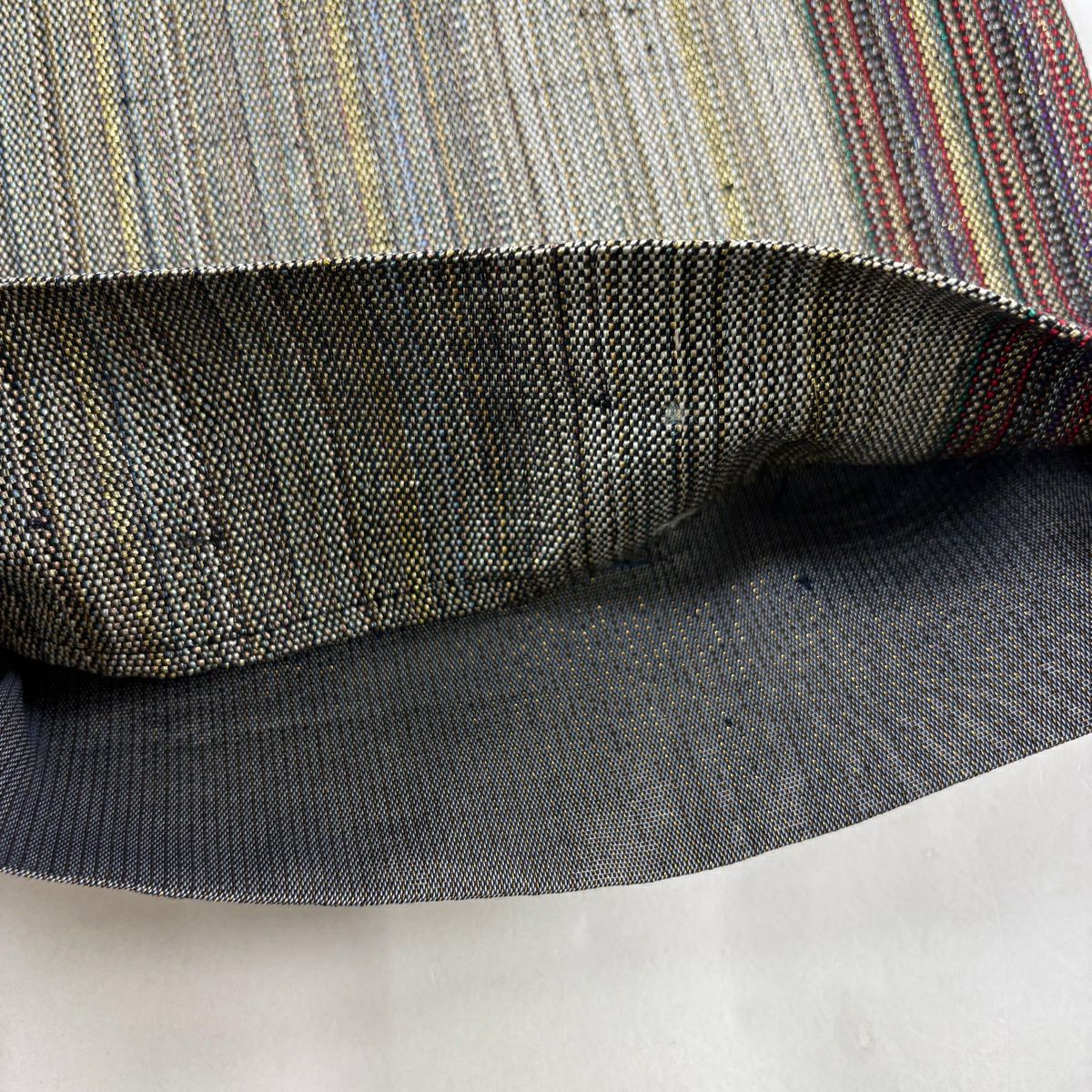 袋帯 秀品 紬地 斜縞 青灰色 お太鼓柄 正絹