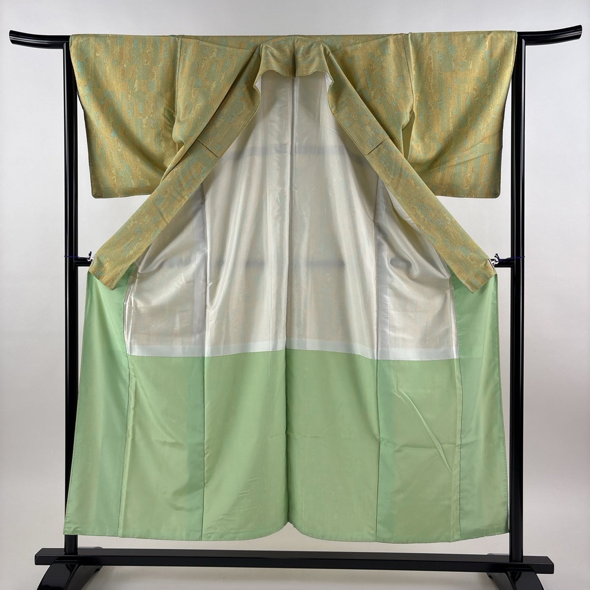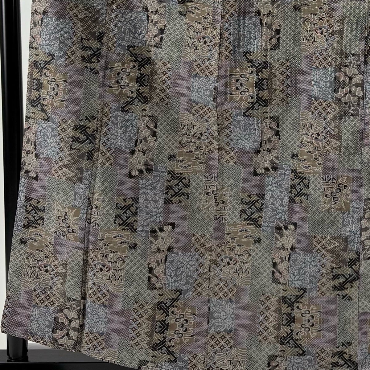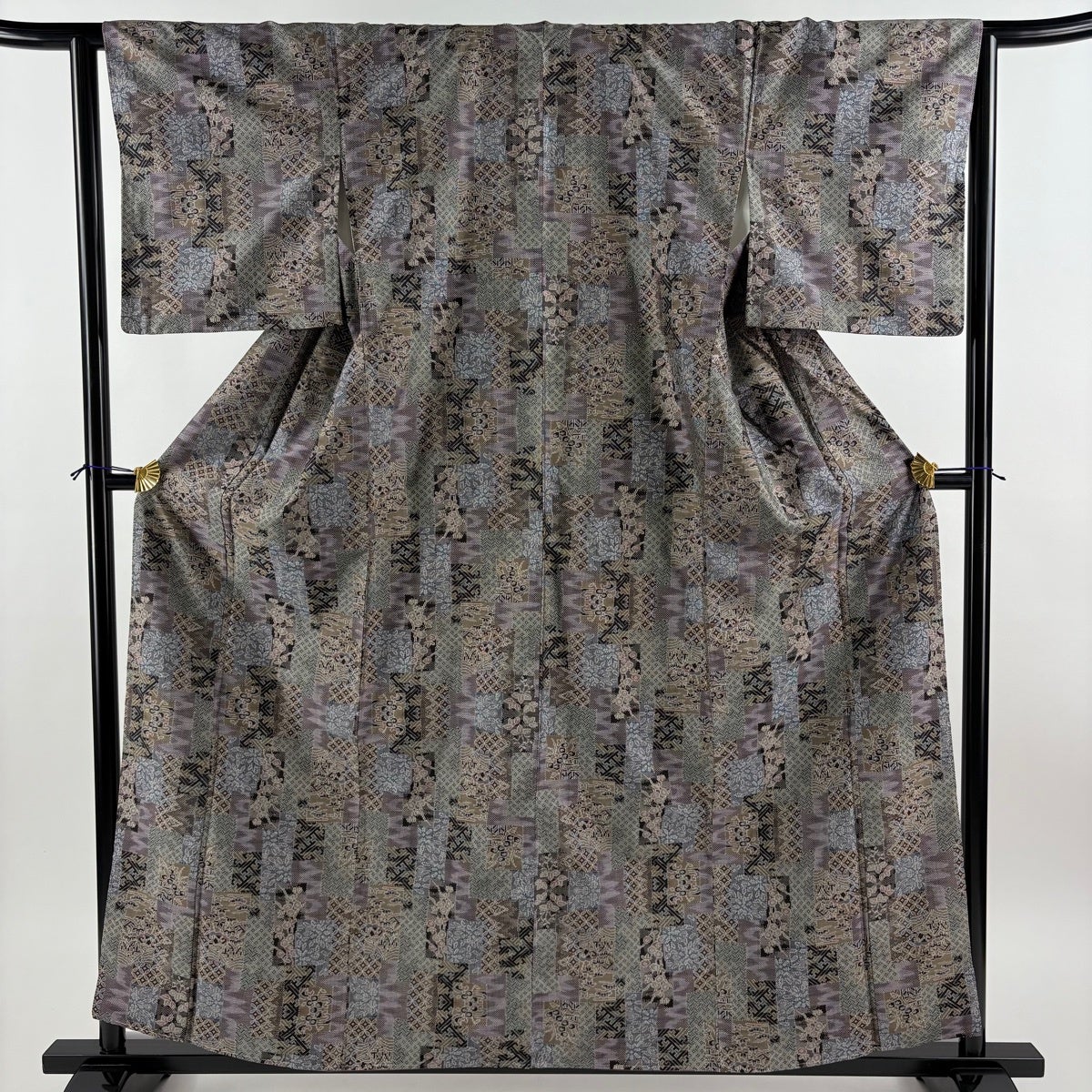 小紋 身丈152cm 裄丈65cm M 袷 幾何学模様 抹茶色 化繊 秀品