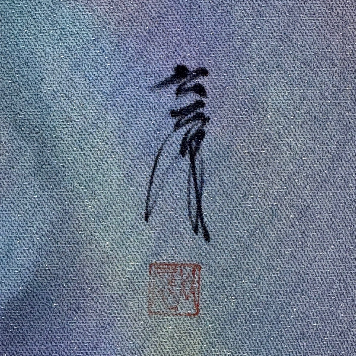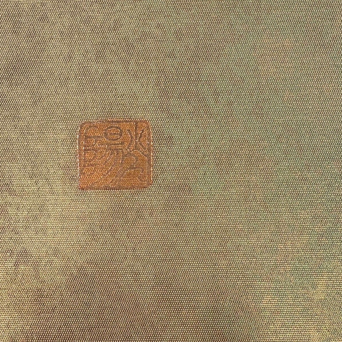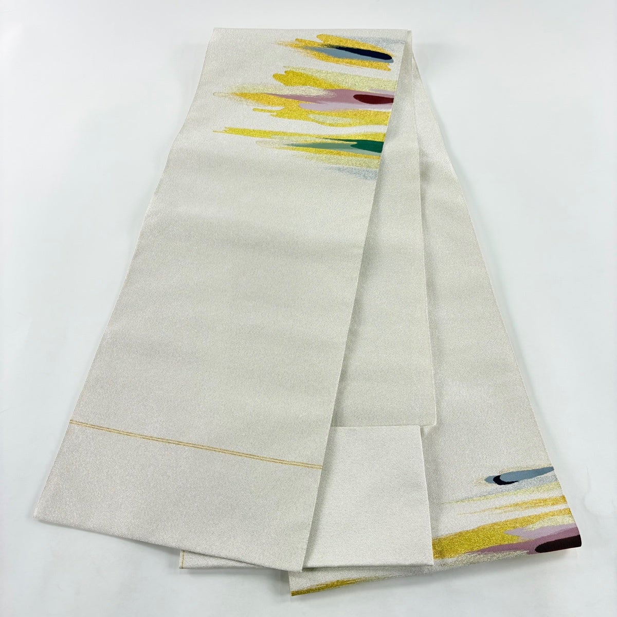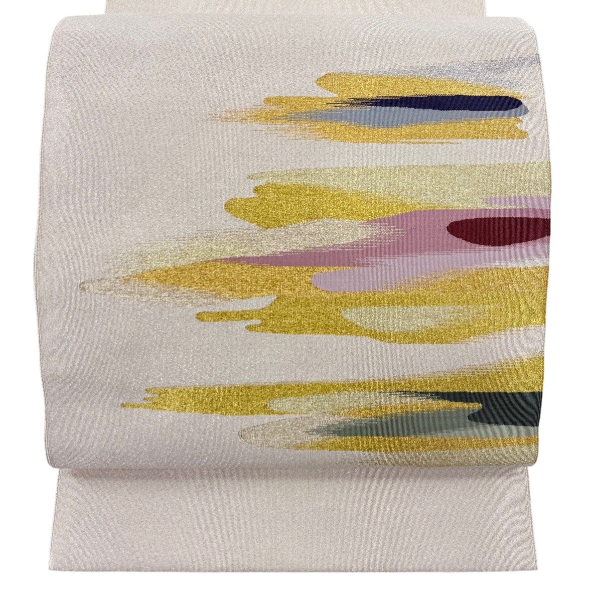【美品】 袋帯 秀品 落款あり 霞 流線 箔 ぼかし 青灰色 全通 正絹