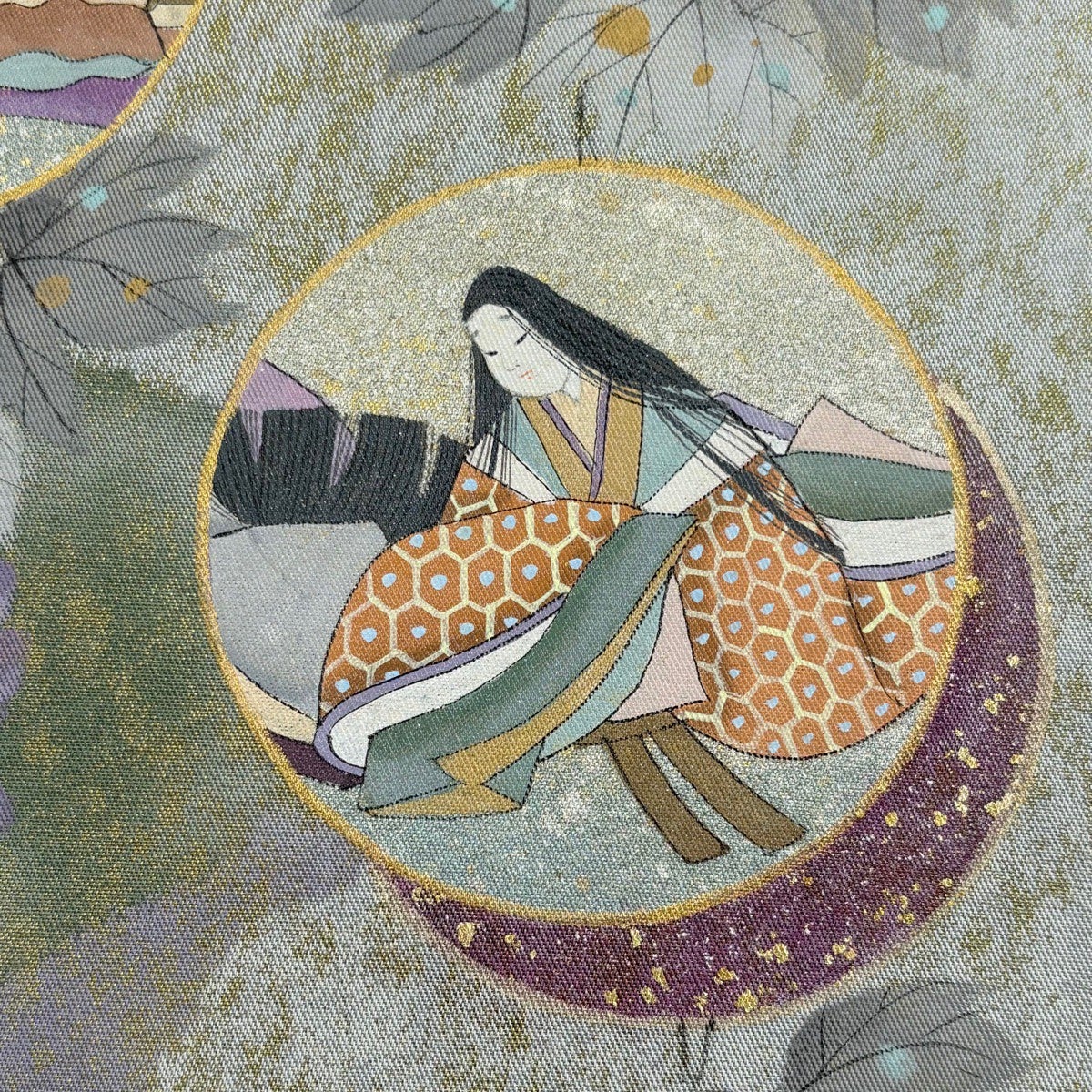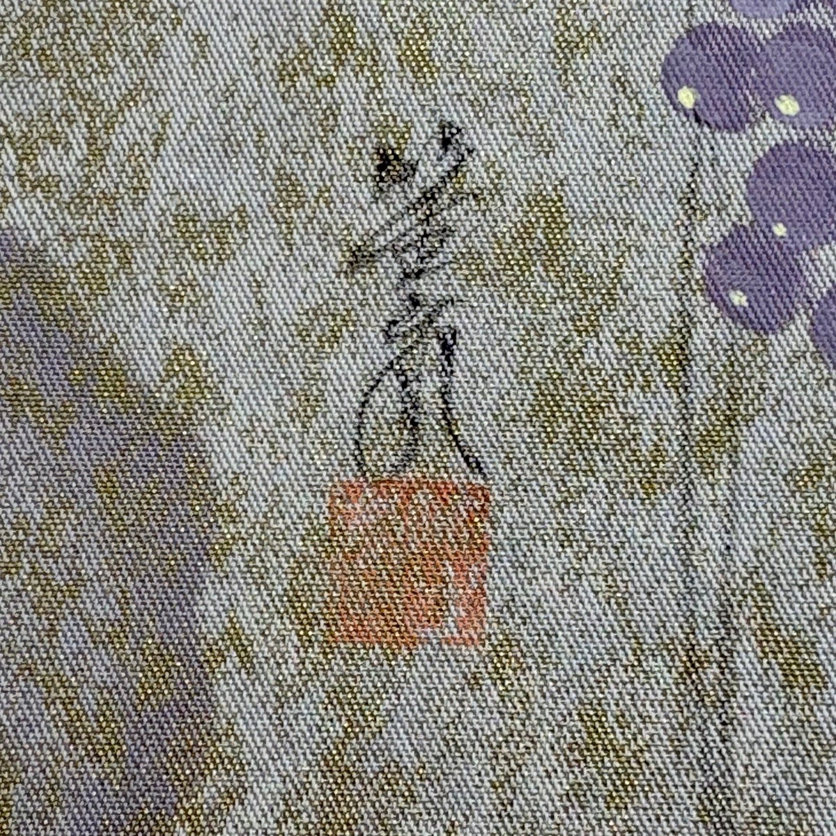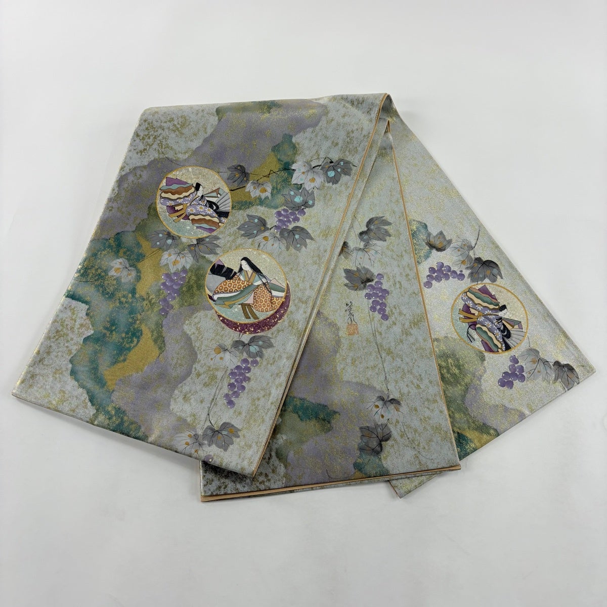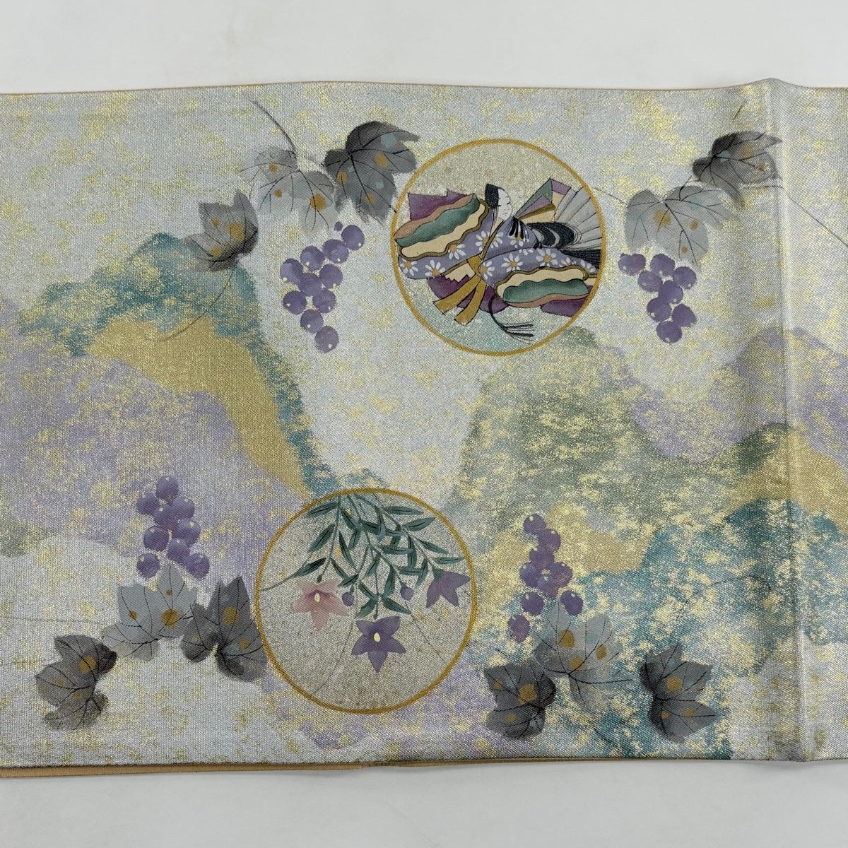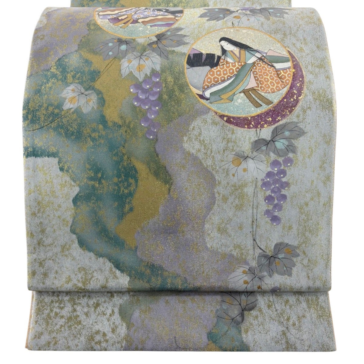【美品】 袋帯 秀品 落款あり 姫 葡萄 金彩 箔 灰色 お太鼓柄 正絹