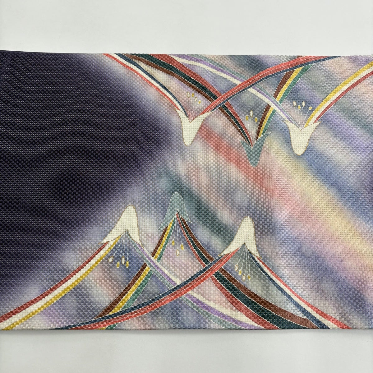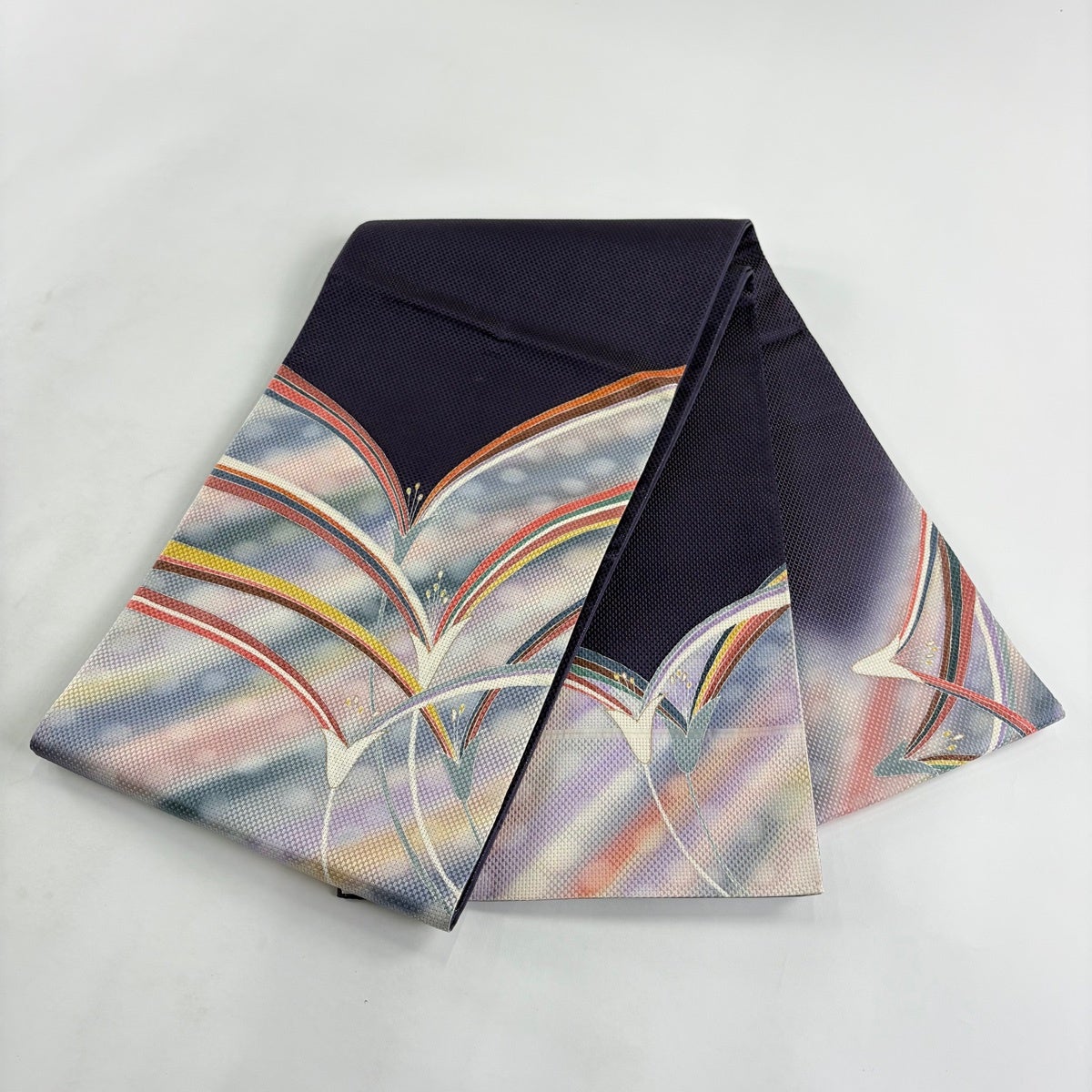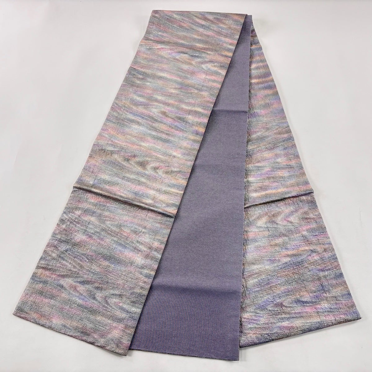 【美品】 袋帯 秀品 関西仕立て 流水 霞 ぼかし 箔 灰紫 六通 正絹