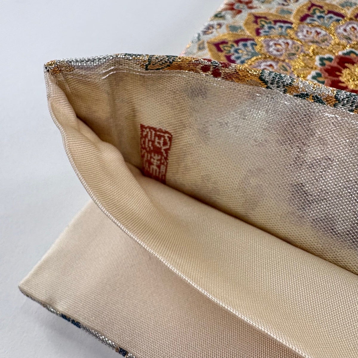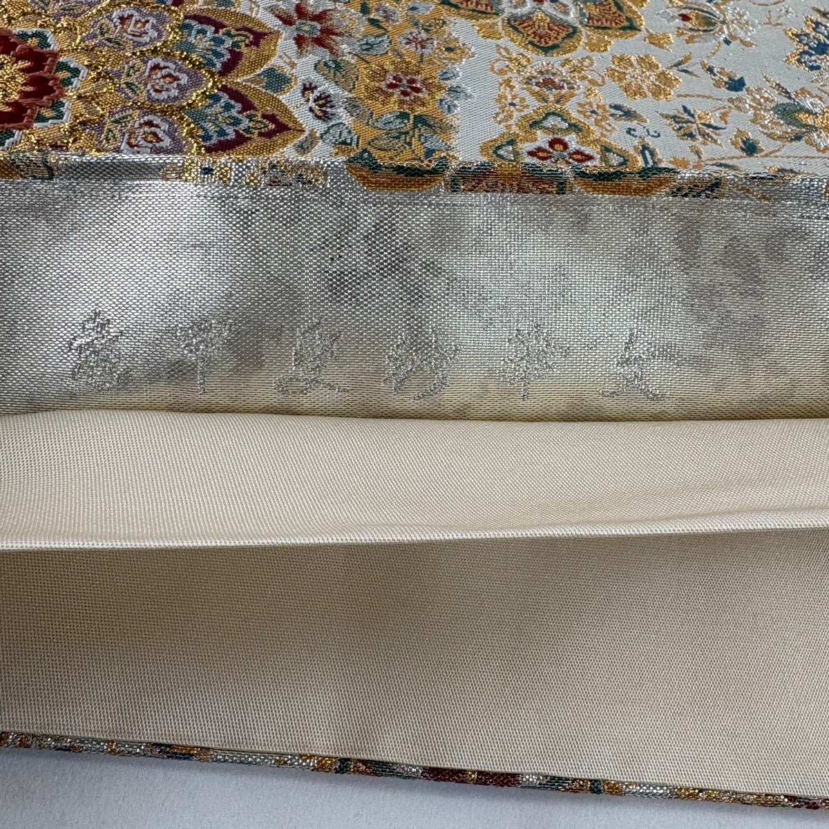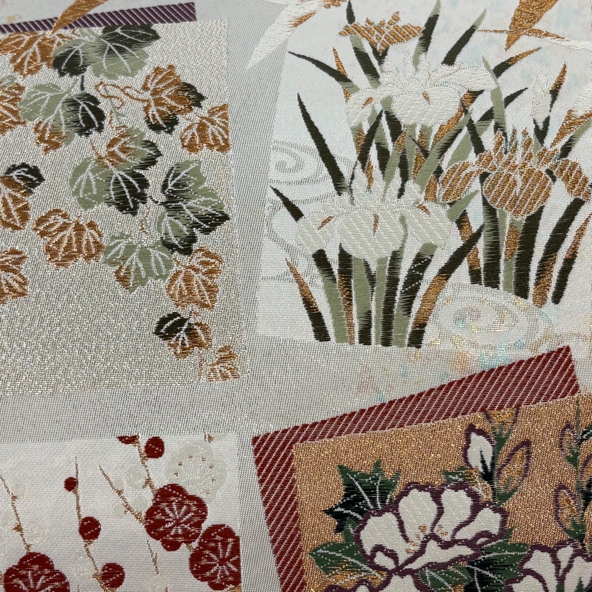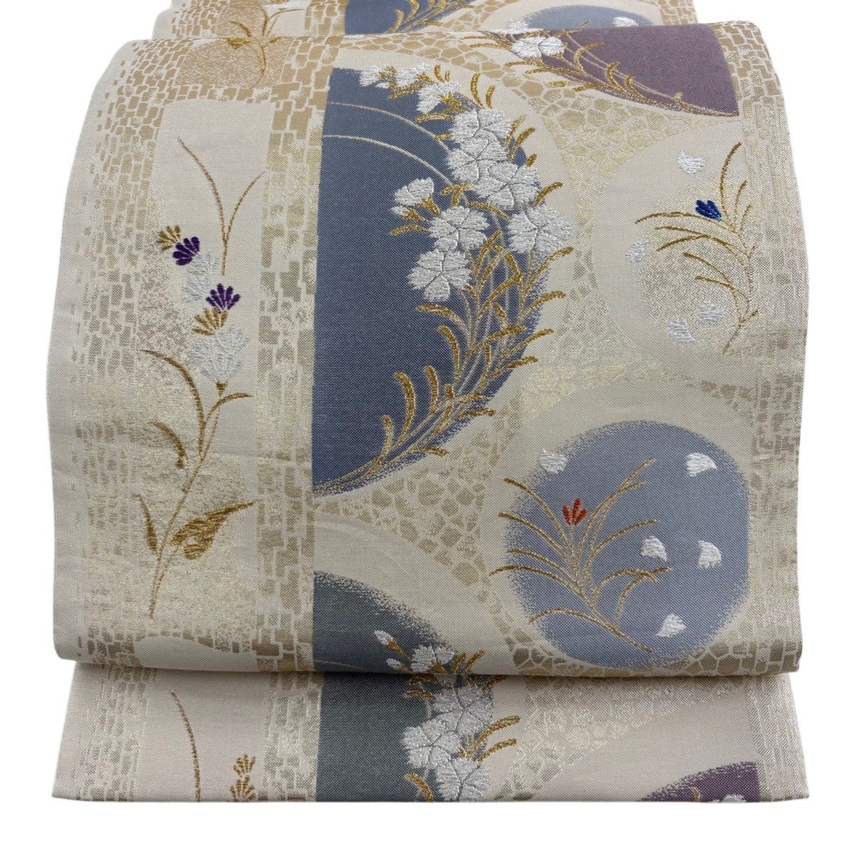 袋帯 秀品 関西仕立て 源氏香 草花 金糸 箔 クリーム お太鼓柄 正絹
