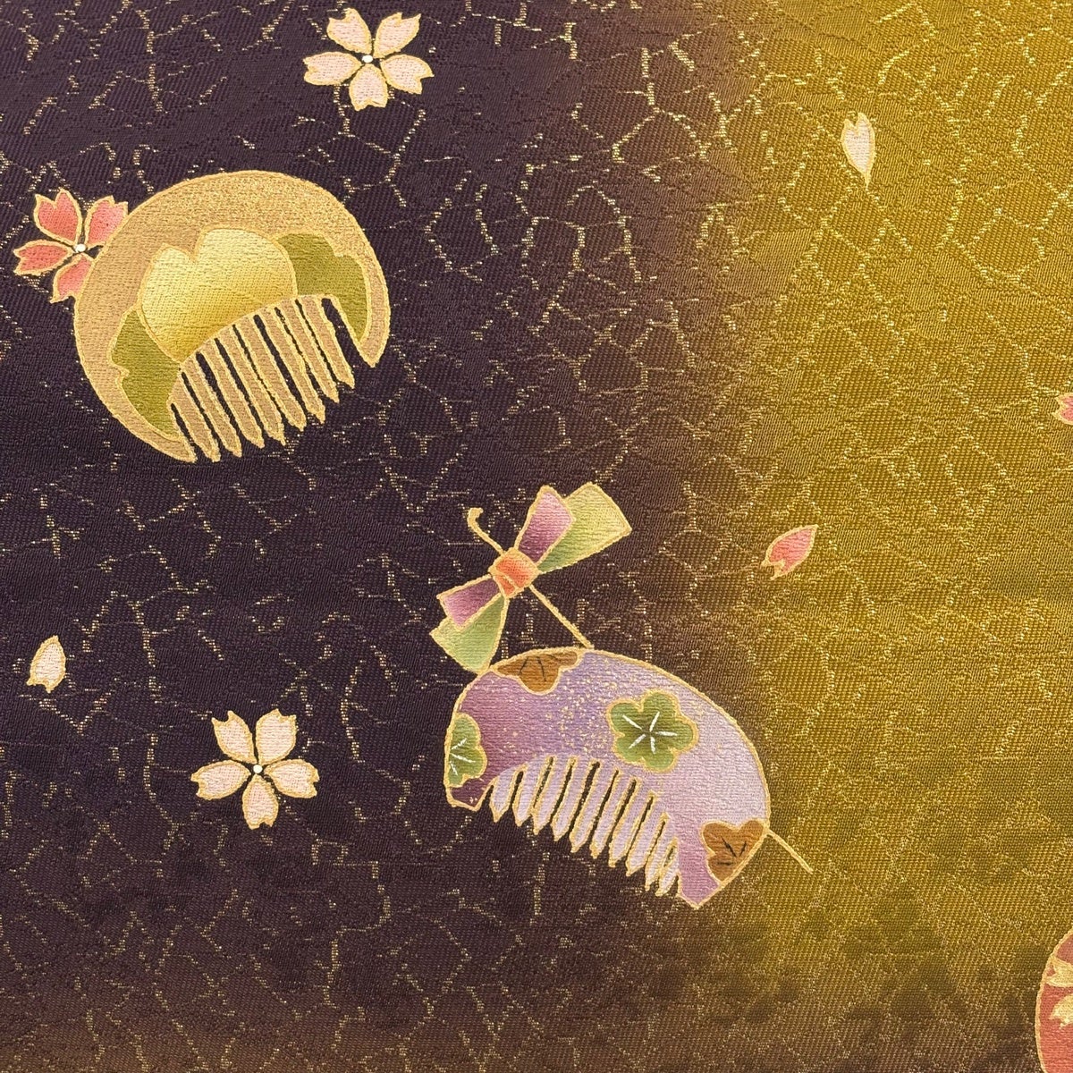 【美品】 袋帯 秀品 落款あり 櫛 桜 金銀彩 箔 濃紫 お太鼓柄 正絹