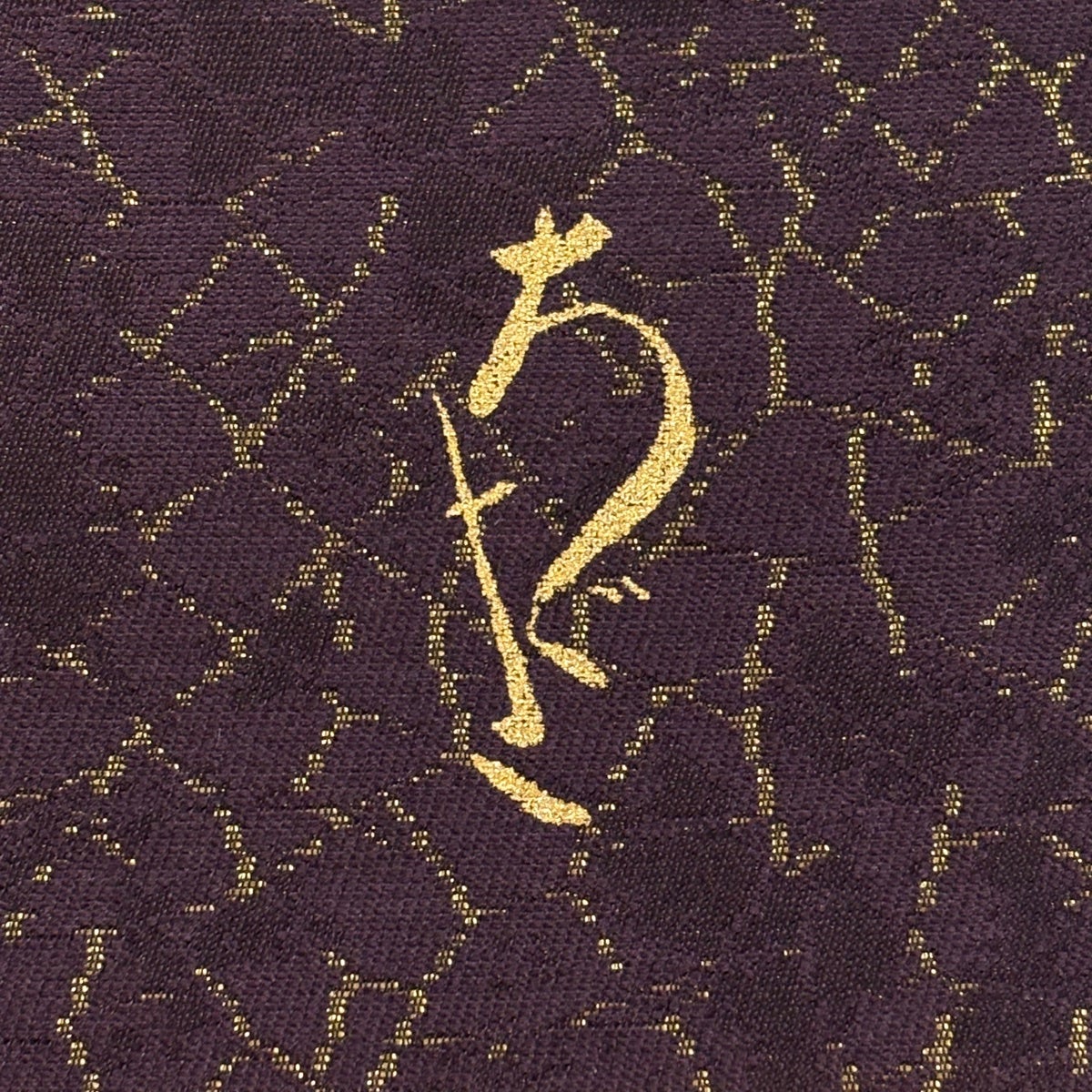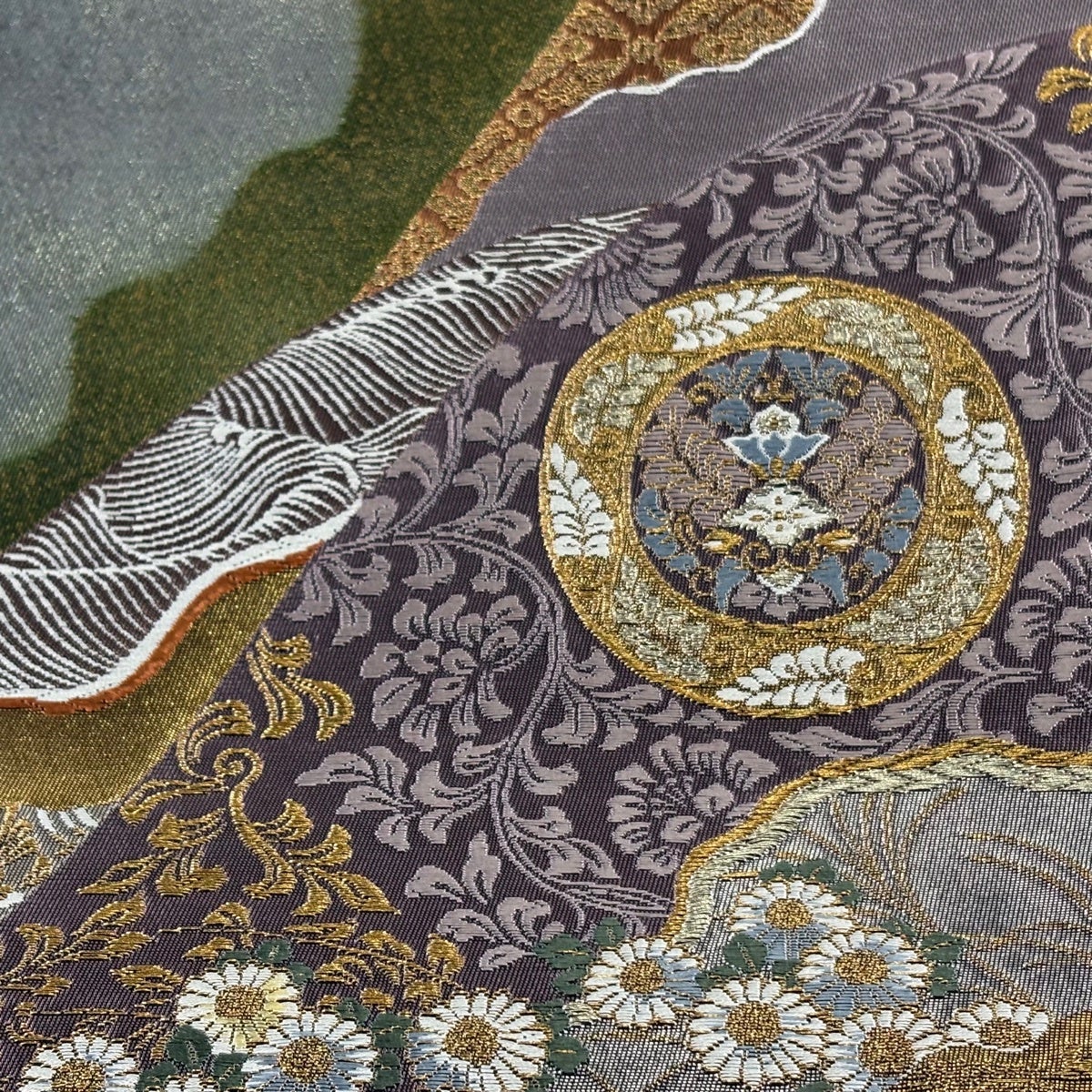 【美品】 袋帯 秀品 落款あり 昌幸 草花 金糸 金彩 紫 お太鼓柄 正絹