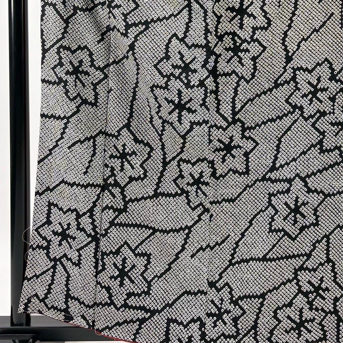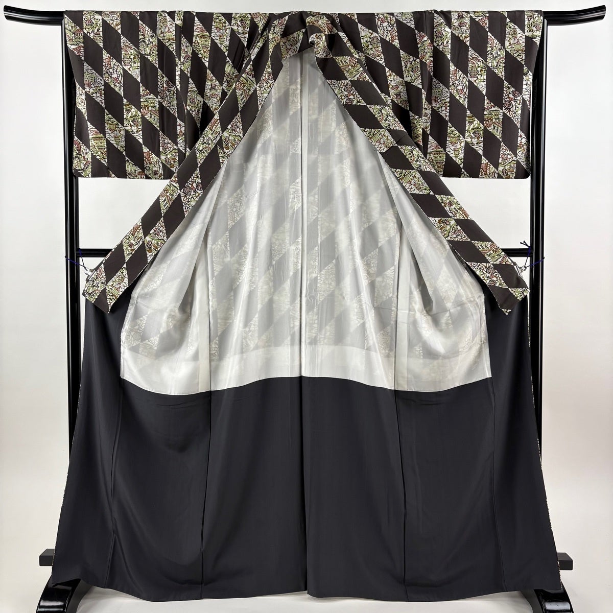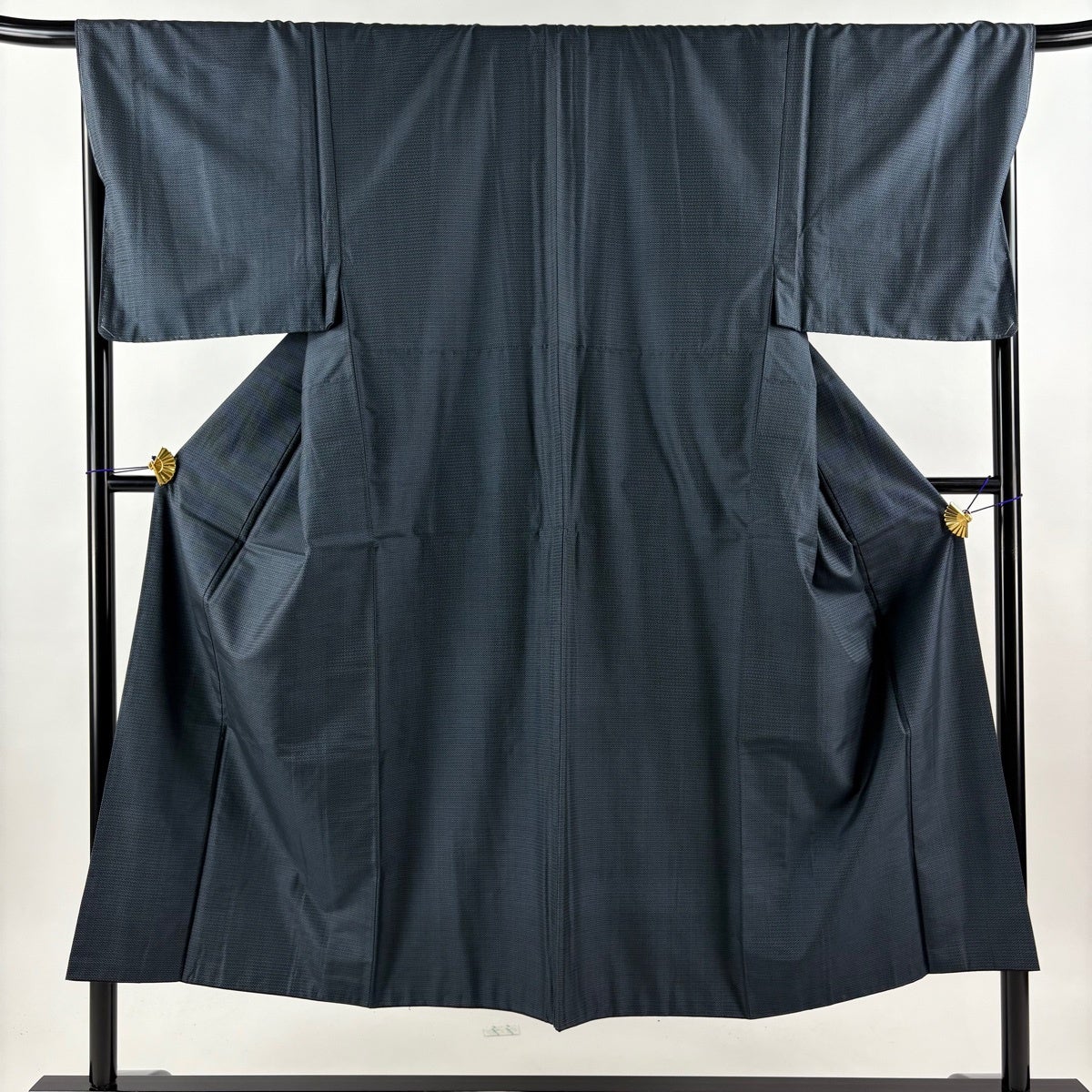 紬 身丈170cm 裄丈67cm M 袷 変わり市松 芝 墨色 正絹 秀品
