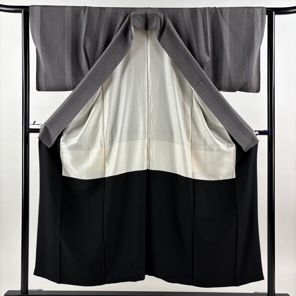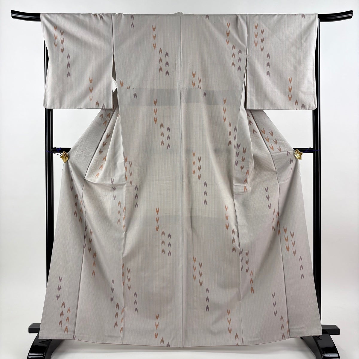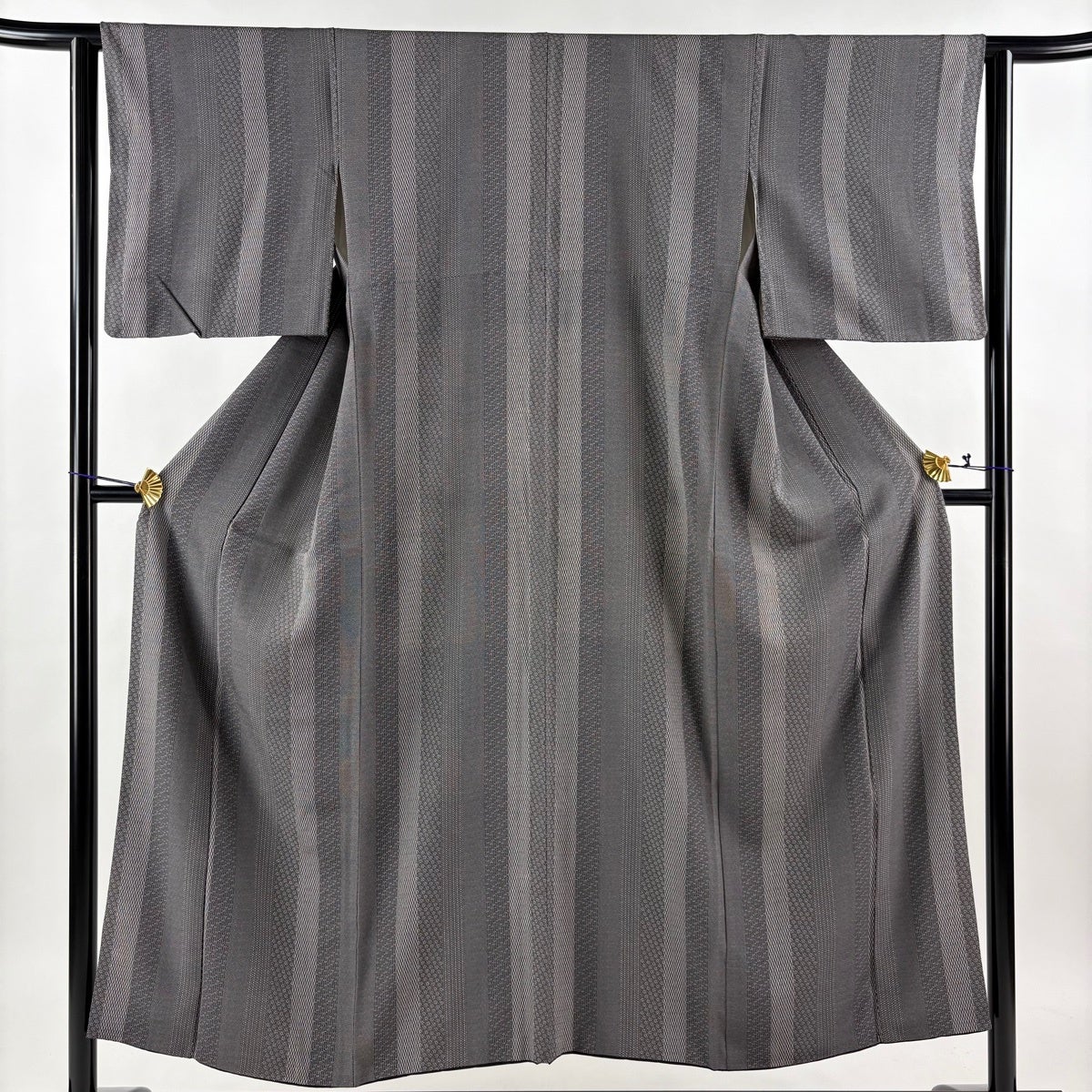 紬 身丈166cm 裄丈68.5cm L 袷 縦縞 矢羽 灰色 正絹 秀品