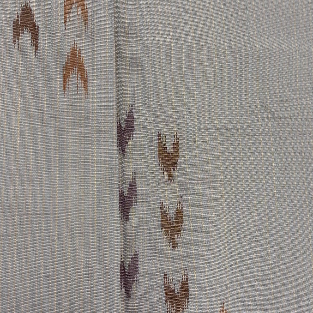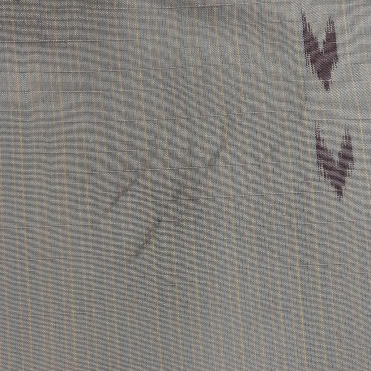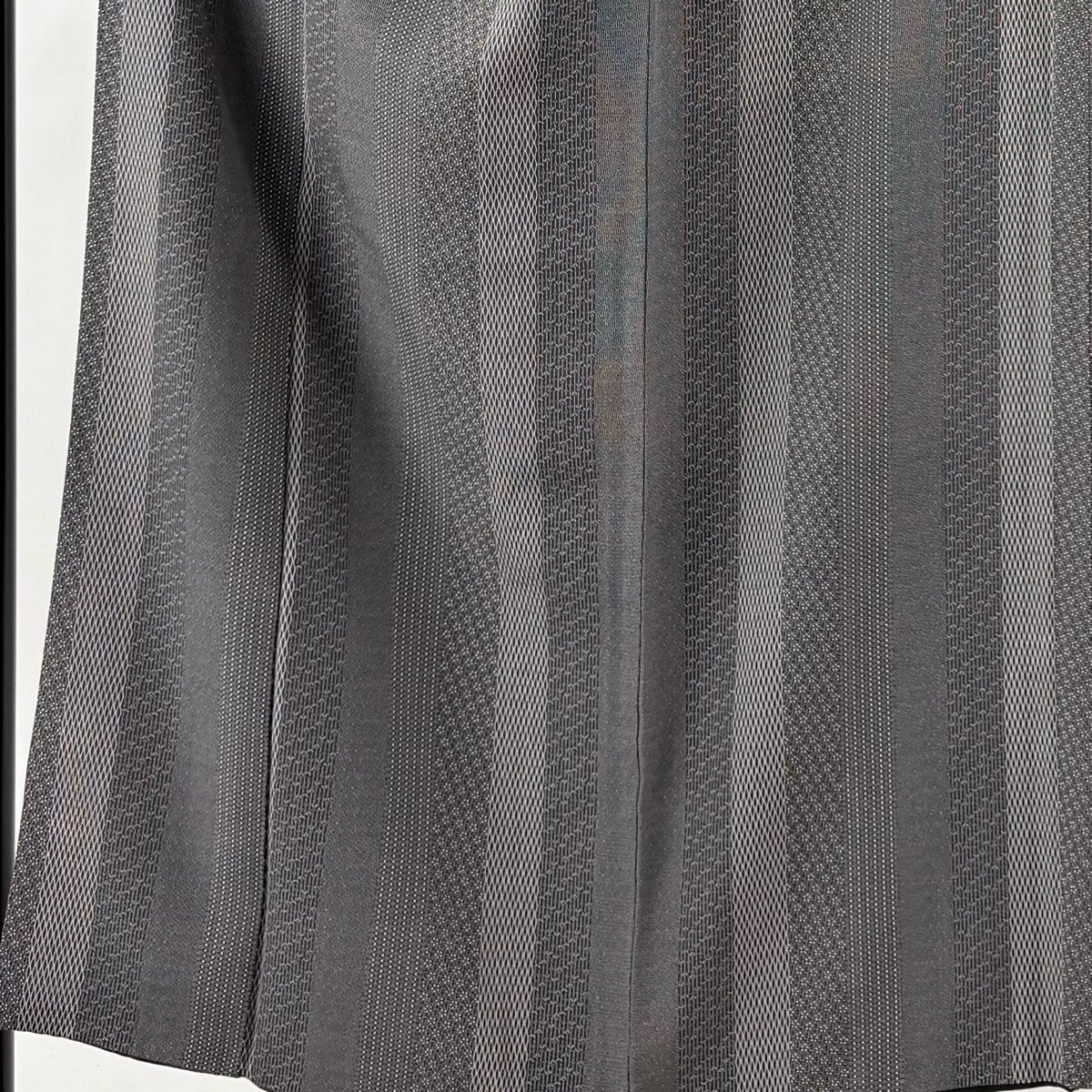紬 身丈166cm 裄丈68.5cm L 袷 縦縞 矢羽 灰色 正絹 秀品