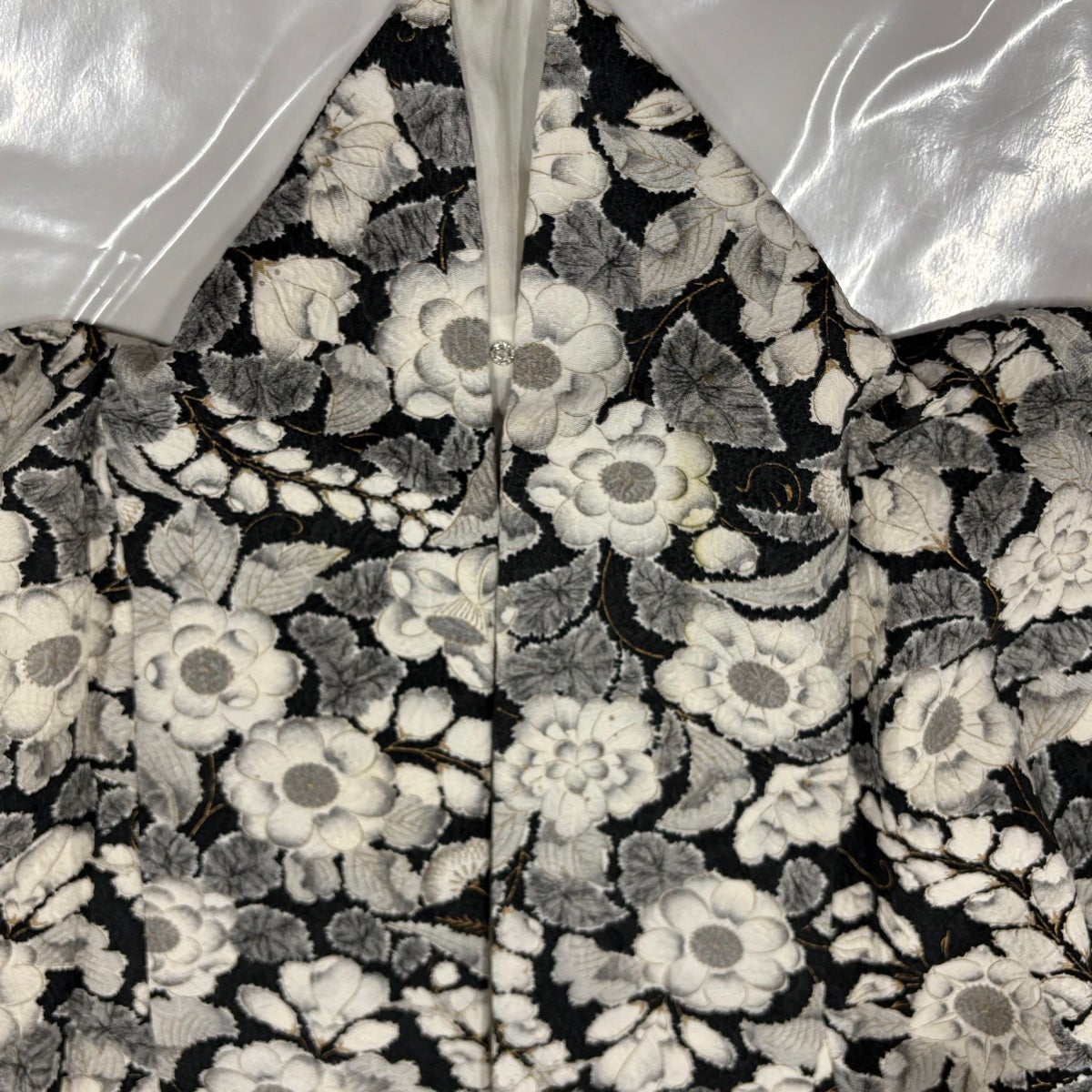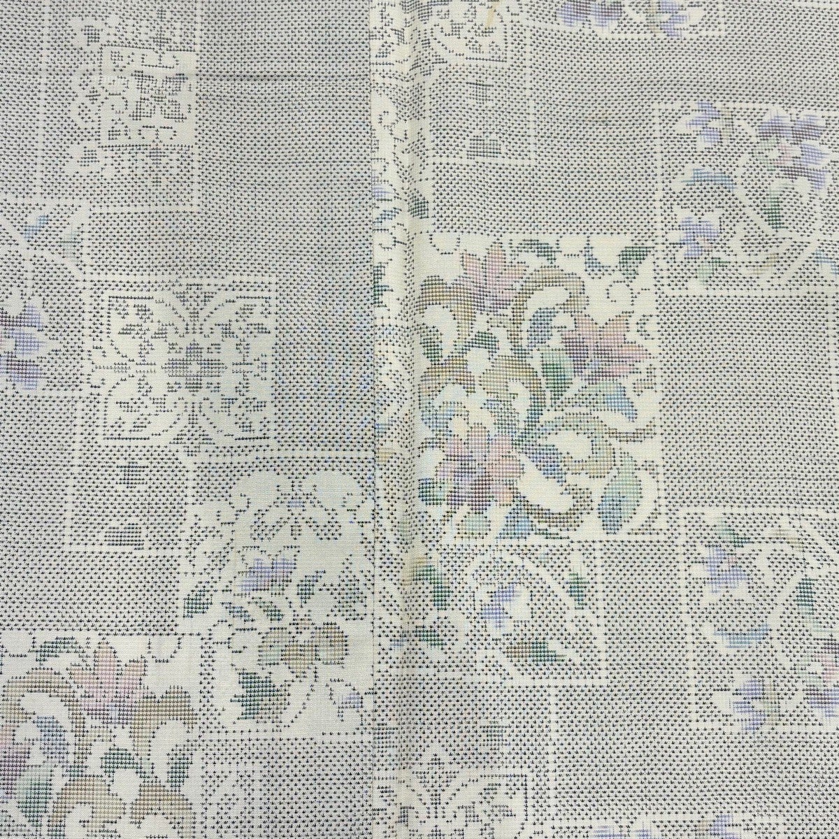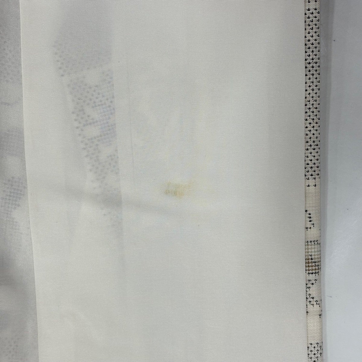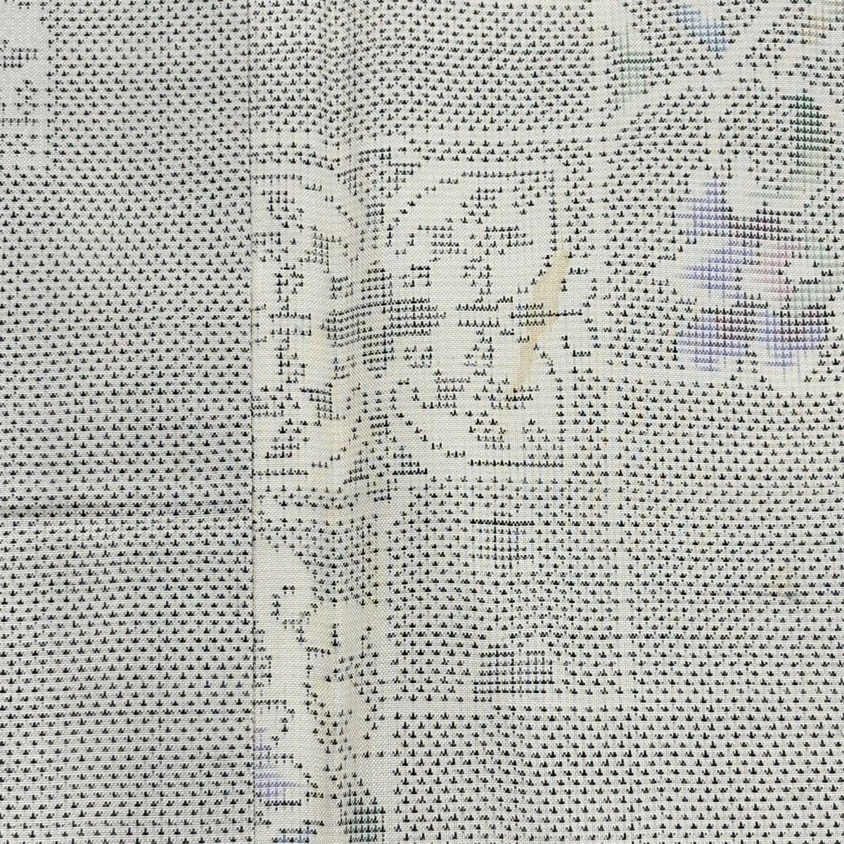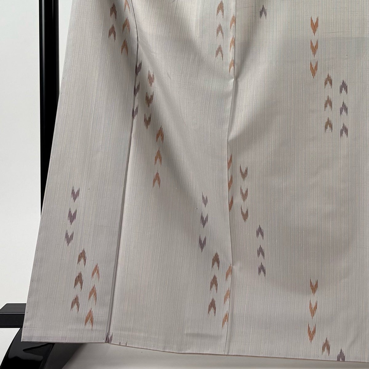 紬 身丈158cm 裄丈66.5cm M 袷 色紙 草花 灰白 正絹 秀品