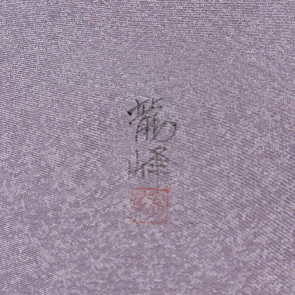 【美品】 袋帯 秀品 落款あり 幾何学模様 銀通し 薄紫 お太鼓柄 正絹