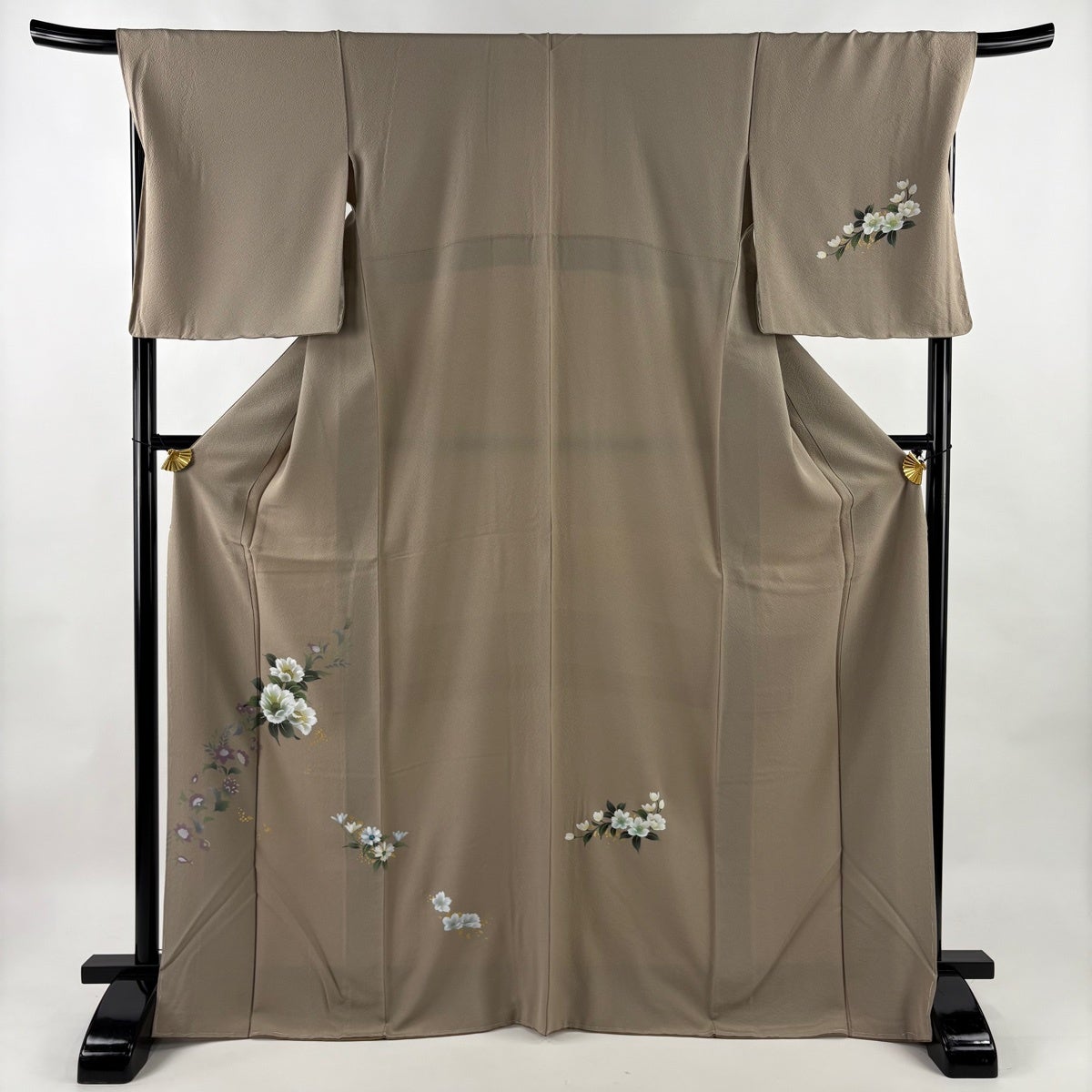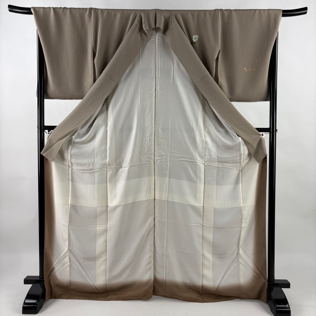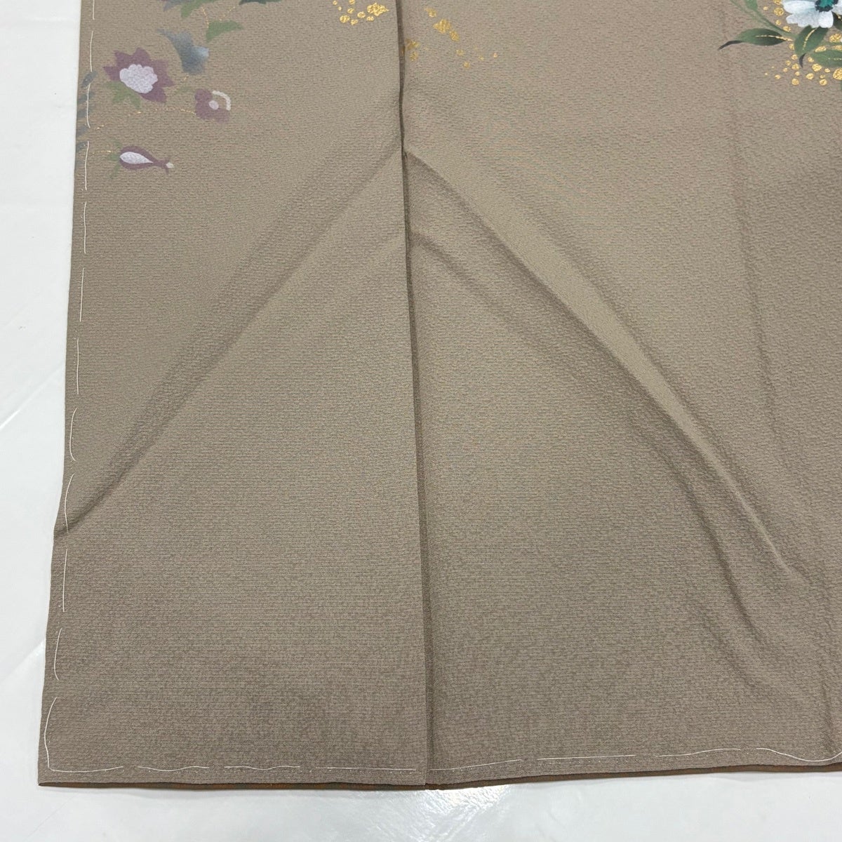 付下げ 身丈169cm 裄丈70cm L 袷 草花 金彩 灰茶 正絹 秀品