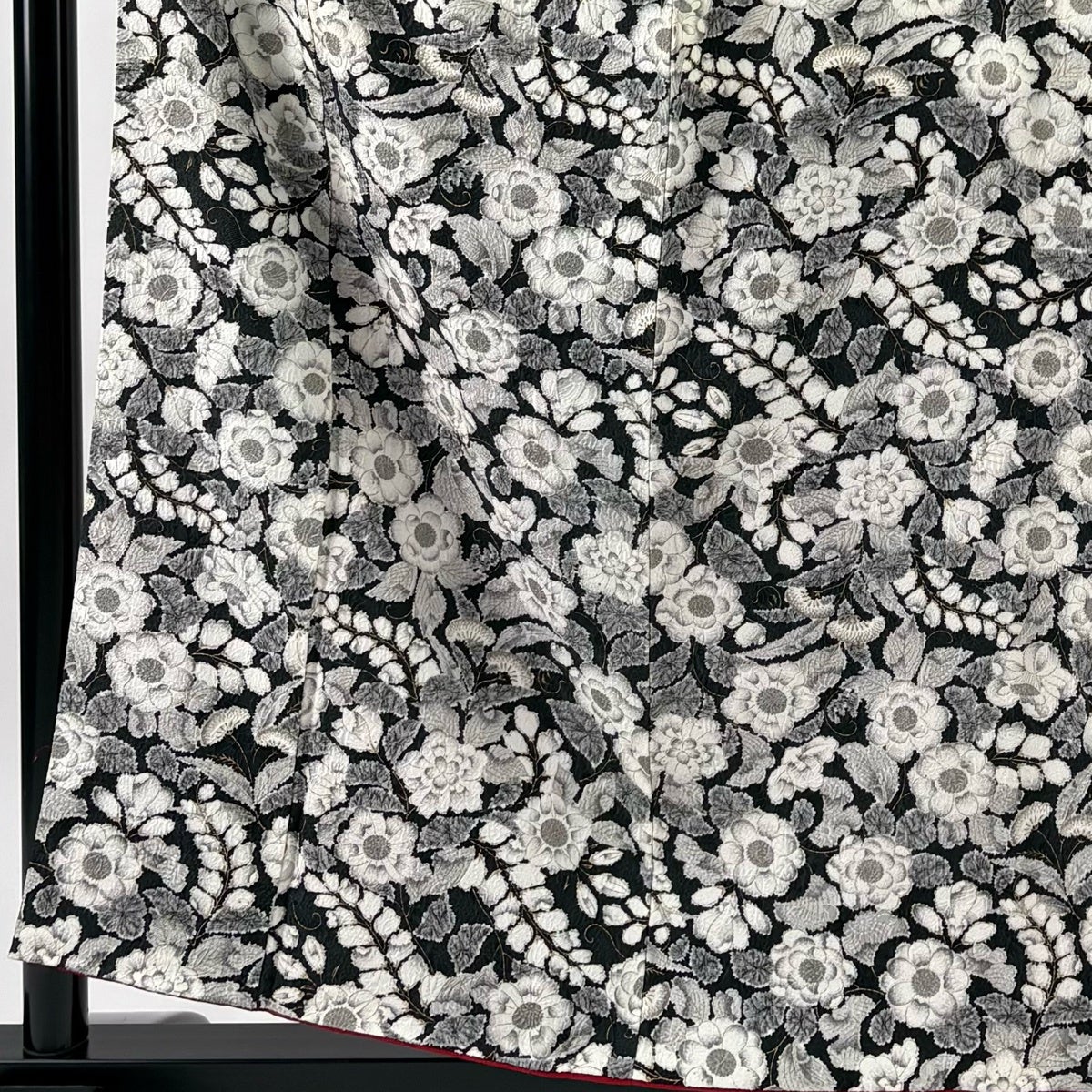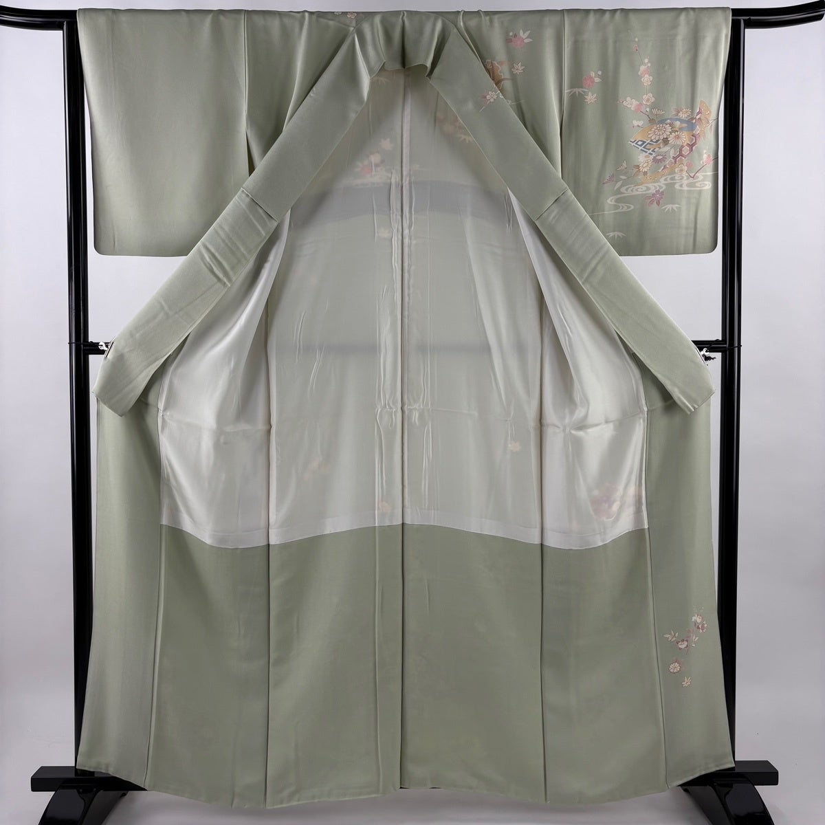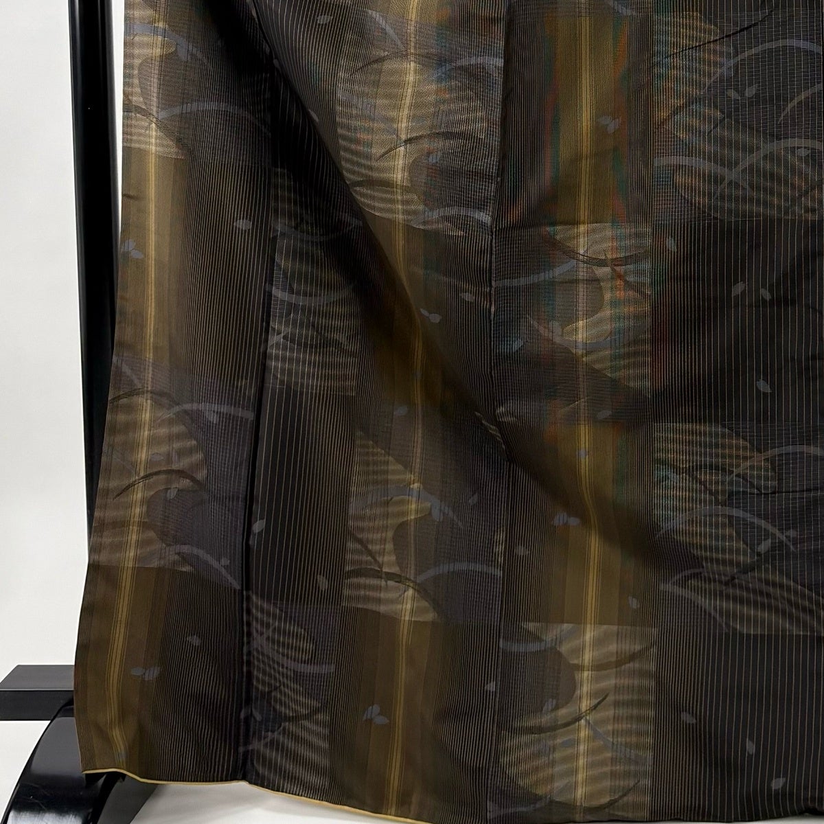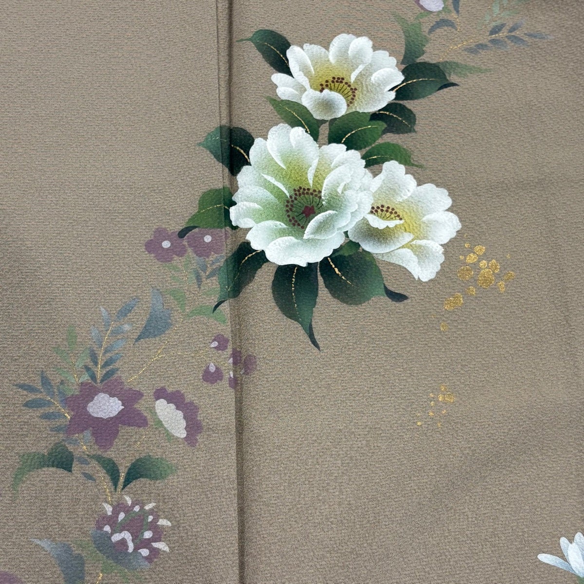 付下げ 身丈169cm 裄丈70cm L 袷 草花 金彩 灰茶 正絹 秀品