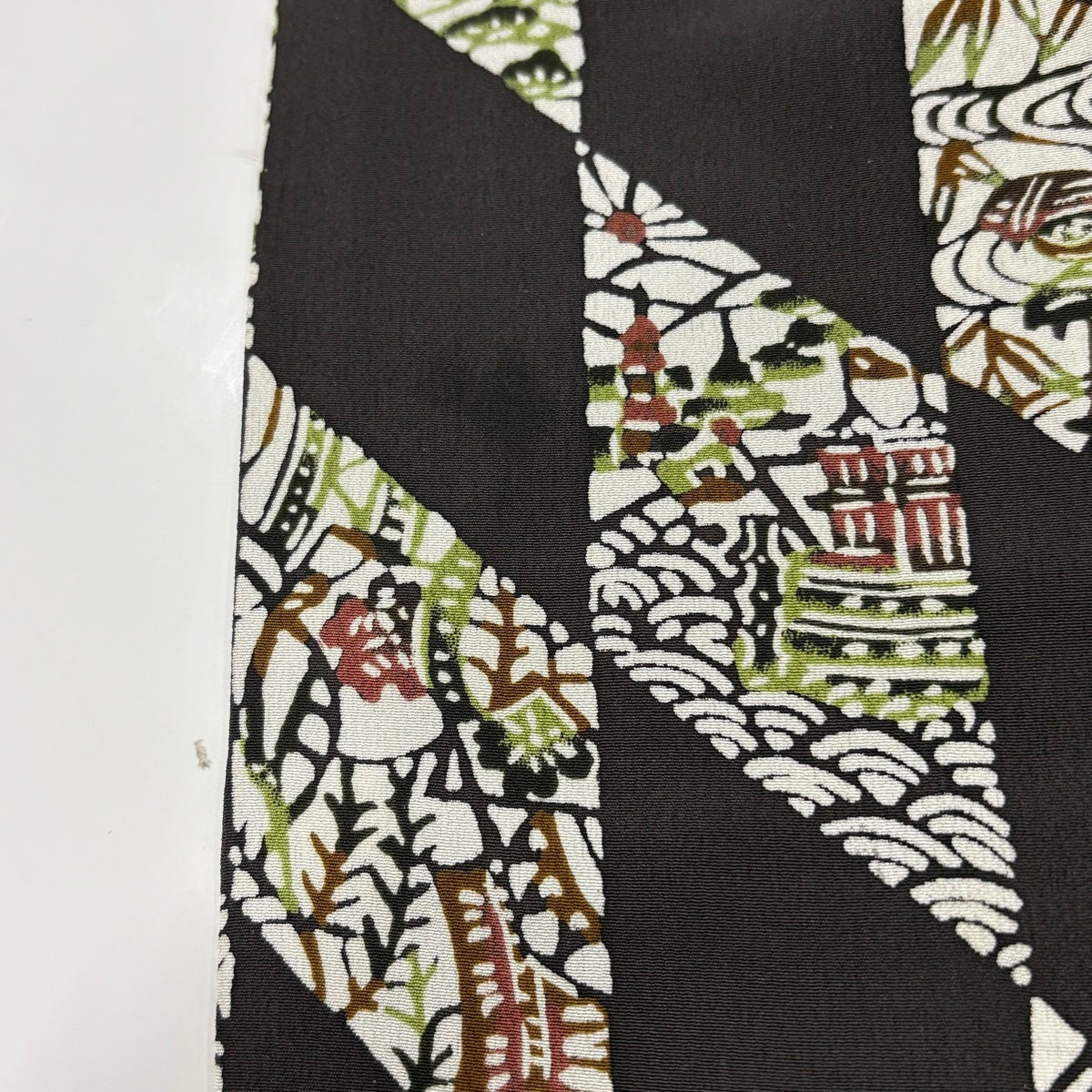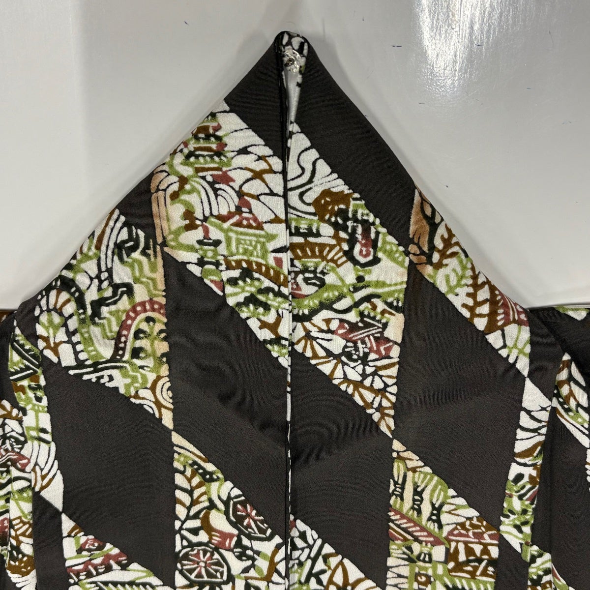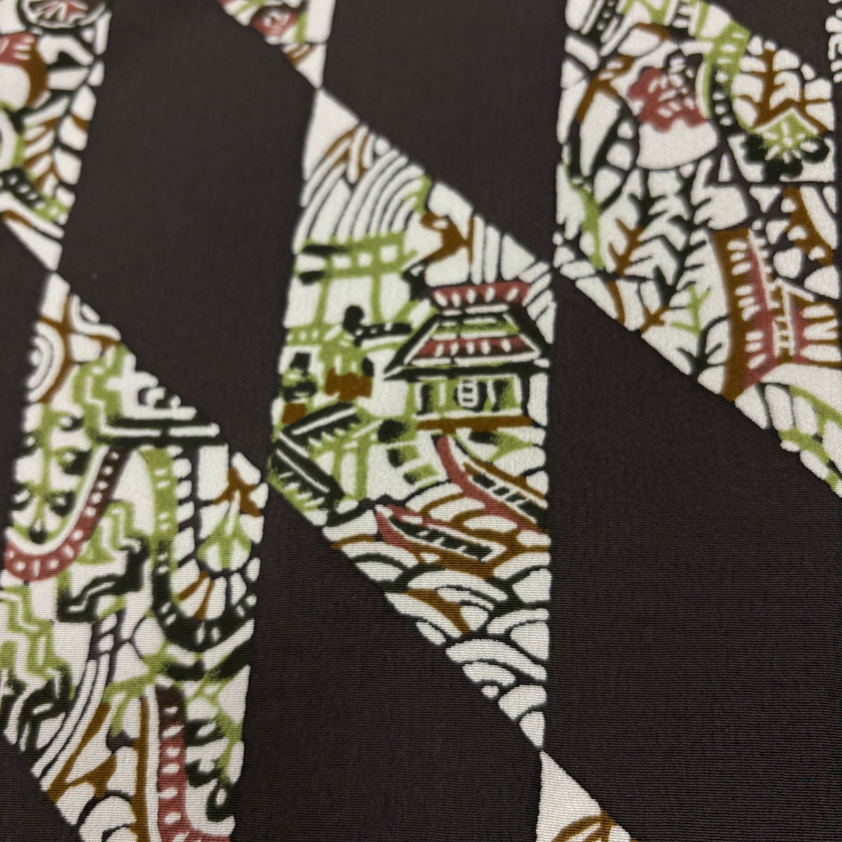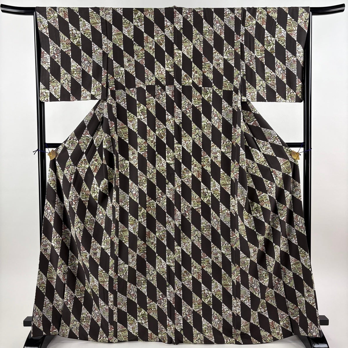 小紋 身丈168cm 裄丈66cm M 袷 家屋 風景 焦茶色 正絹 秀品