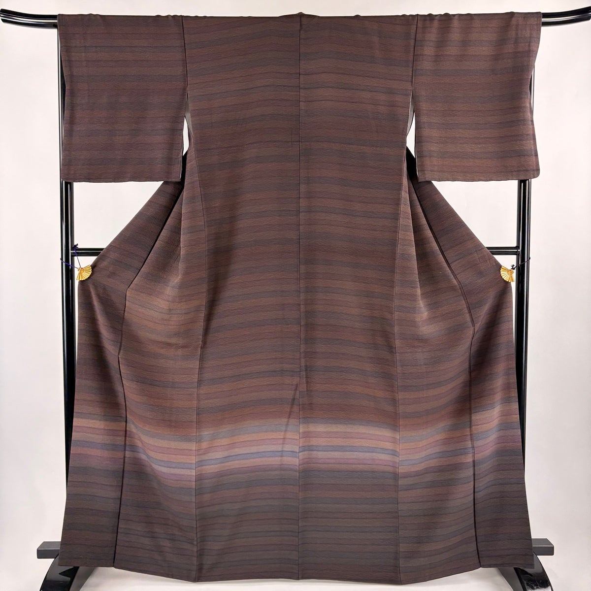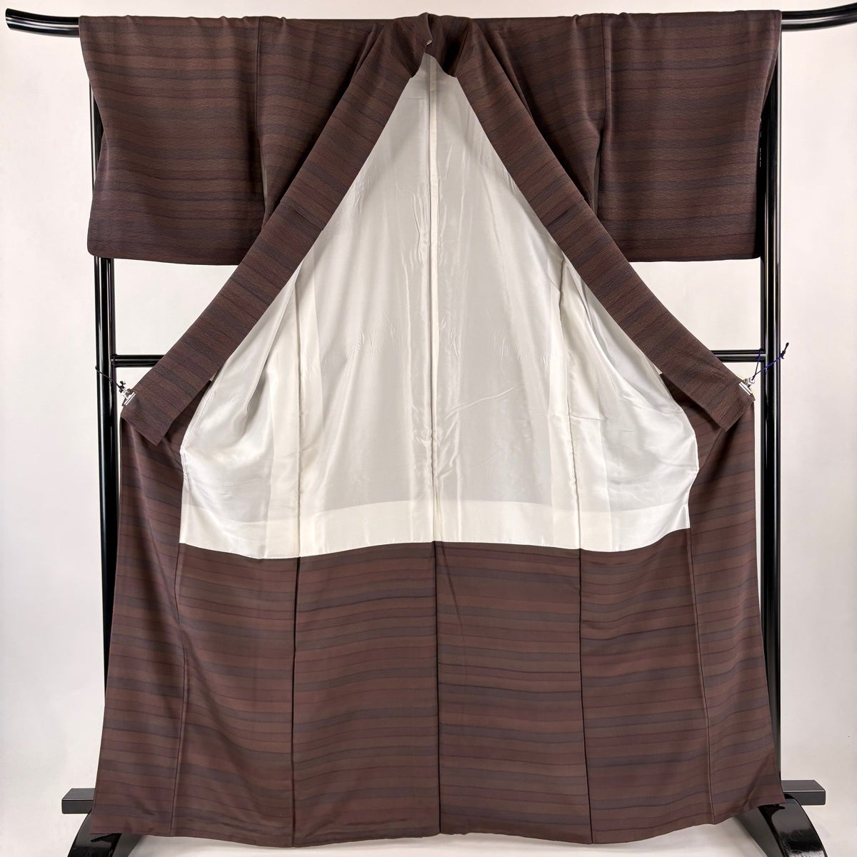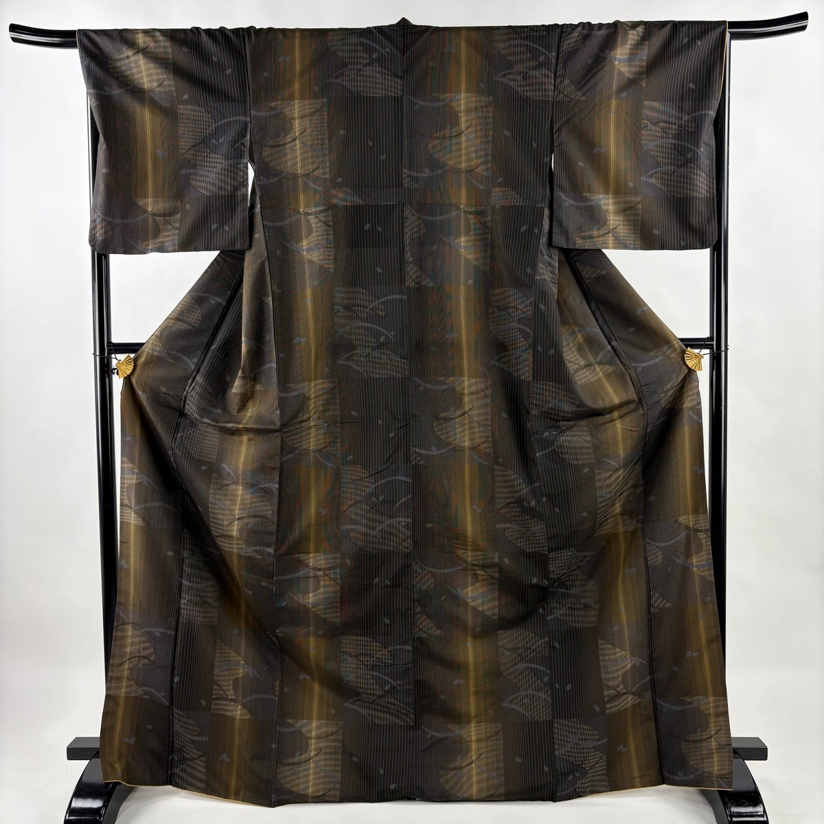 小紋 身丈161cm 裄丈67cm M 袷 雪輪 縦縞 薄茶色 正絹 秀品