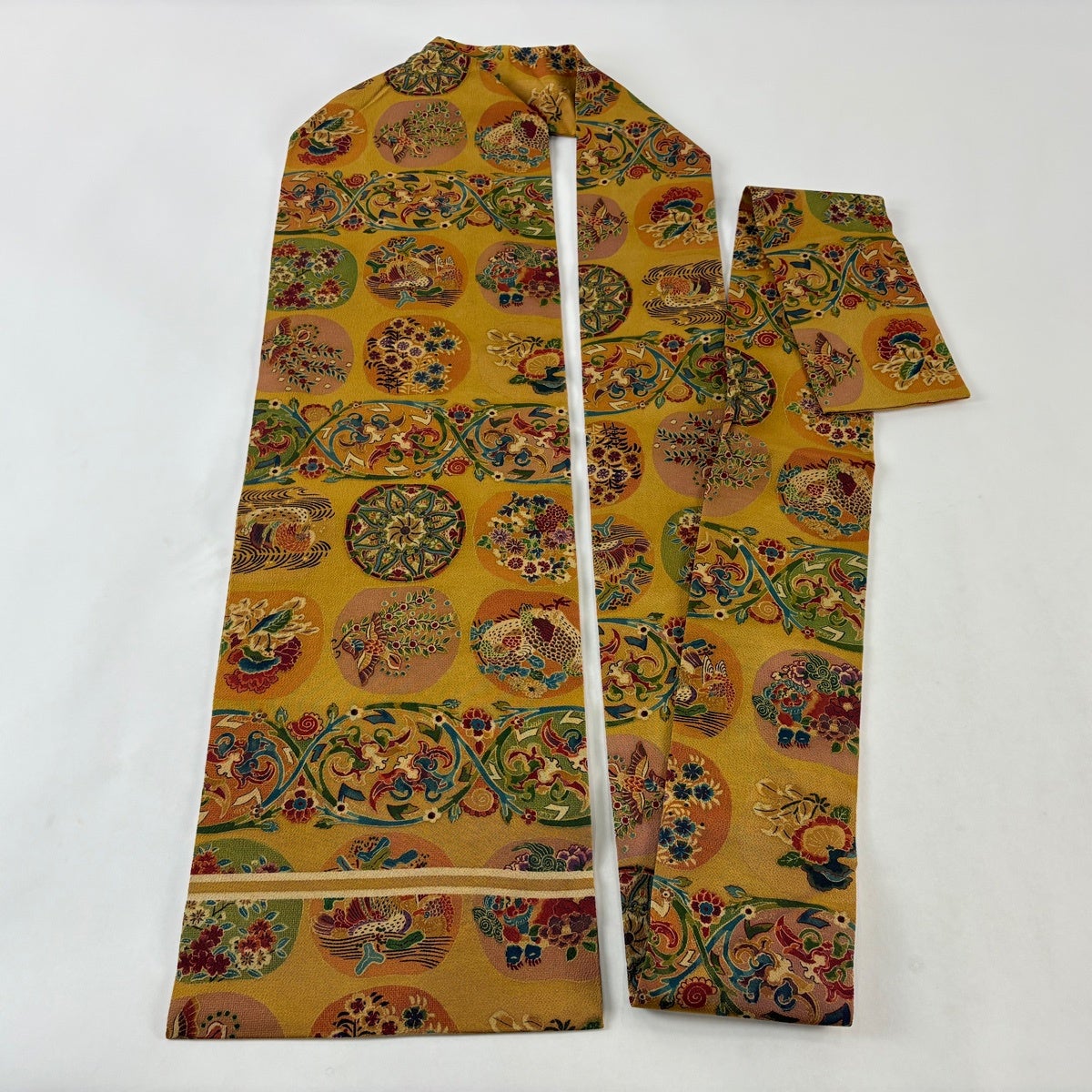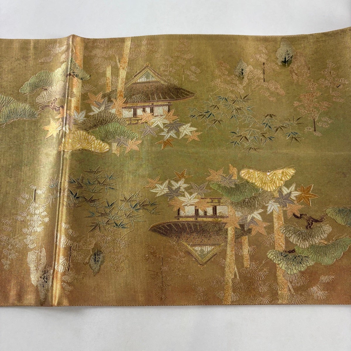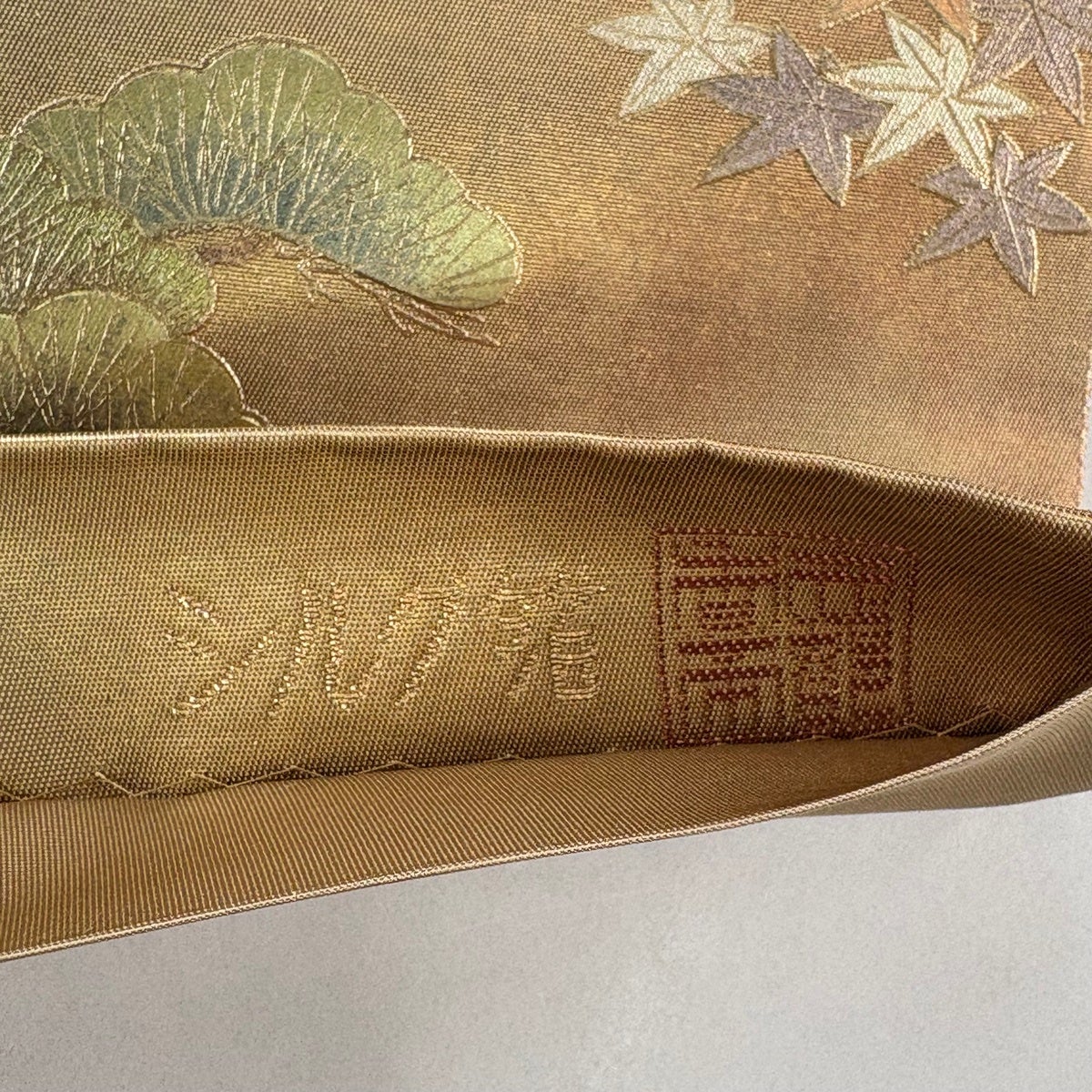 【美品】 袋帯 秀品 山重正倉文 丸文 草花 金銀糸 箔 金茶 六通 正絹