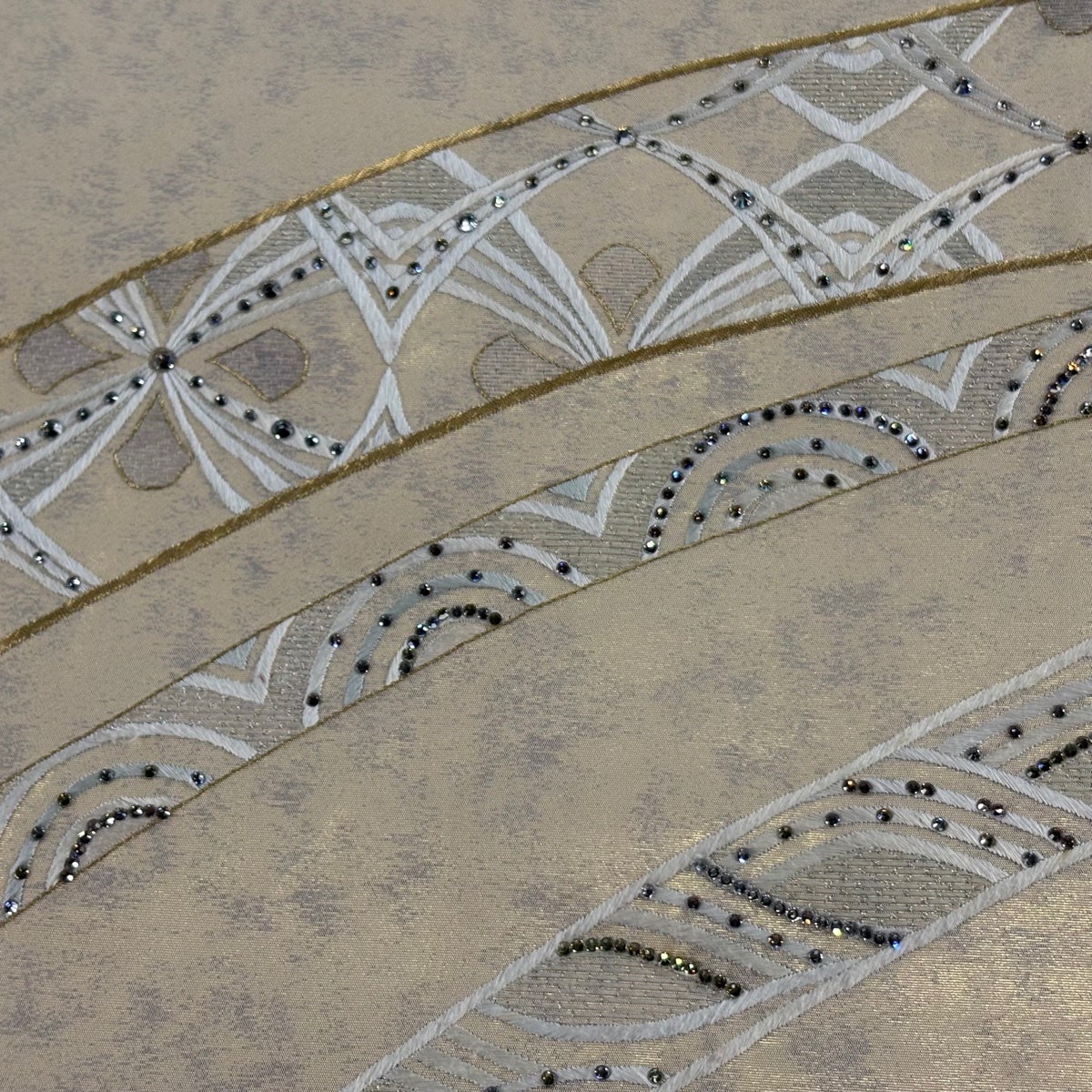 【美品】 袋帯 秀品 撫子 草花 刺繍 金銀糸 ベージュ 六通 正絹