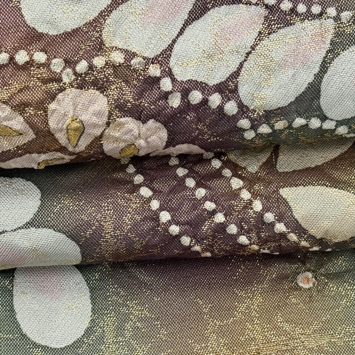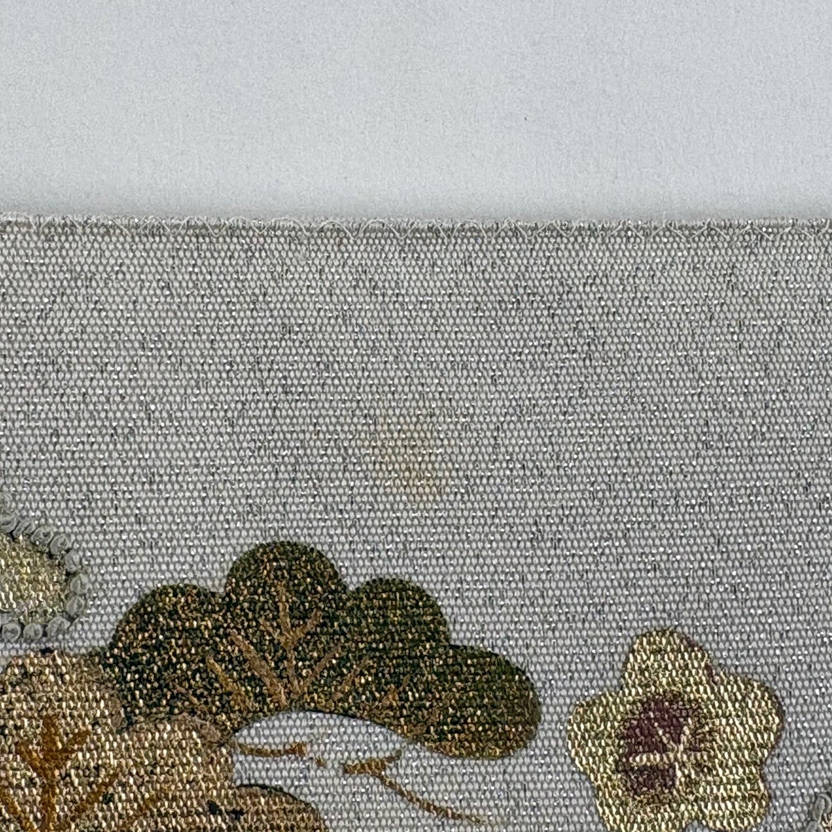 袋帯 秀品 関西仕立て 花束 松竹梅 唐織 箔 ベージュ 六通 正絹