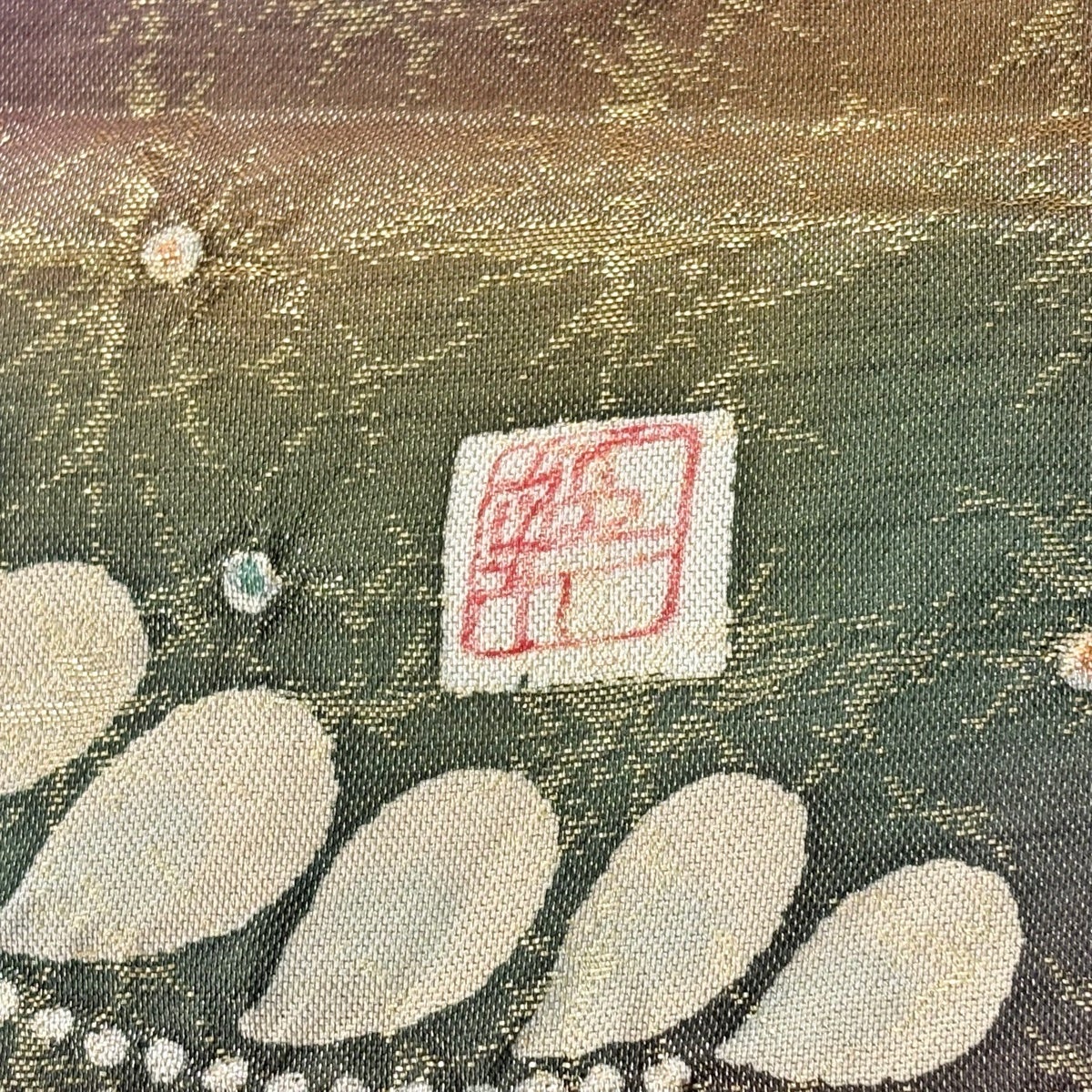 【美品】 袋帯 秀品 証紙あり 色紙 菊 紬地 クリーム お太鼓柄 正絹